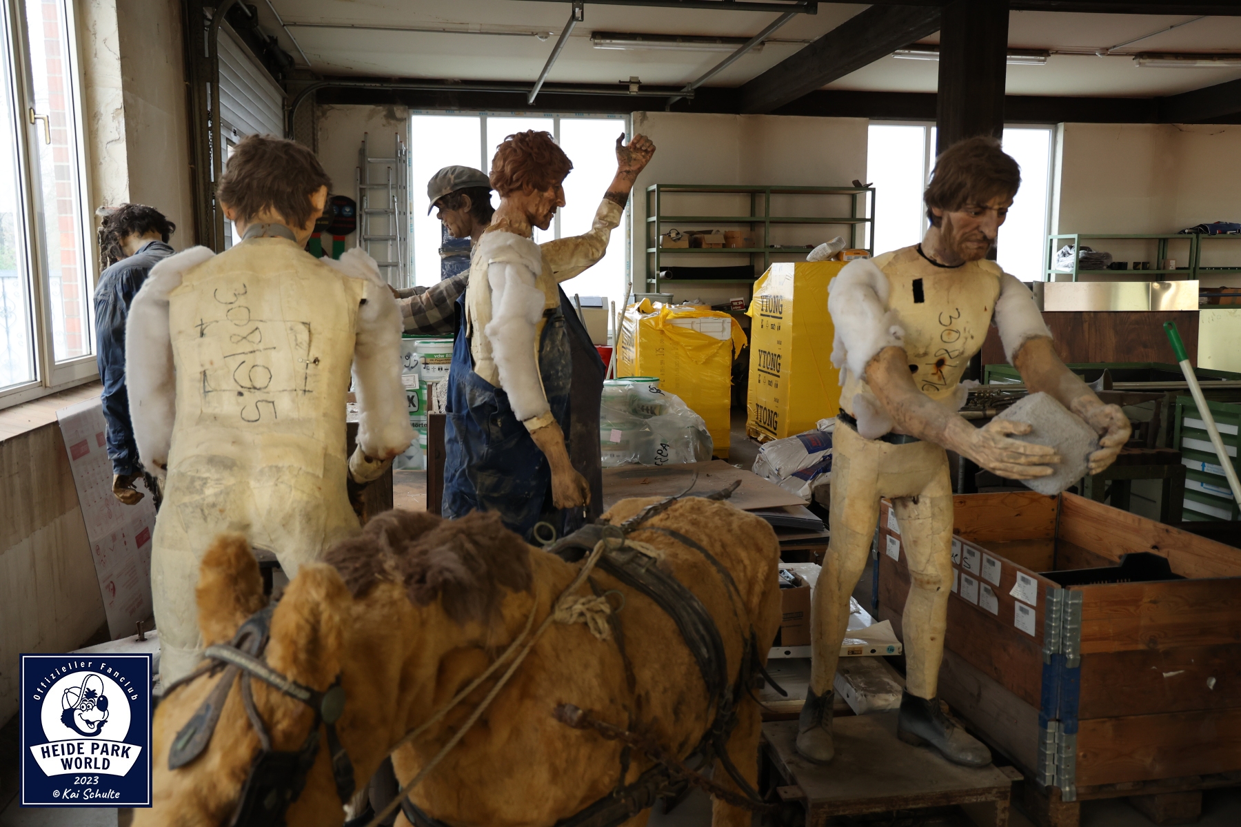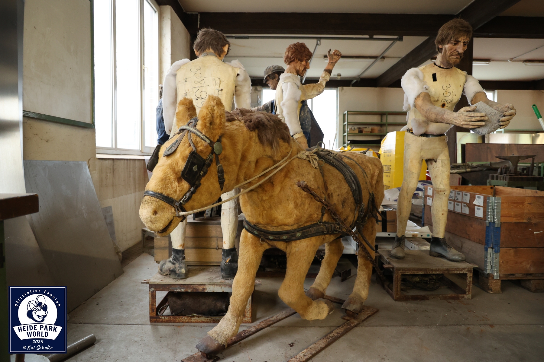 Im Atelier werden u.a. alle Verschönerungen für den Park vorbereitet, Schilder gestaltet und Figuren wieder frisch hergerichtet. Direkt in den Fokus der begeisterten Fans fielen die Animatronics aus der Wildwasserbahn II. Mit einem strahlenden Lächeln auf den Lippen wurde verkündet, dass man diese in der kommenden Saison an anderer Stelle des Parks wiederfinden wird.