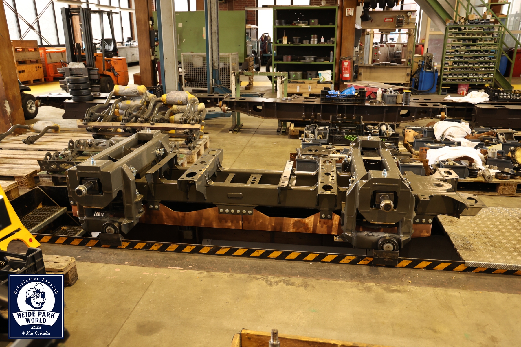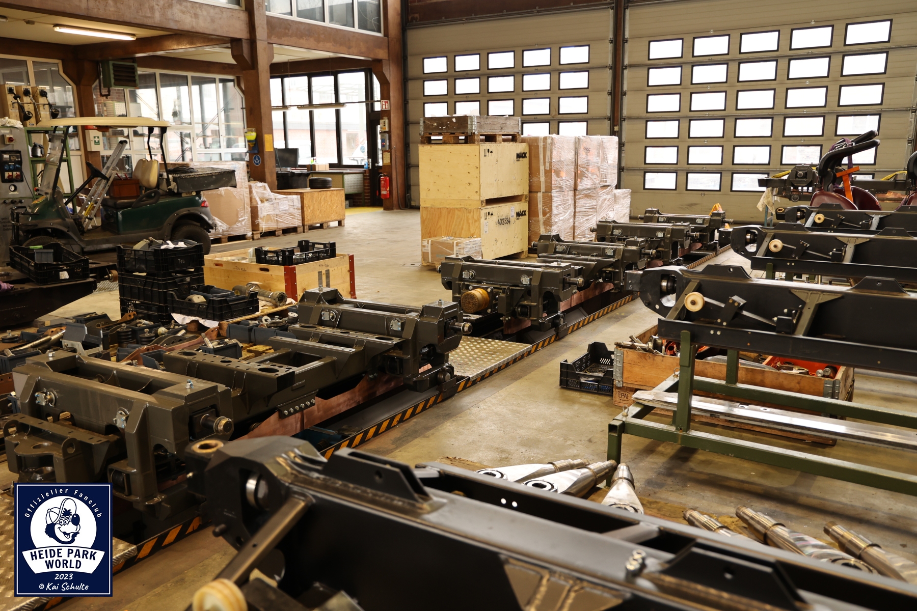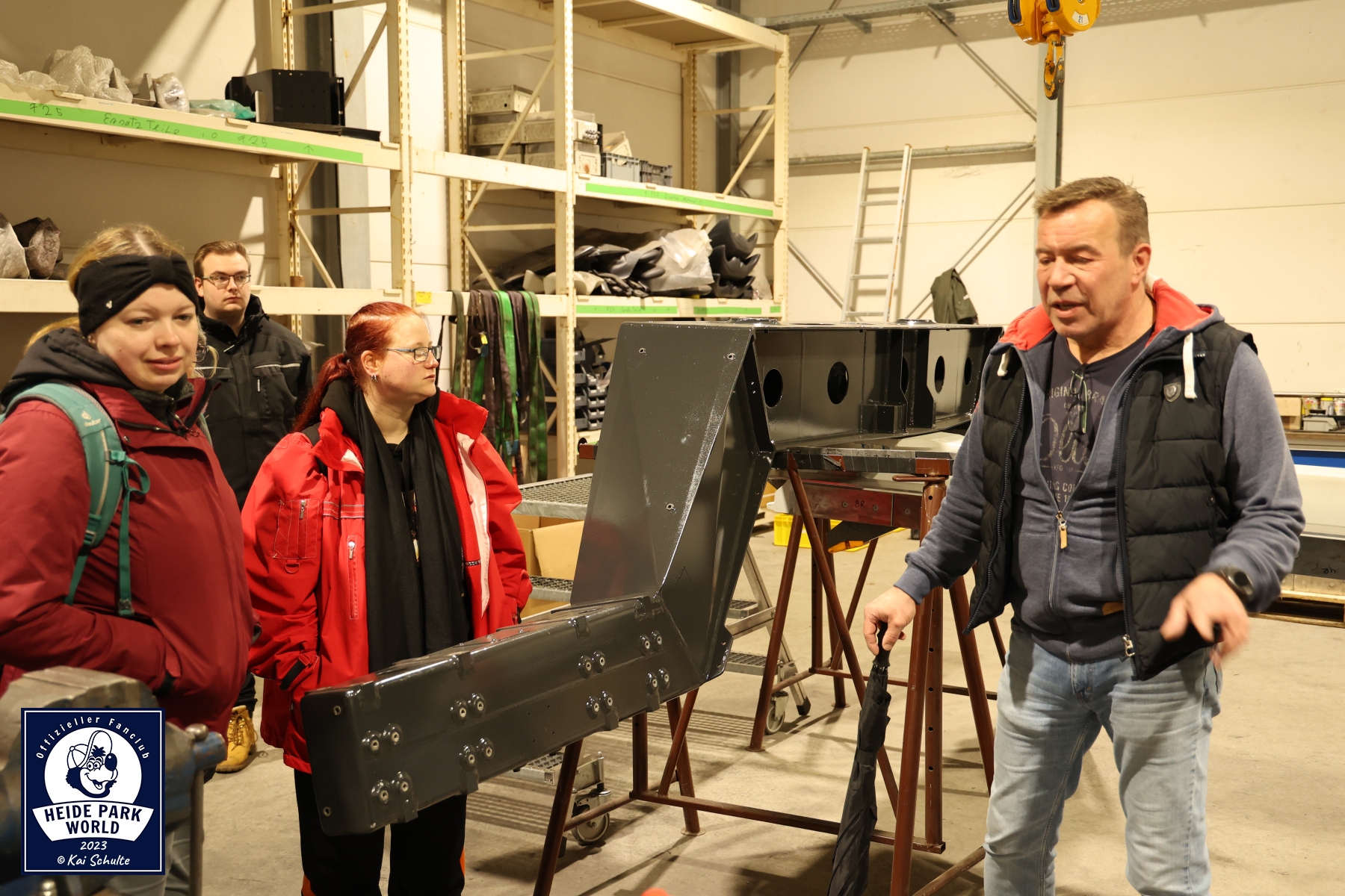 Pünktlich um 9:30 Uhr erwartete das Team von Heide Park World die Fans. Nach einem kurzen Check In und den ersten Smalltalks begrüßten Kai Schulte, Leitung von Heide Park World, und am zweiten Event Inhaber Philipp Langner, zusammen mit Pressesprecherin Svenja Heuer die Fans. In warme Kleidung eingekuschelt ging es Punkt 10:00 Uhr über den Betriebshof auf das Gelände des Parks. Erster Stop war an den parkeigenen Werkstätten. Hier begrüßte der Leiter der Mechanik, Marcel Birke, die neugierigen Teilnehmer*innen und startete die Führung im großen weitläufigen Atelier.