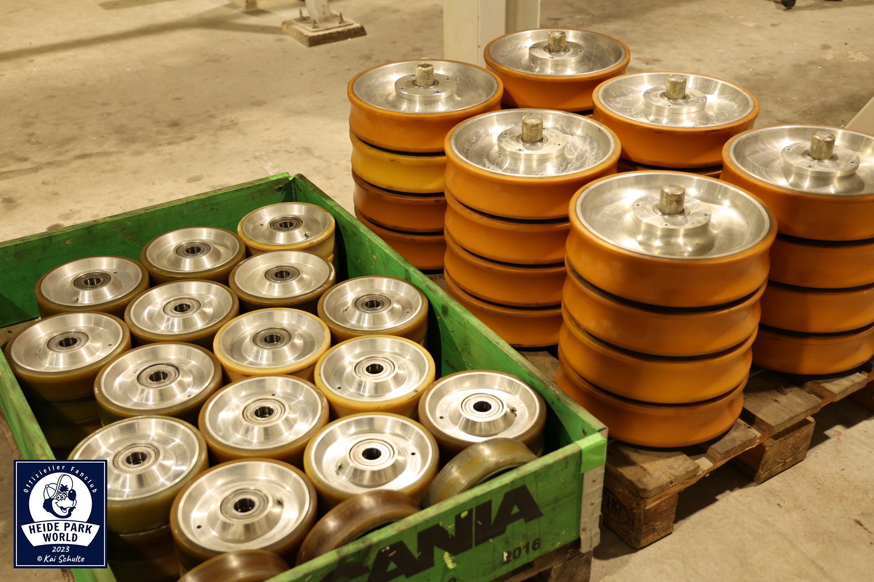Weiter ging die Reise in die Hallen der Mechanik, wo die auseinandergebauten Züge von Colossos zu bestaunen waren. Diese werden in jedem Winter intensiv durch die Techniker und Mechaniker gewartet und auf Mängel überprüft, bevor vor dem Saisonstart der TÜV ein prüfendes Auge darauf wirft. Aber auch andere Attraktionen konnten, zerlegt in ihre Einzelteile, begutachtet werden.