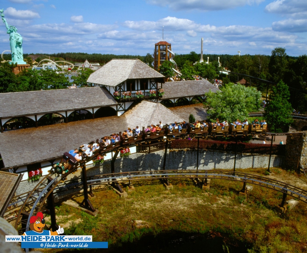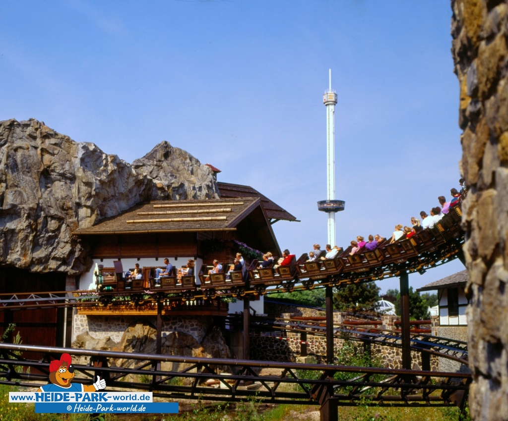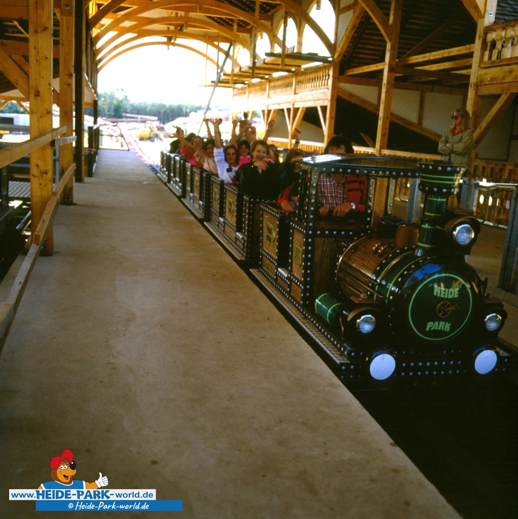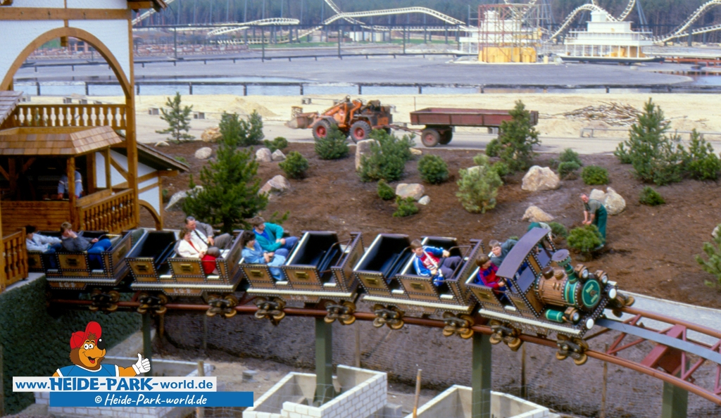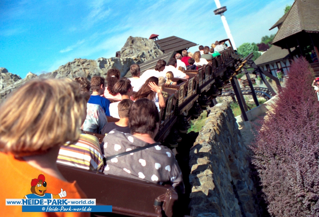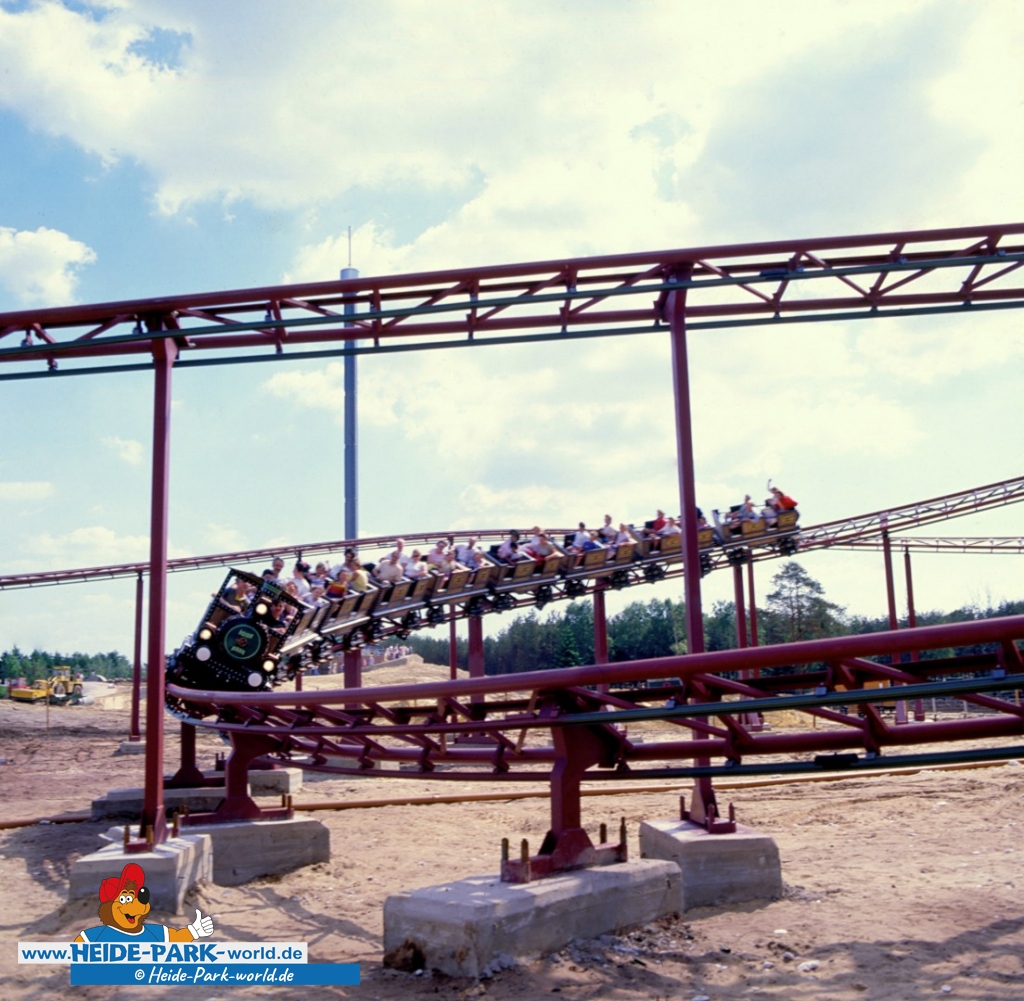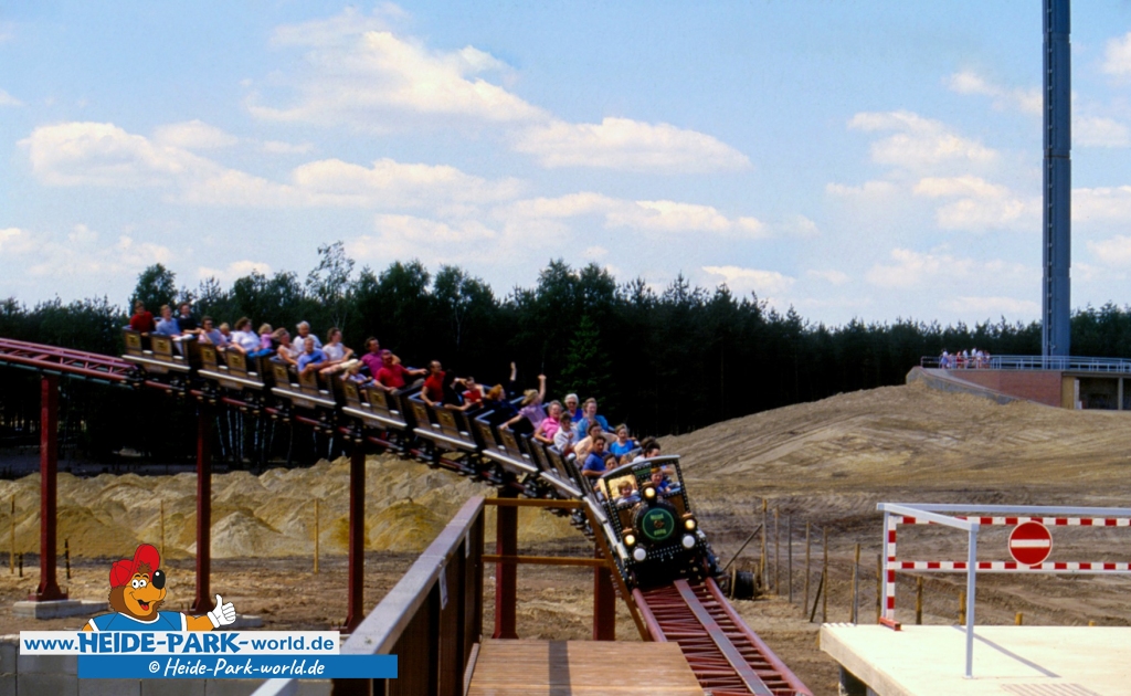 Sie wurde vom Heide Park in den 80er Jahren liebevoll als "Lokomotive mit dem Edelweiß" beworben. Wir kennen sie unter den Namen Mountain-Train und Mountain-Blitz. Die Rede ist natürlich vom Grottenblitz, der zweiten Achterbahn des Heide Parks!