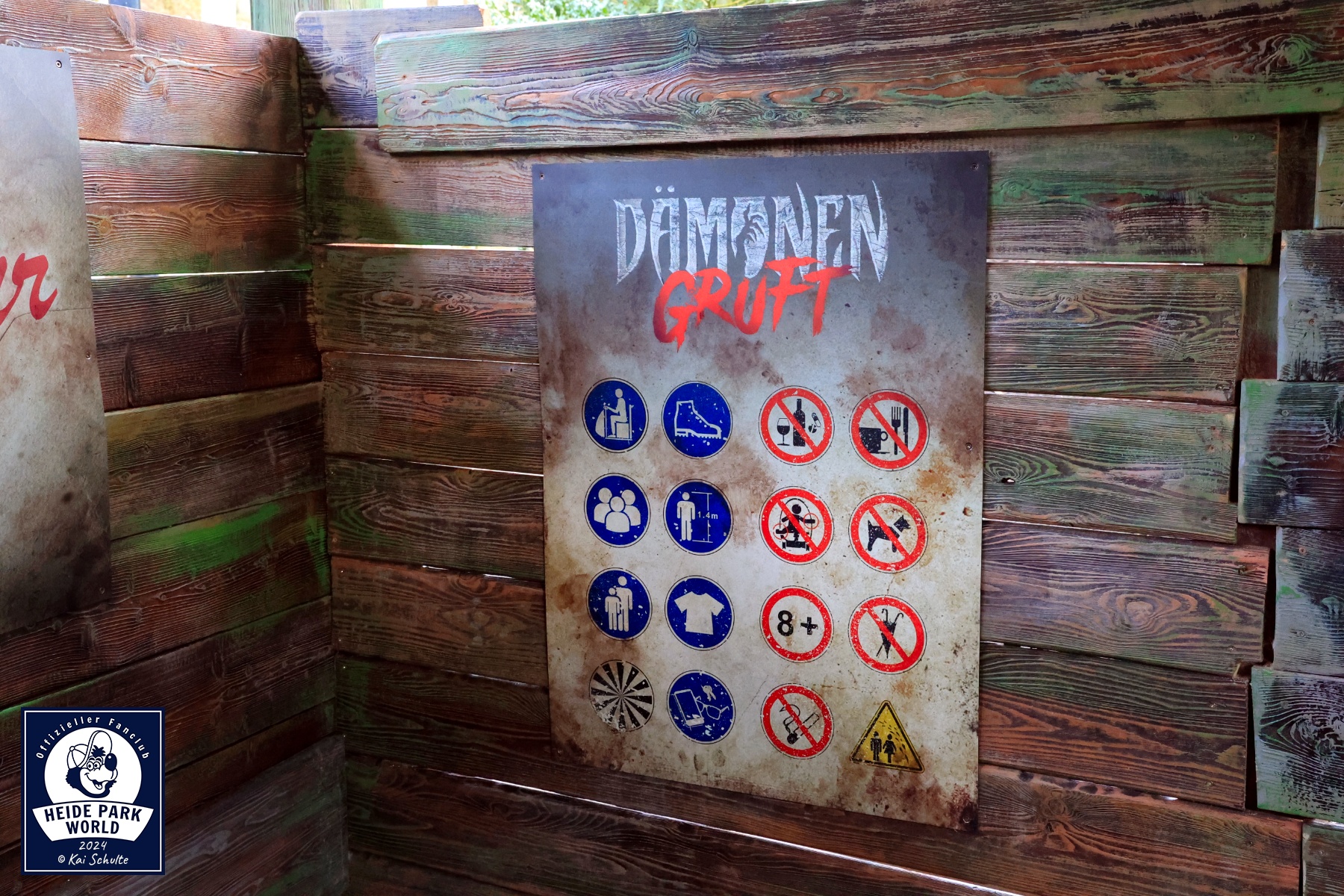 Die dann folgenden 3 Minuten führen durch enge Stollen mit spärlicher Beleuchtung sowie bedrückender musikalischer Beschallung. Die 8 passend thematisierten Katakomben-Tourfahrzeuge bahnen sich unermüdlich ihren Weg immer tiefer in die „Dämonen Gruft“.