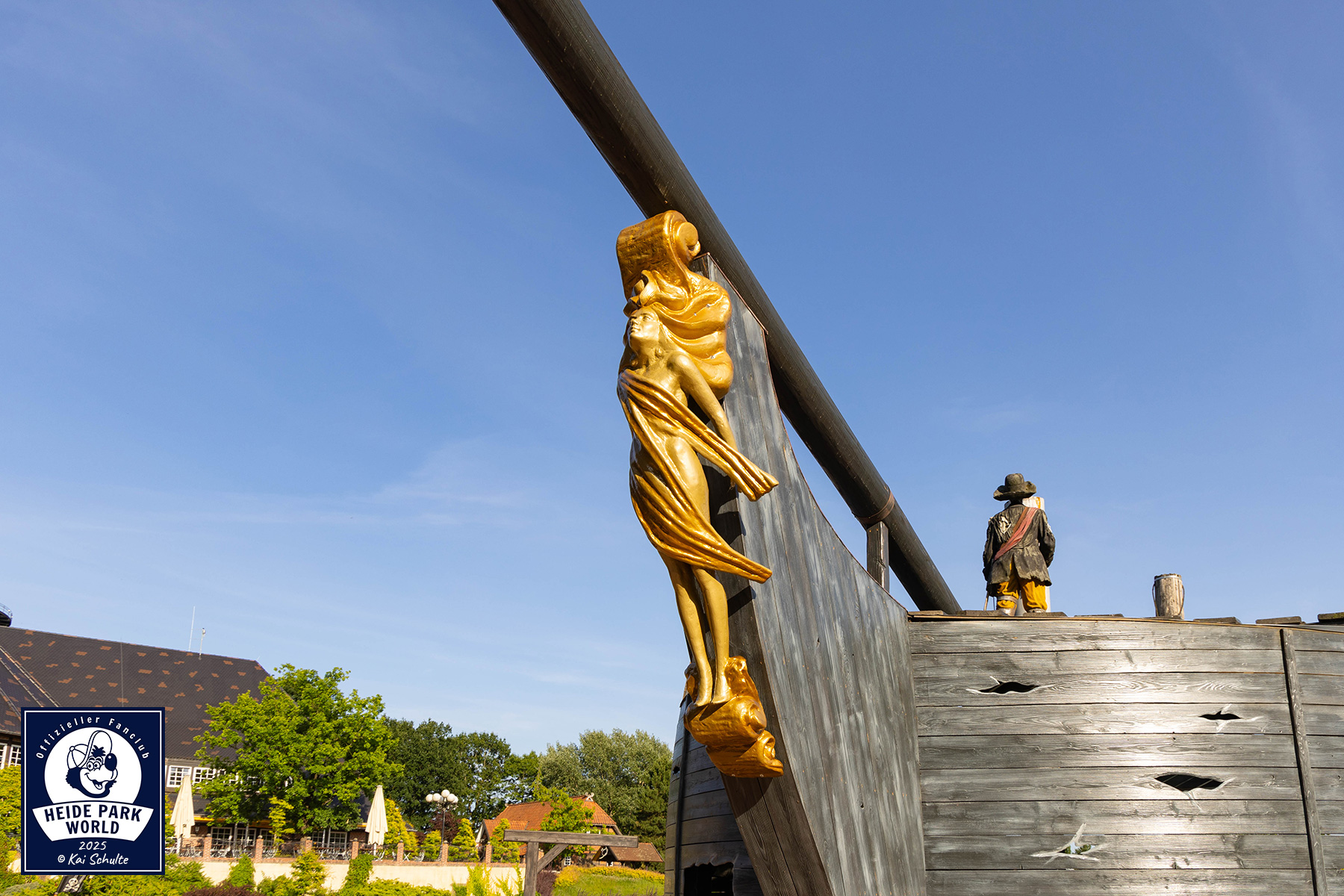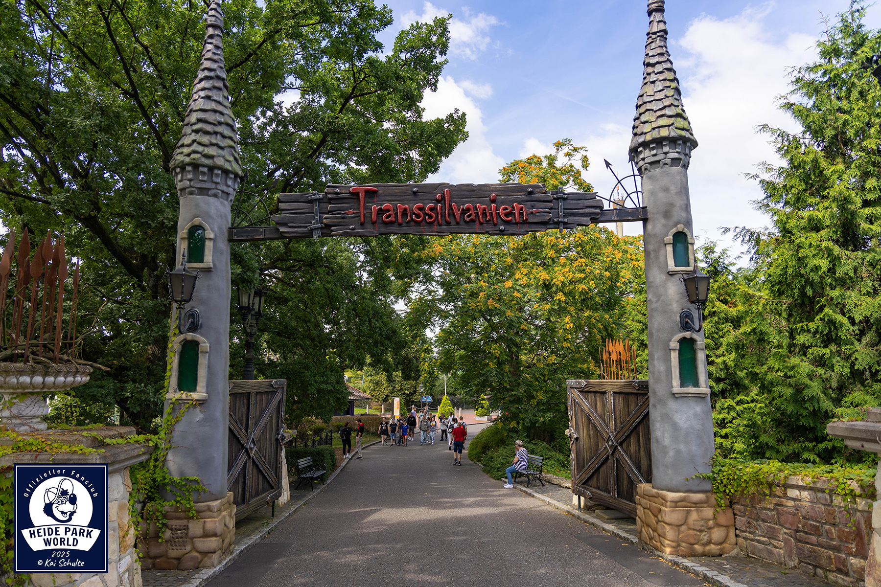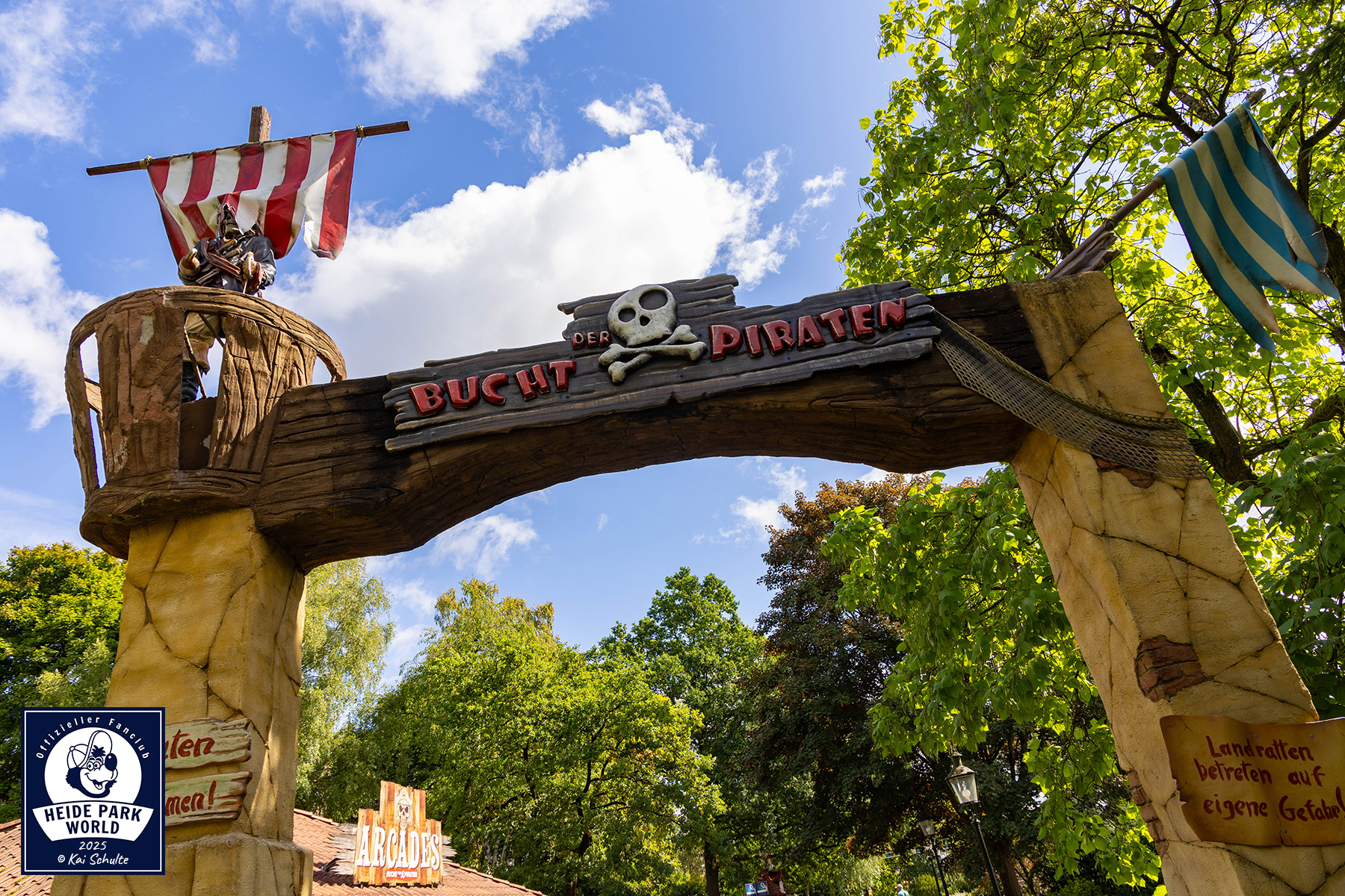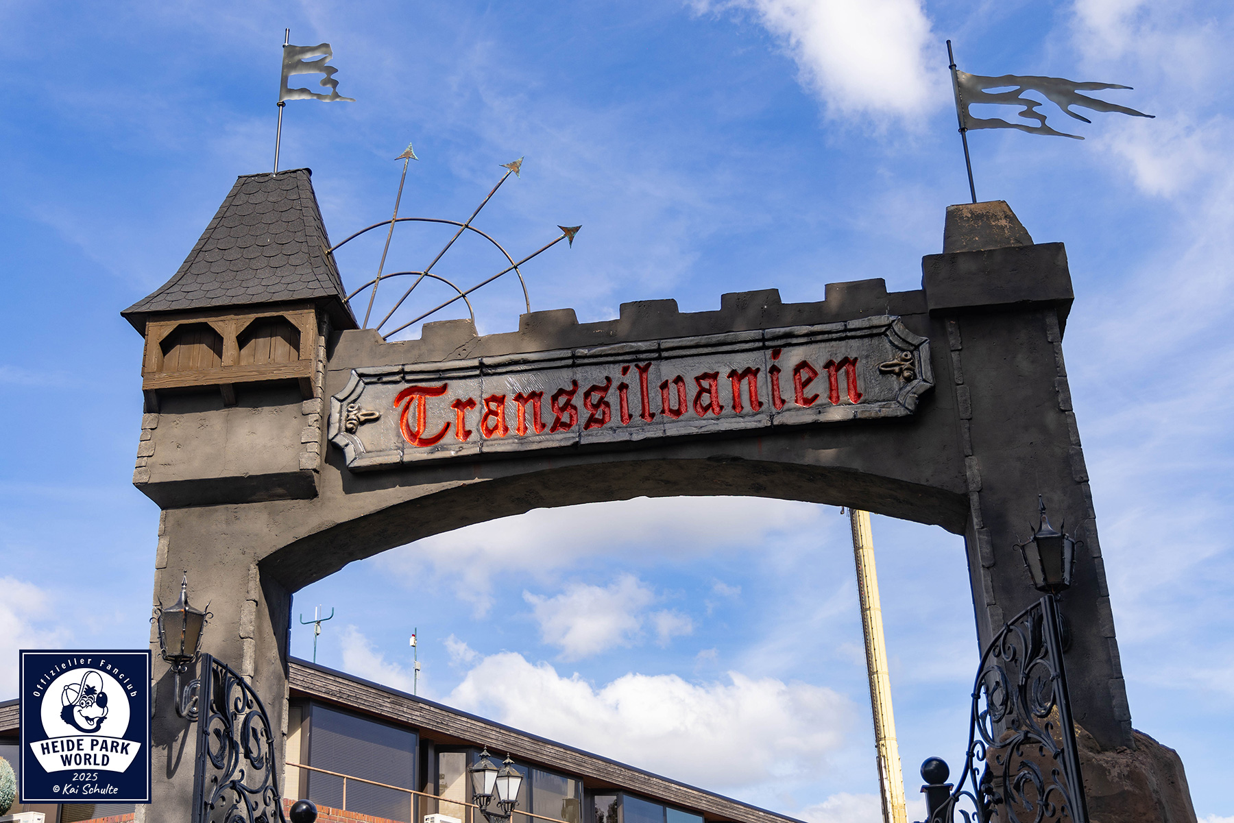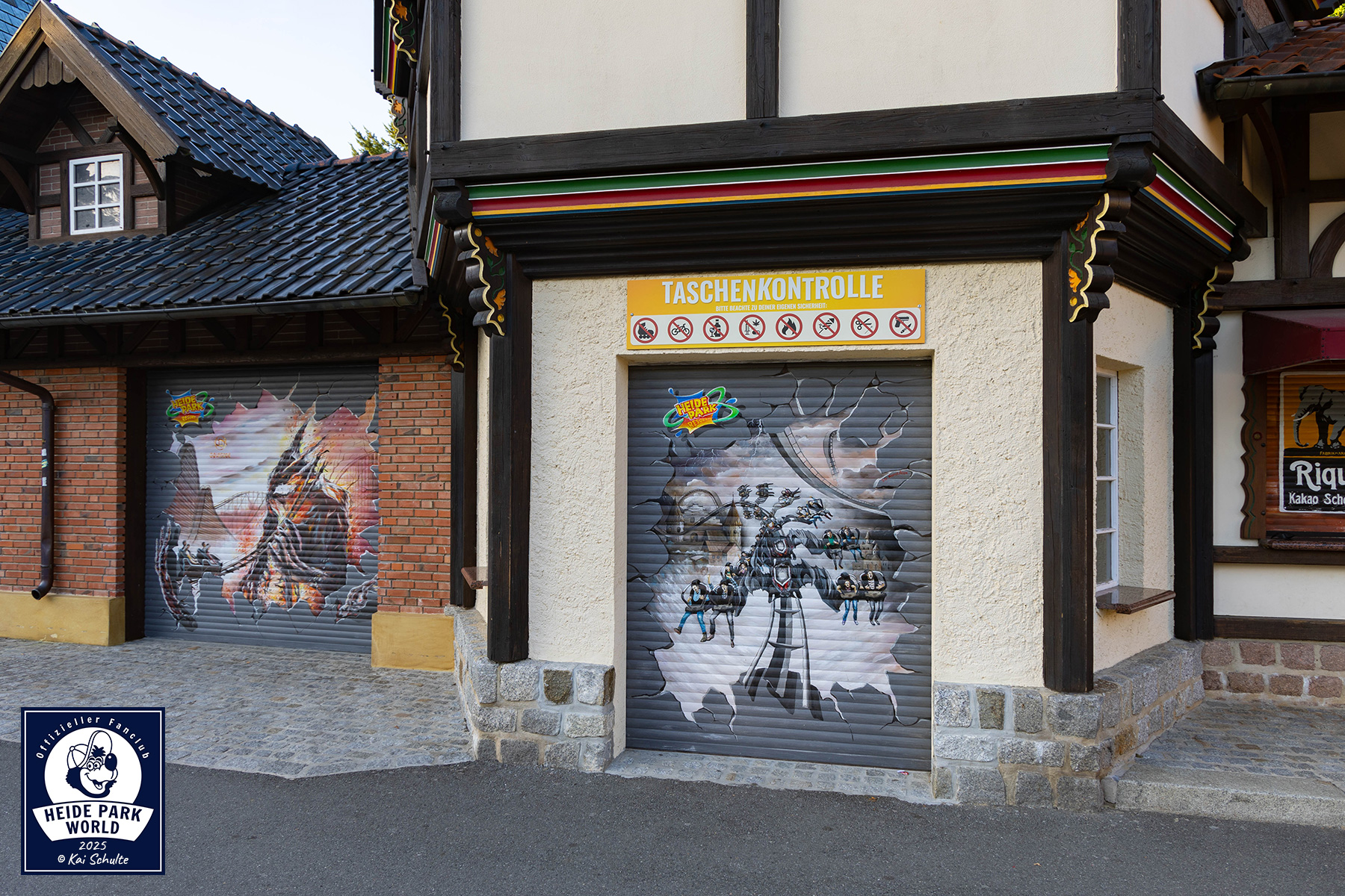 2025-04-06: Das Eingangsportal wurde neu gestrichen und erstrahlt jetzt in Gelb-Gold. Das überarbeitete Logo wirkt deutlich plastischer. Daneben entstand ein Podest für Lord Explorus zur Parkeröffnung.