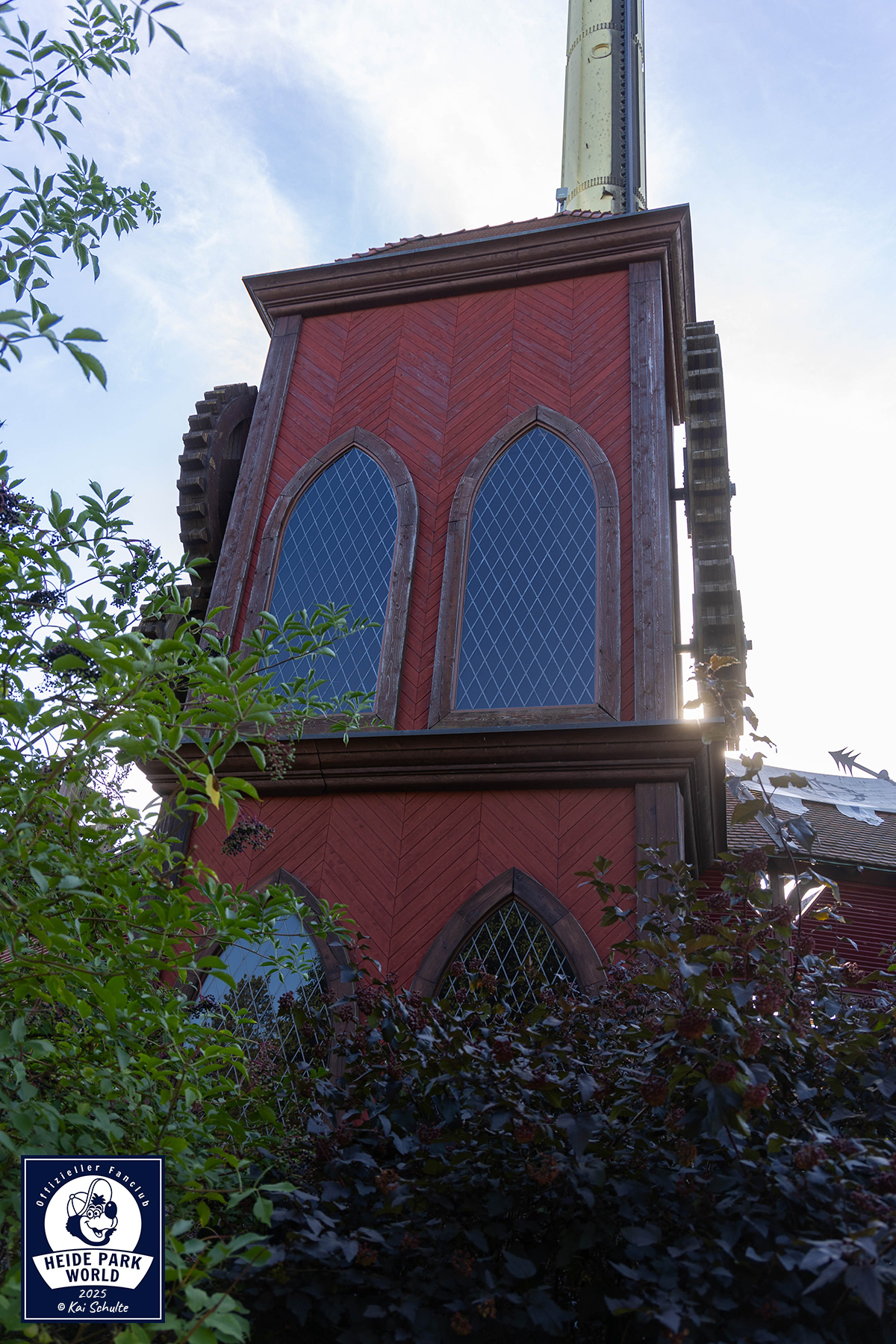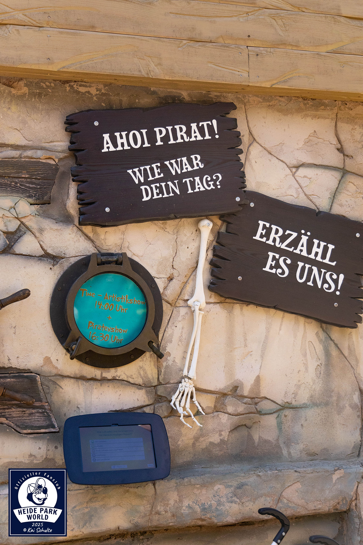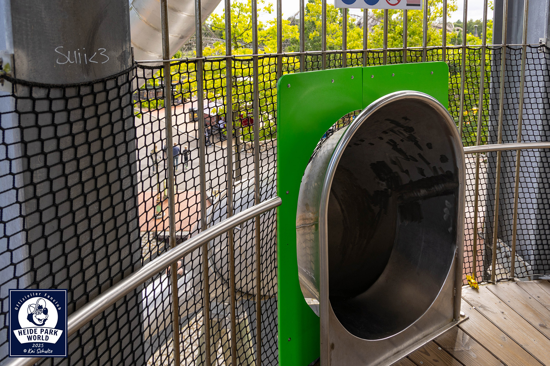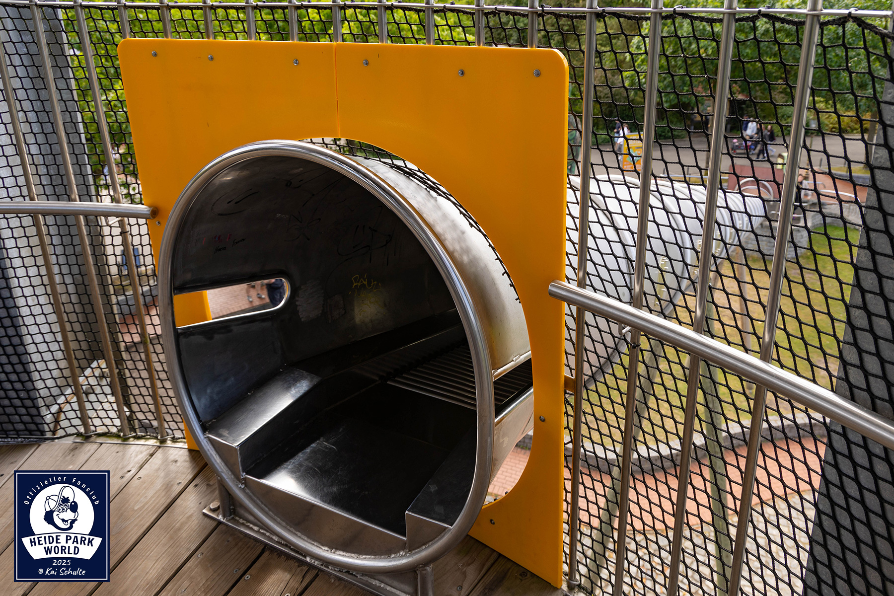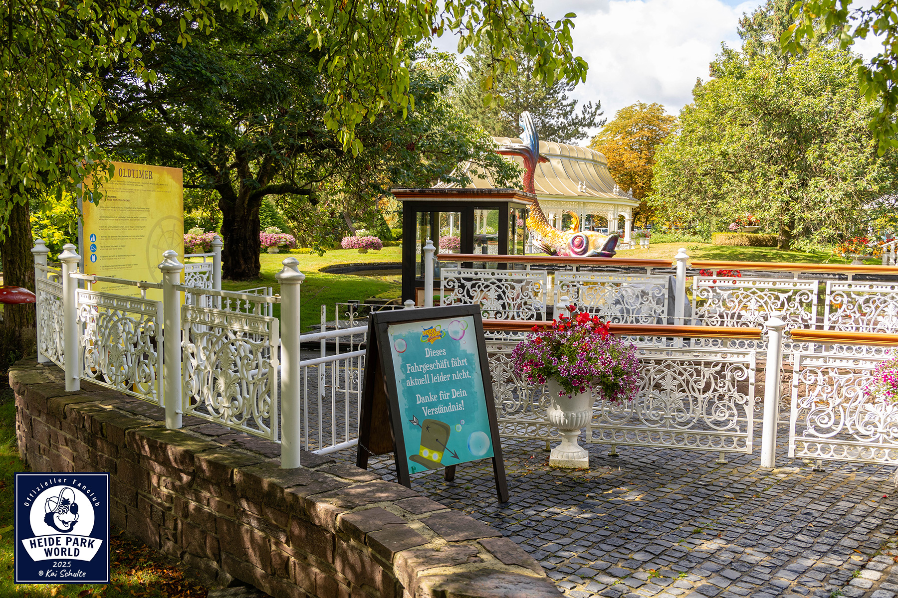 2025-04-06: Das Eingangsportal wurde neu gestrichen und erstrahlt jetzt in Gelb-Gold. Das überarbeitete Logo wirkt deutlich plastischer. Daneben entstand ein Podest für Lord Explorus zur Parkeröffnung.