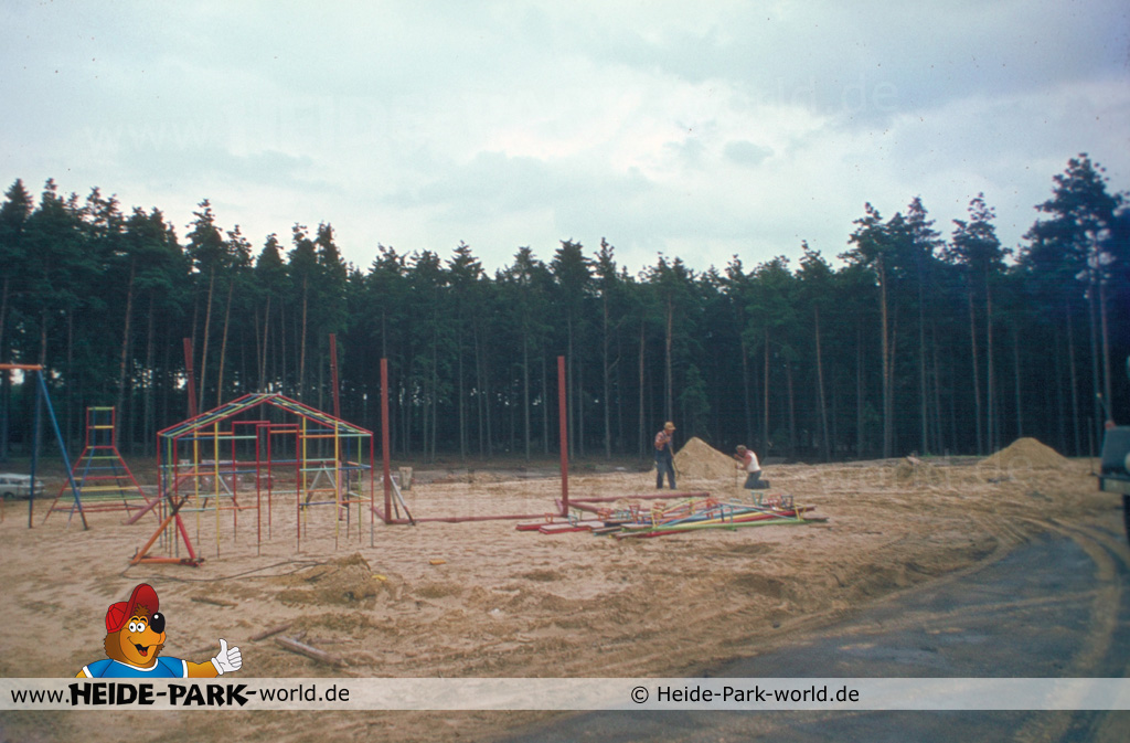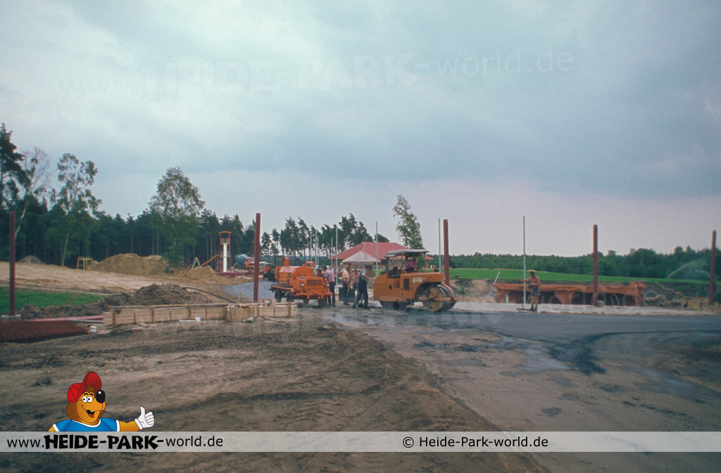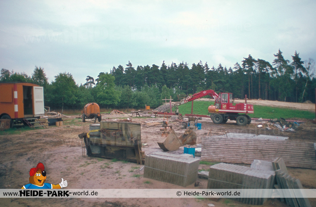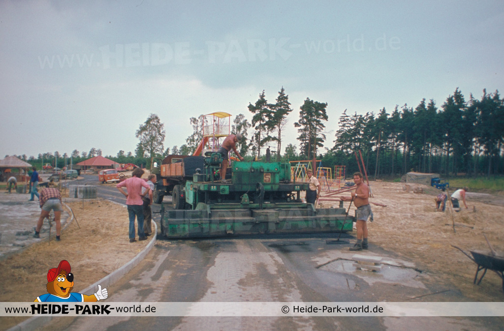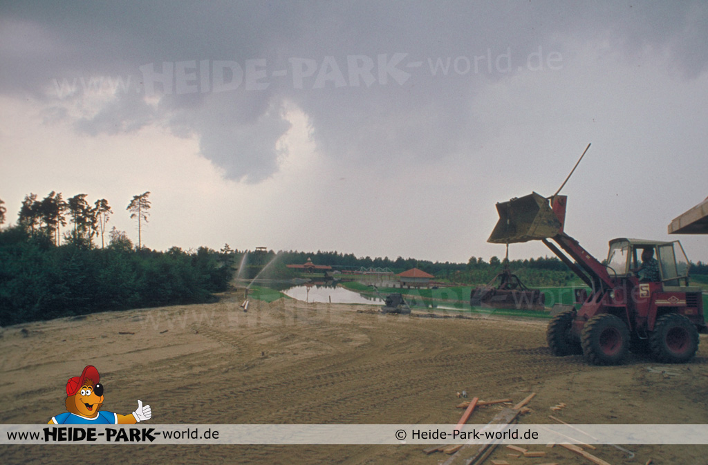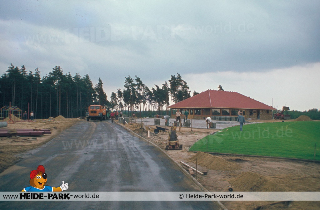05. August 1978 - Zwei Wochen vor der Eröffnung des Heide-Parks laufen die Bauarbeiten an allen Ecken des Parks auf Hochtouren. Den zahlreichen Bauarbeitern, Handwerkern und Gärtnern bleibt nicht mehr viel Zeit, um alles in eine grüne Wohlfühloase zu verwandeln.