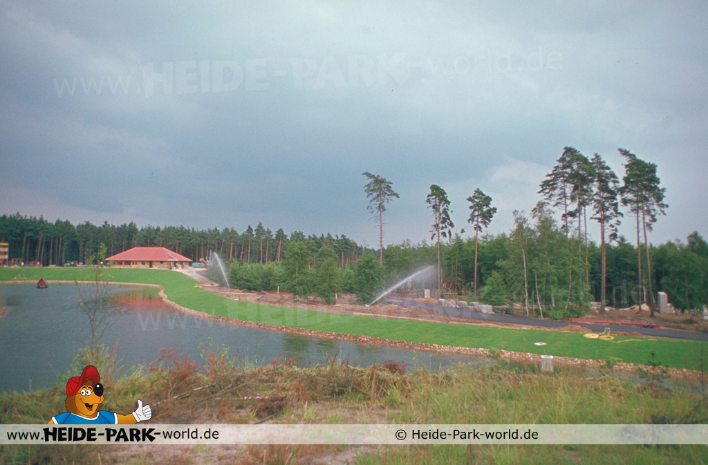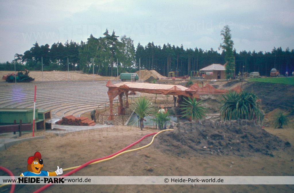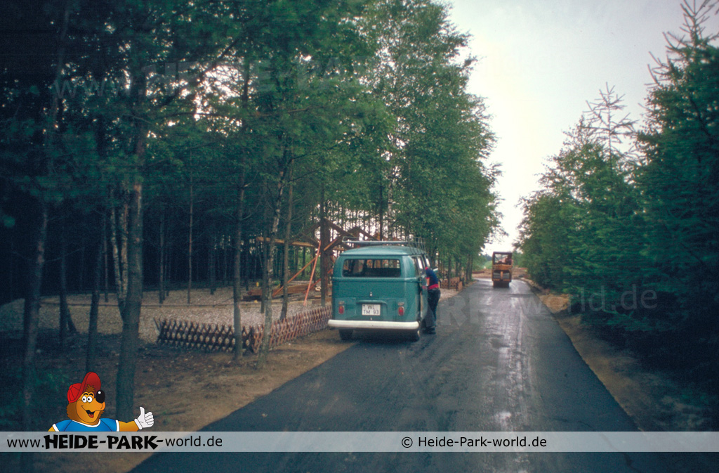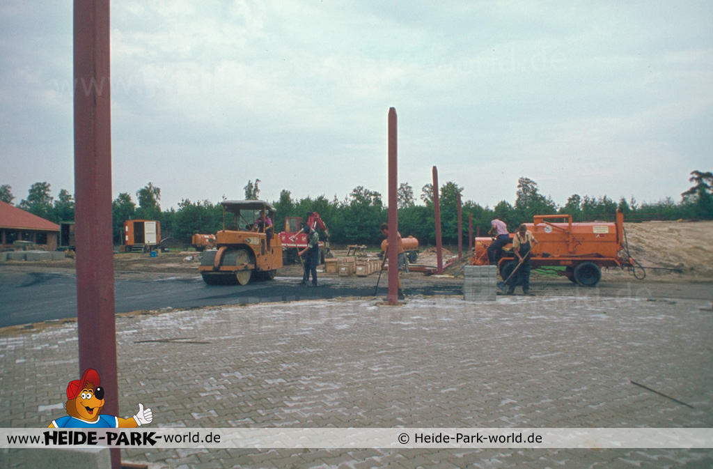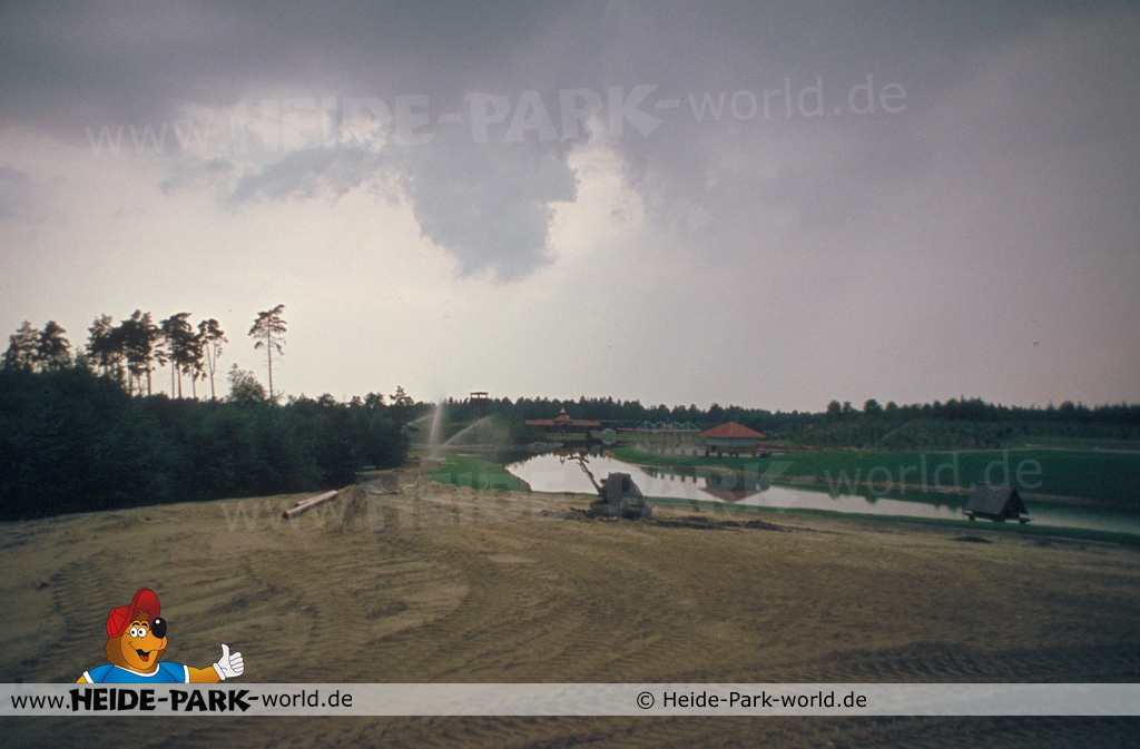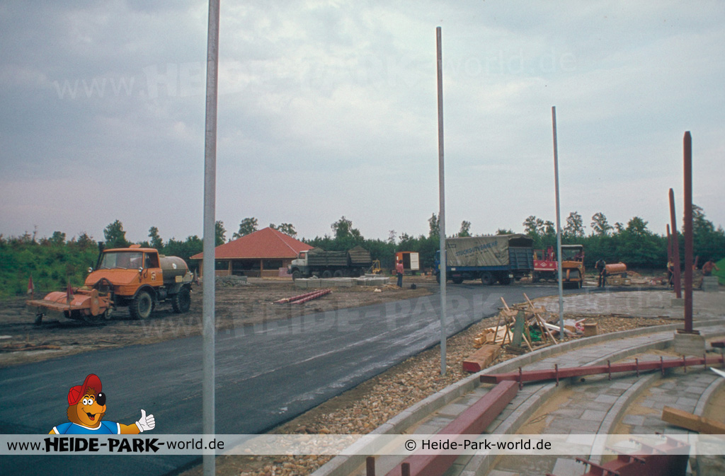 05. August 1978 - Zwei Wochen vor der Eröffnung des Heide-Parks laufen die Bauarbeiten an allen Ecken des Parks auf Hochtouren. Den zahlreichen Bauarbeitern, Handwerkern und Gärtnern bleibt nicht mehr viel Zeit, um alles in eine grüne Wohlfühloase zu verwandeln.