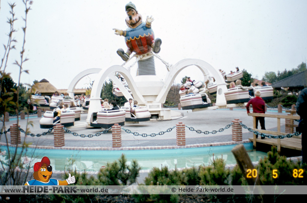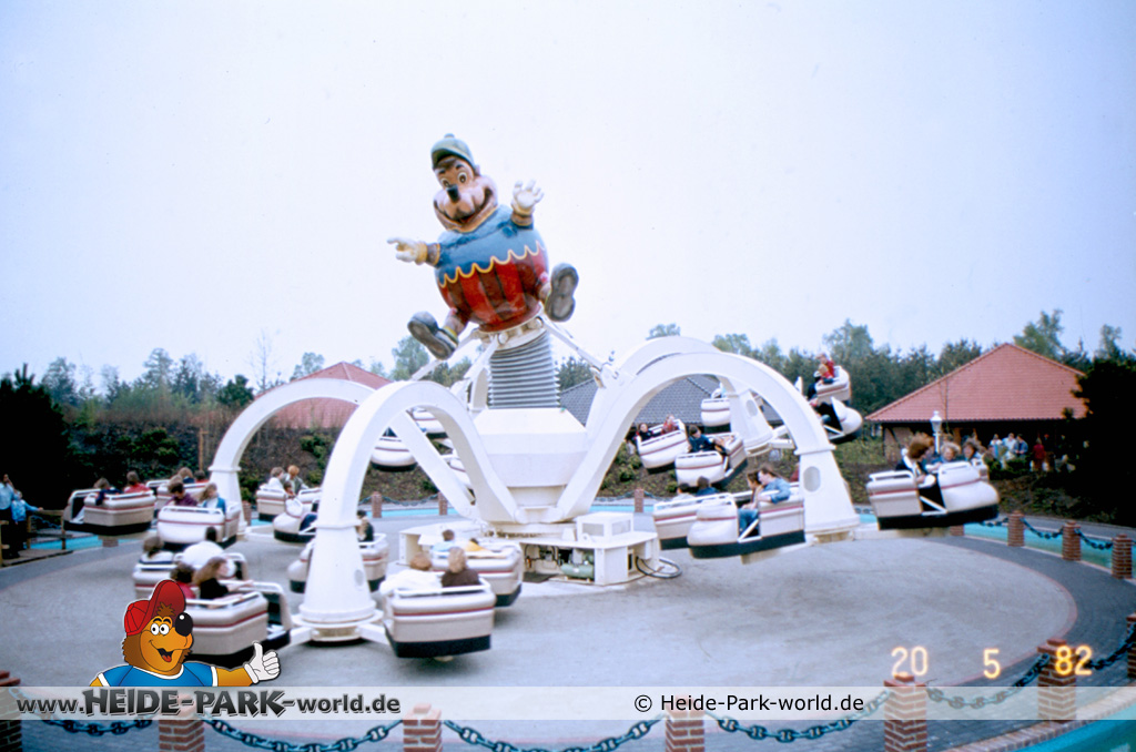 Teil 2 - In der Mitte thront Wumbo, das neue Maskottchen des Heide-Parks. Er, der große Bruder von Matzi, darf jetzt auch mit den Besuchern Karussell fahren. Die Riesenkrake, welche sich zwischen der Monzapiste und der Hochbahn befindet, wirbelt die Gäste durch die Luft. Zur Gestaltung der Anlage wurde rings um die Riesenkrake ein Wassergraben errichtet.