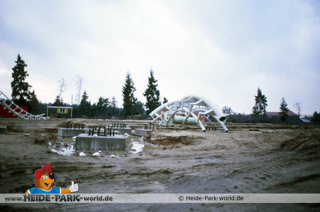 Teil 3 - Am Lift der neuen Bahn werden noch die Fundamente gegossen. Am anderen Ende der Bahn, quasi am Wendepunkt, sieht es schon einladender aus. Die Wende mit folgenden Korkenziehern ist bereits komplett errichtet.