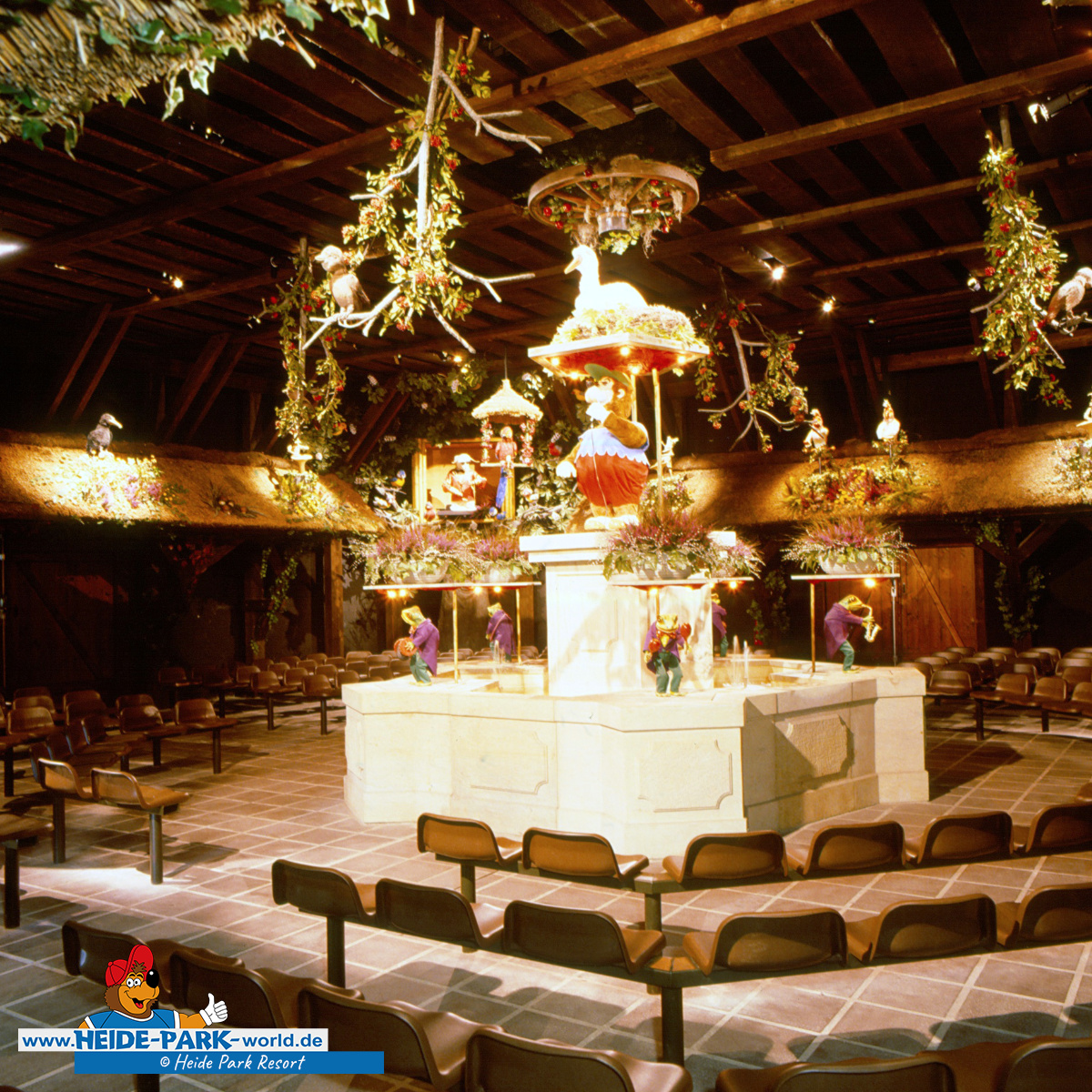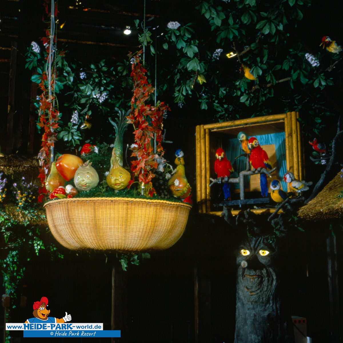 Am 02. August 1989 öffnet im Heide-Dorf das elektronische Vogeltheater. Wumbo, das lebenslustige Wappentier des Heide Parks, ist der Showmaster, seine Stars sind die Vögel.