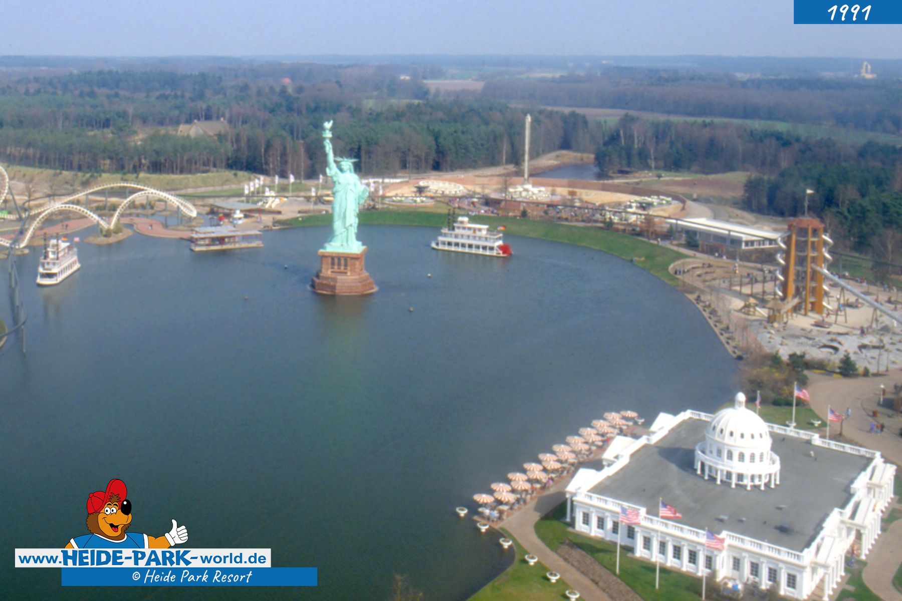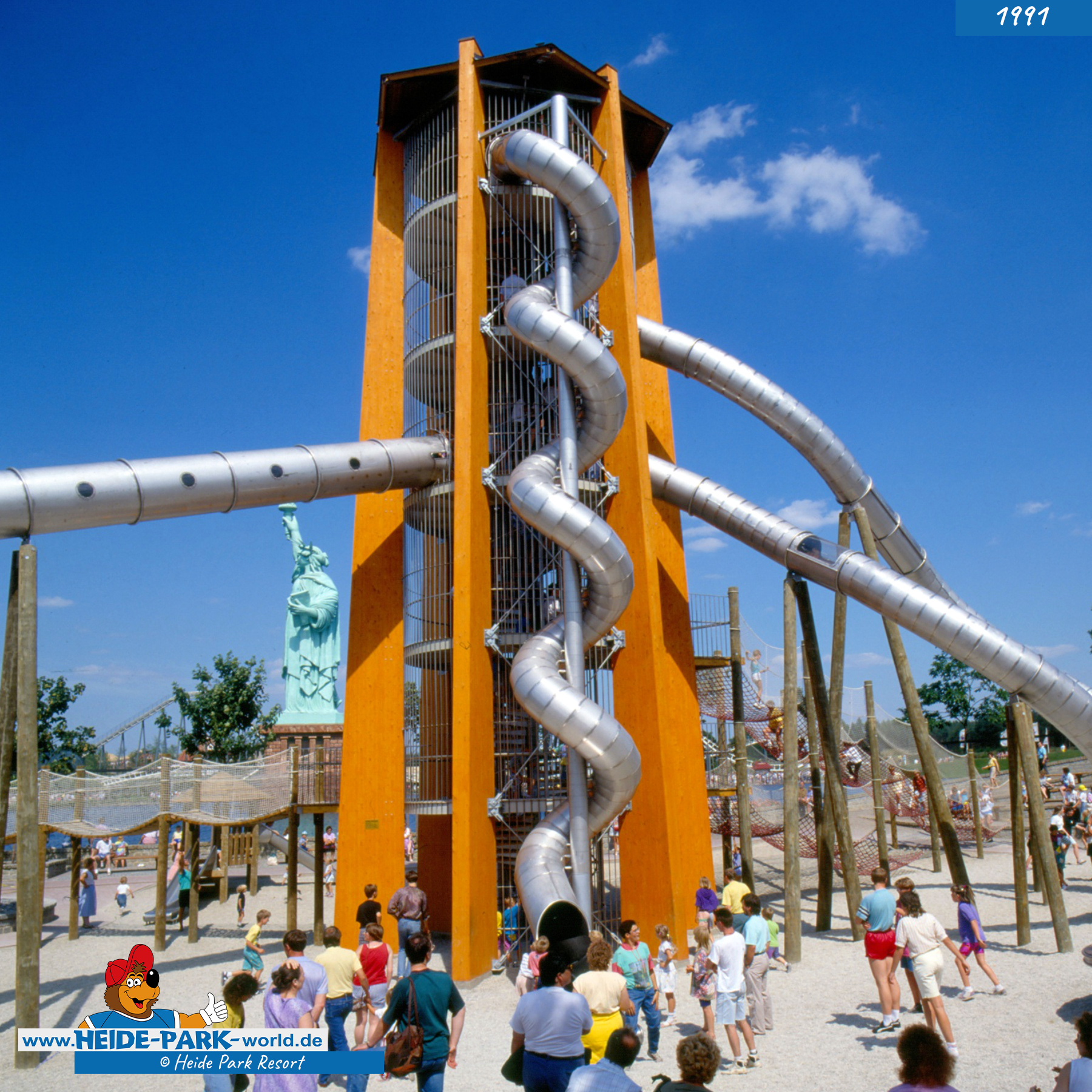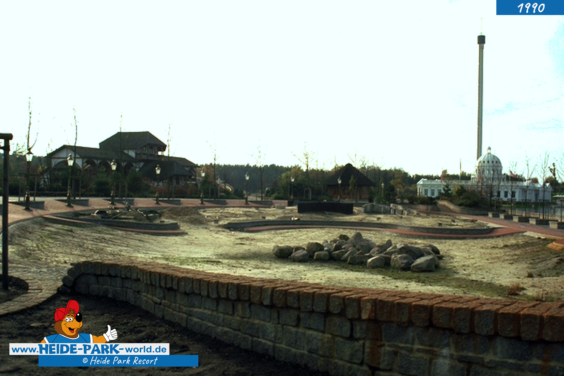 Direkt am Großen See beginnen in der Saison 1990 die Bauarbeiten für den neuen Wasserspielplatz. Er wird bei seiner Eröffnung in der Saison 1991 mit seiner höchsten Rutsche in 20 m Höhe der größte Spielplatz im Heide Park.