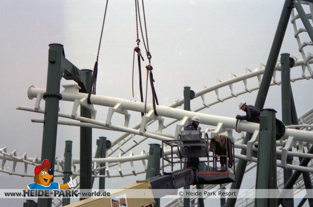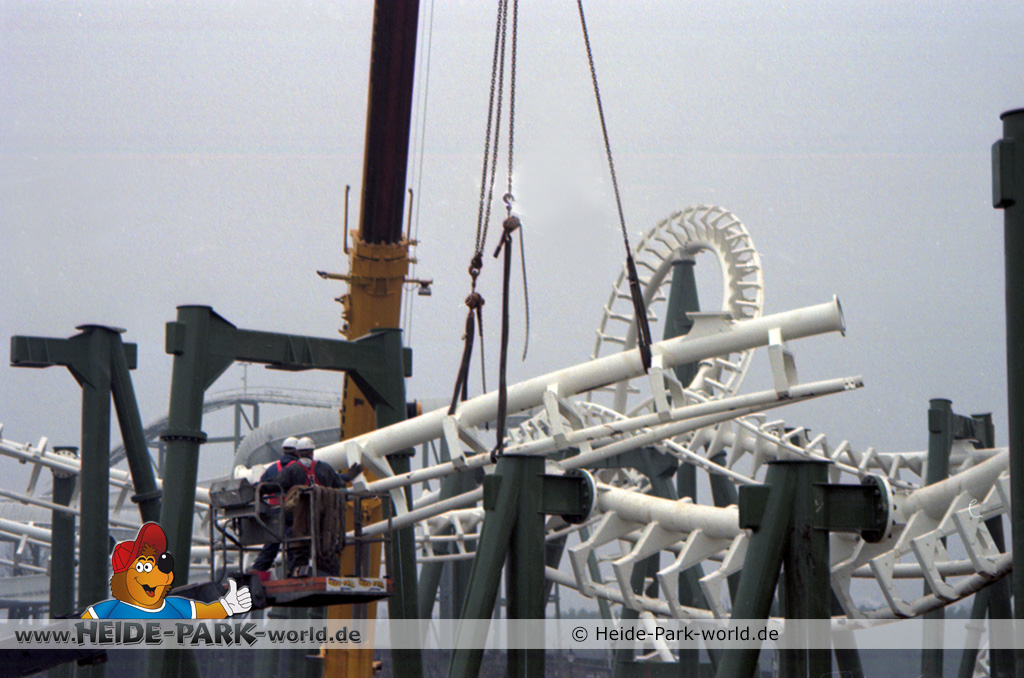 Die Achterbahn Limit ist nun so gut wie fertiggestellt. Die letzten fehlenden Schienenteile der Schluss- sowie Blockbremse befindet sich bereits auf dem Gelände des Heide Parks und müssen nur noch auf der Baustelle an ihrer vorgesehenen Position montiert werden. Um das Puzzle schlussendlich zu vervollständigen, werden noch die Schienenteile der Station ein-, sowie das Stationsgebäude selbst gebaut.