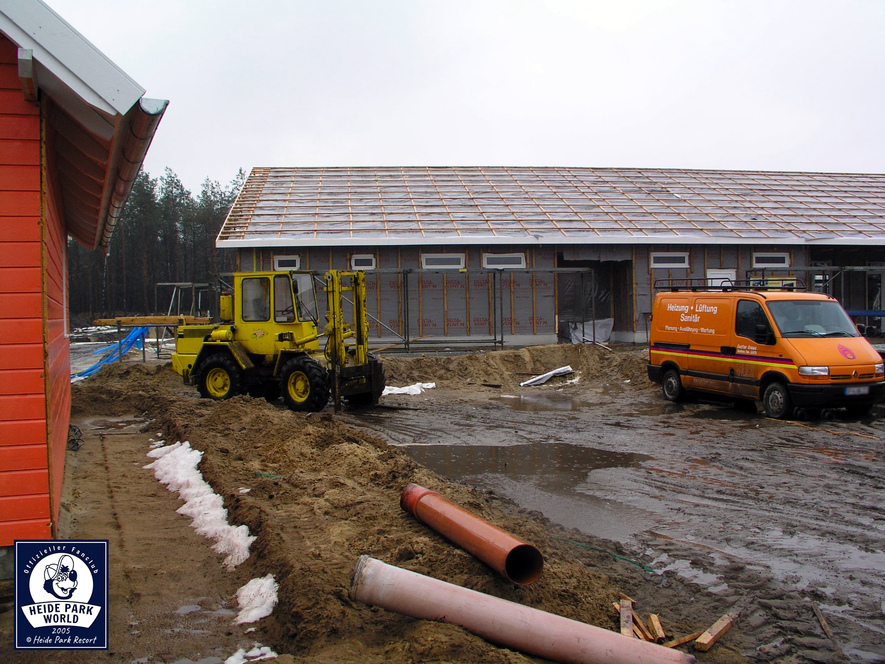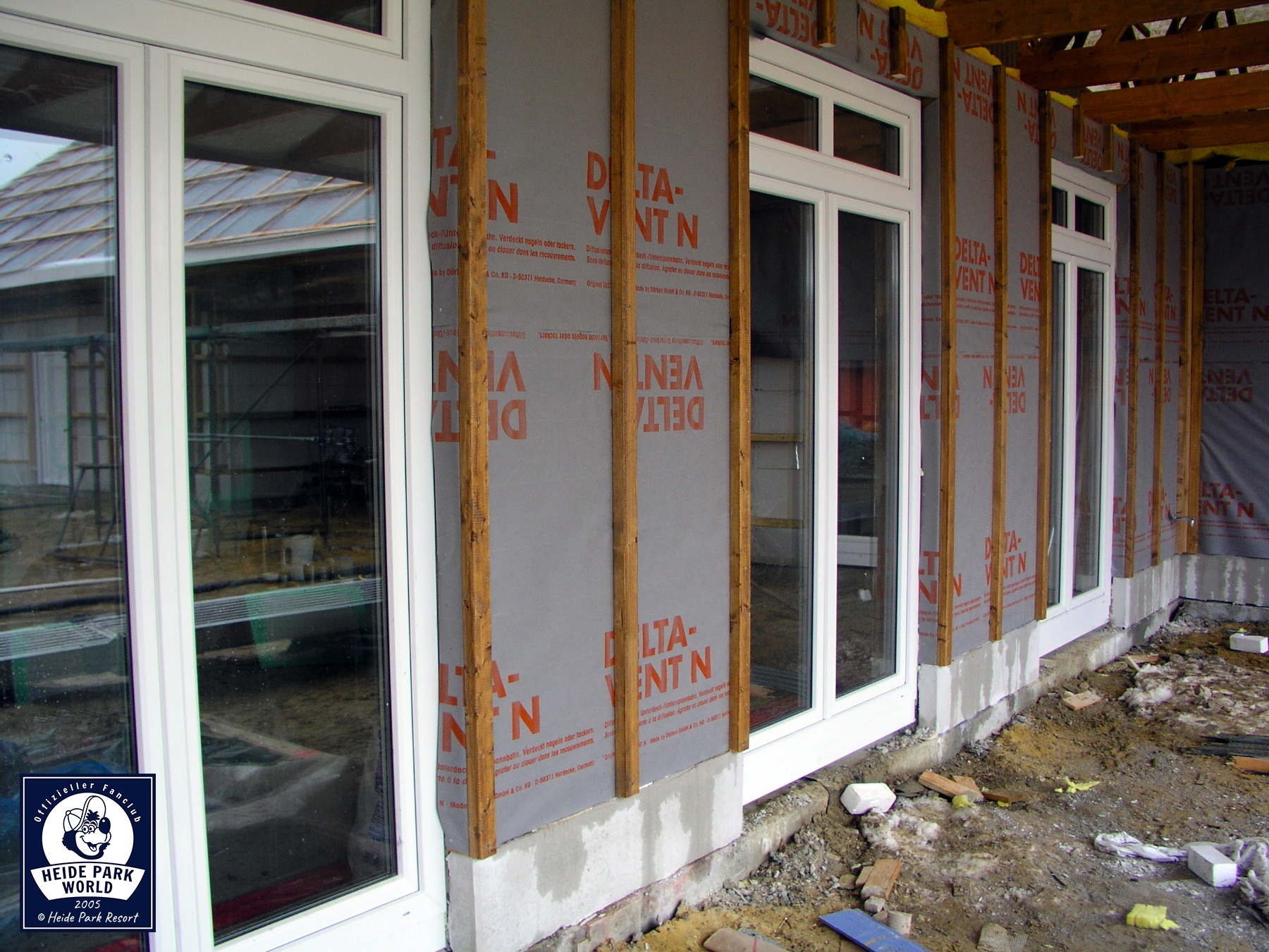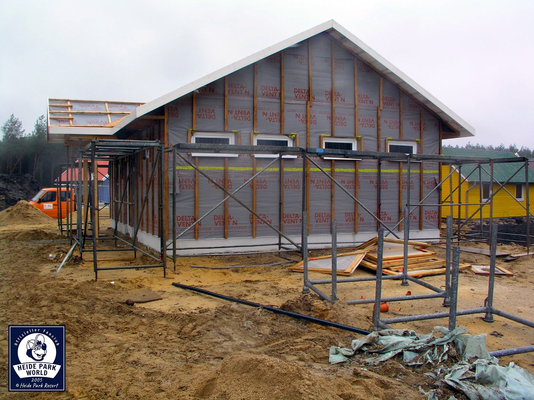11.-17. März 2005 - Noch zwei Monate bis zur Eröffnung des Holiday Camps. Der Rohbau der Holzhütten ist größtenteils abgeschlossen. Die zentralen Sanitäranlagen sowie die Rezeption benötigen nur noch ihre Außenbeplankung mit Holz.