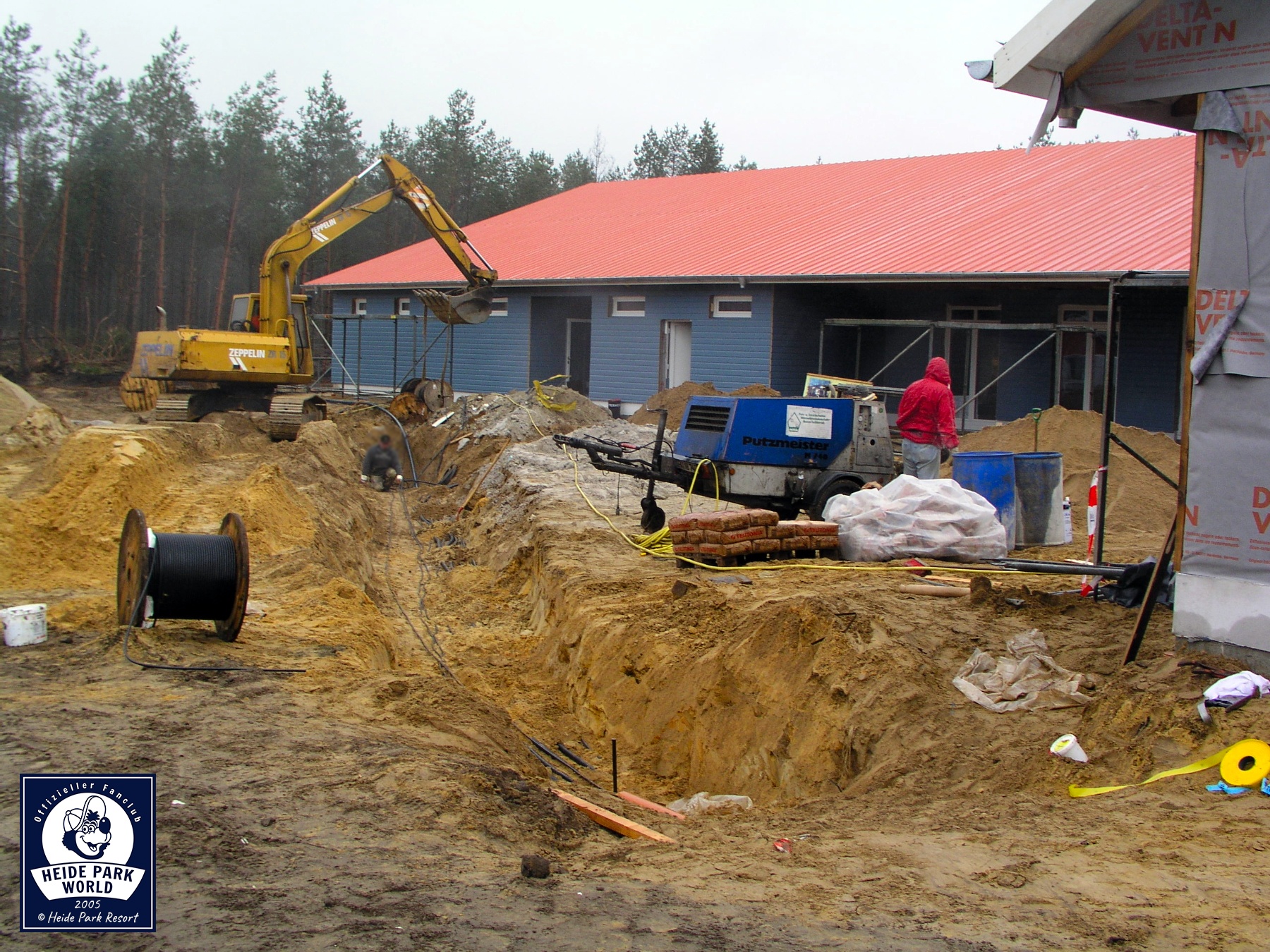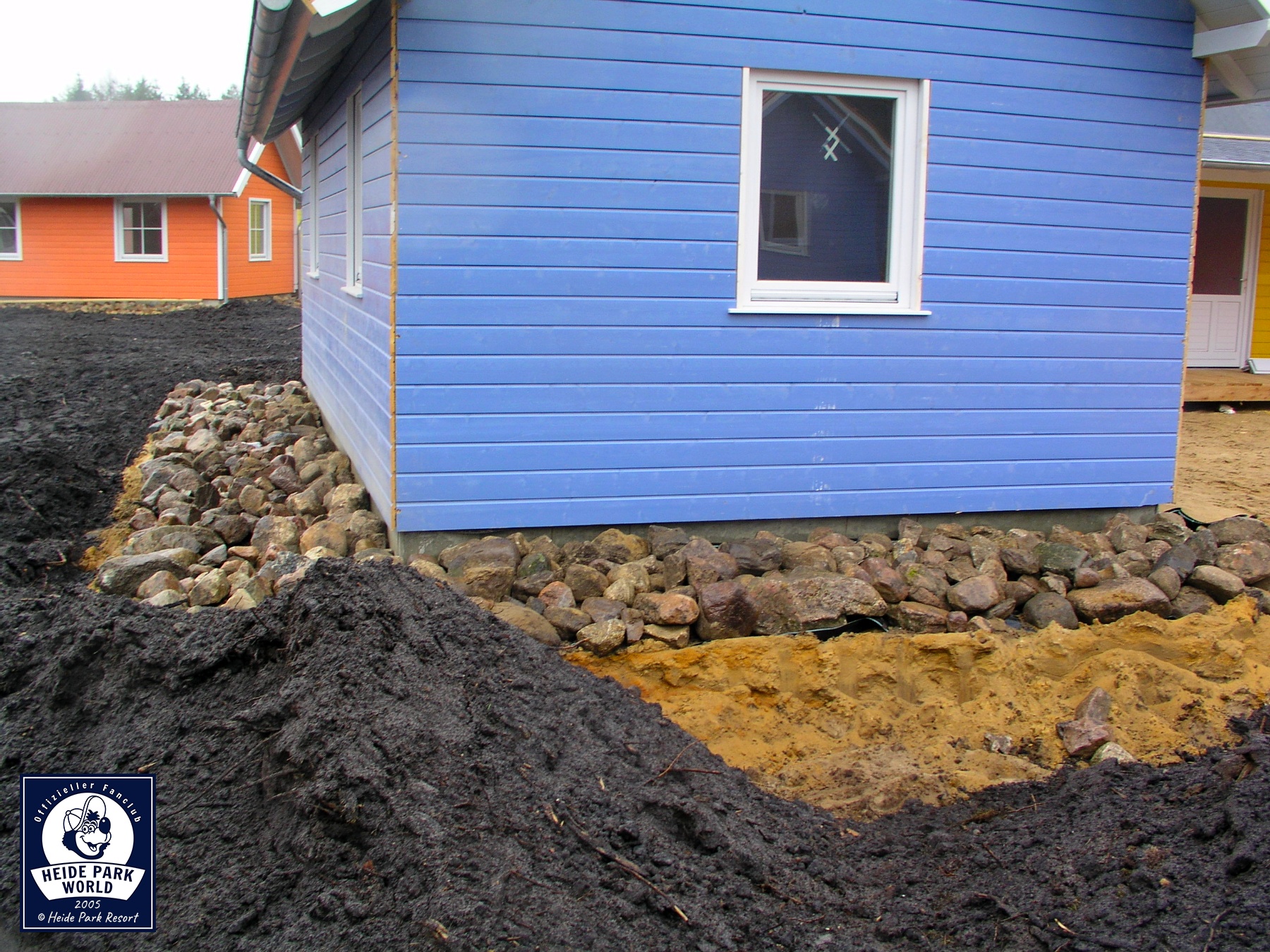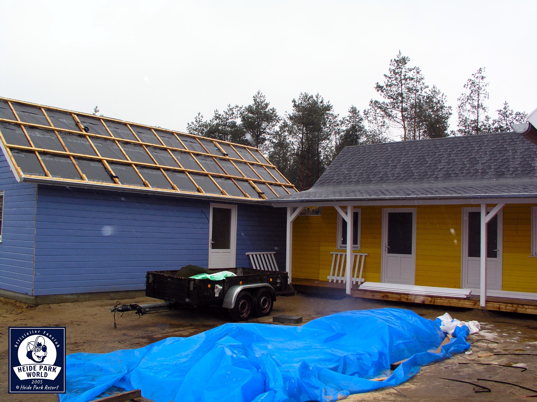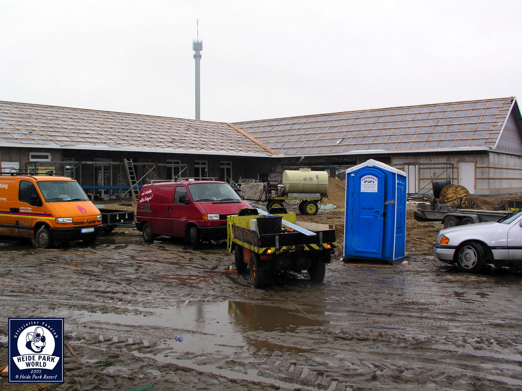 11.-17. März 2005 - Noch zwei Monate bis zur Eröffnung des Holiday Camps. Der Rohbau der Holzhütten ist größtenteils abgeschlossen. Die zentralen Sanitäranlagen sowie die Rezeption benötigen nur noch ihre Außenbeplankung mit Holz.
