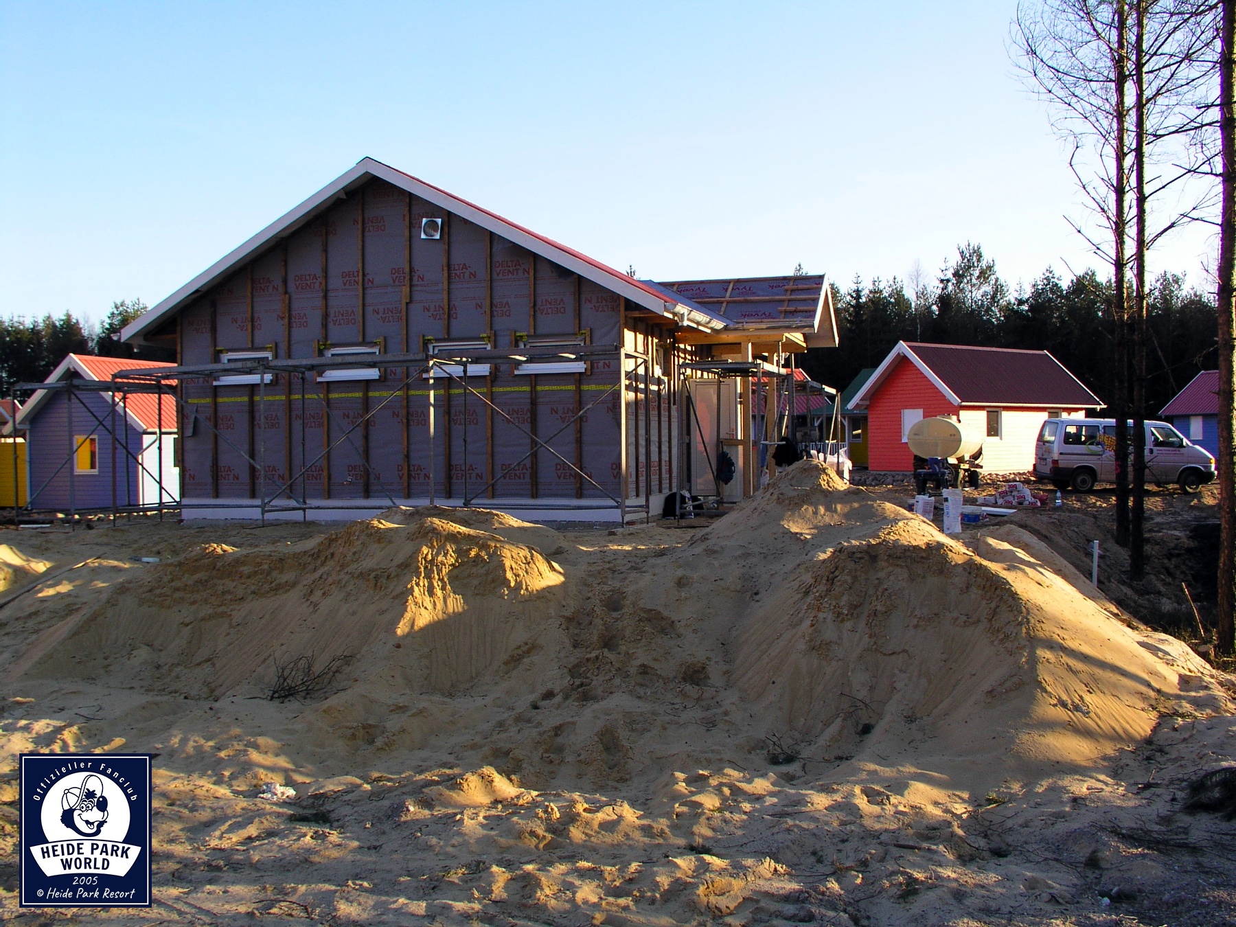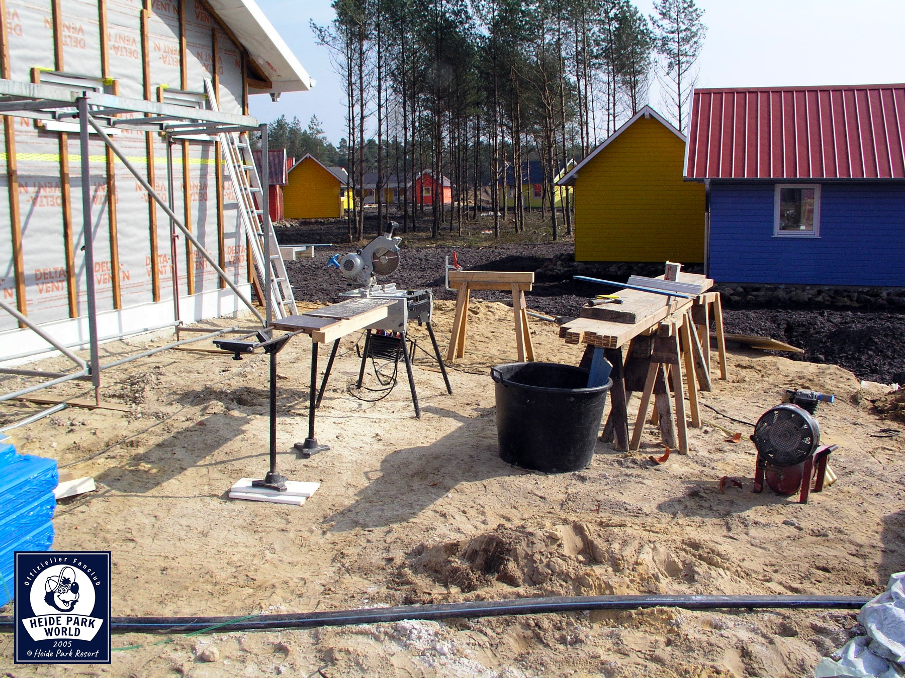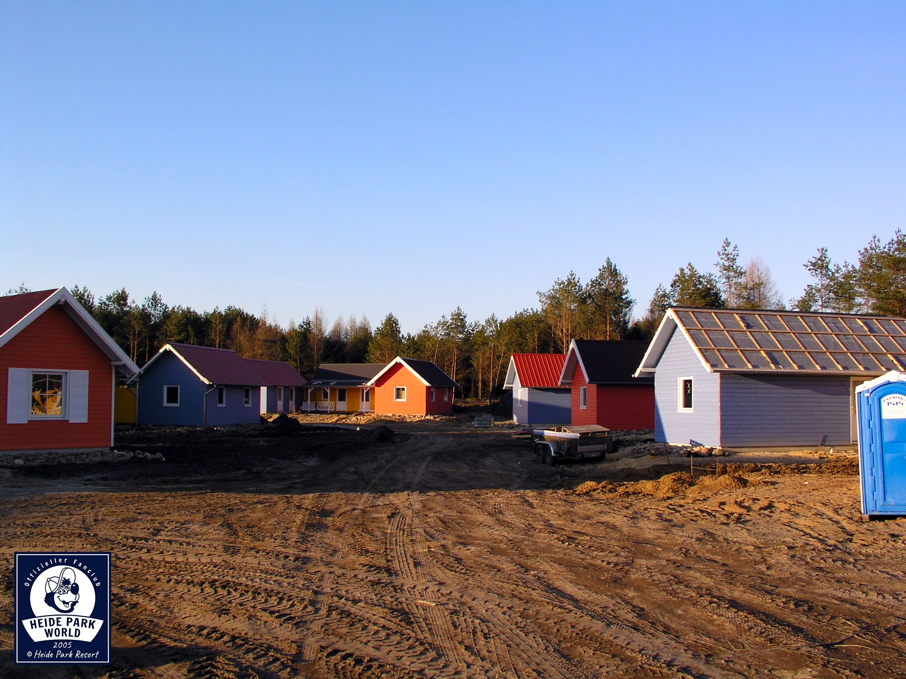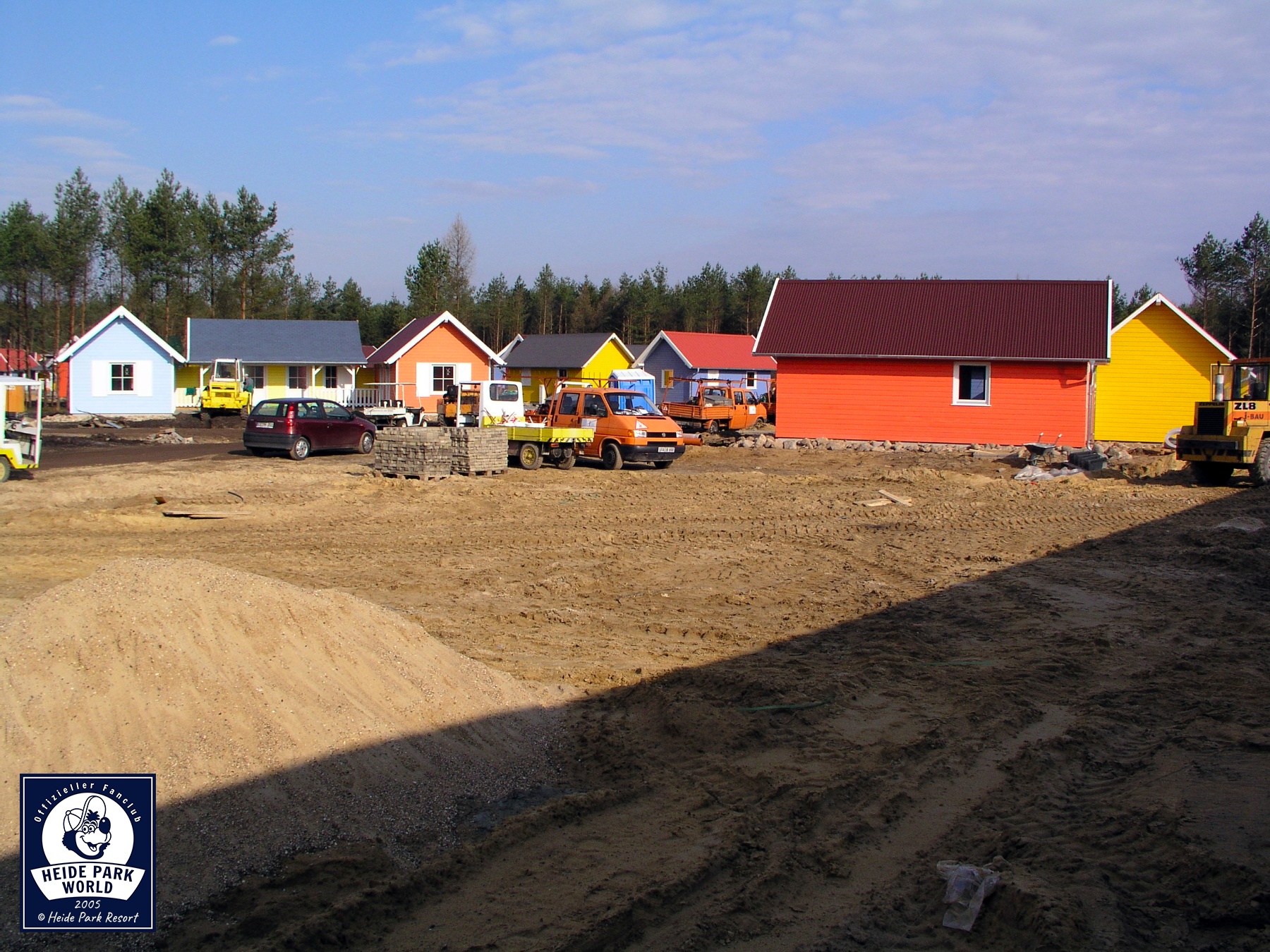 21.-30. März 2005 - Sonne über der Holiday Camp Baustelle - endlich! Die 66 bunten Holzhütten des Camps strahlen hell und versprühen schon fast einen Hauch von Urlaub.