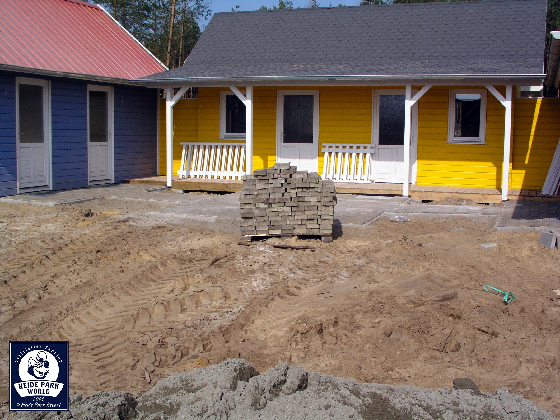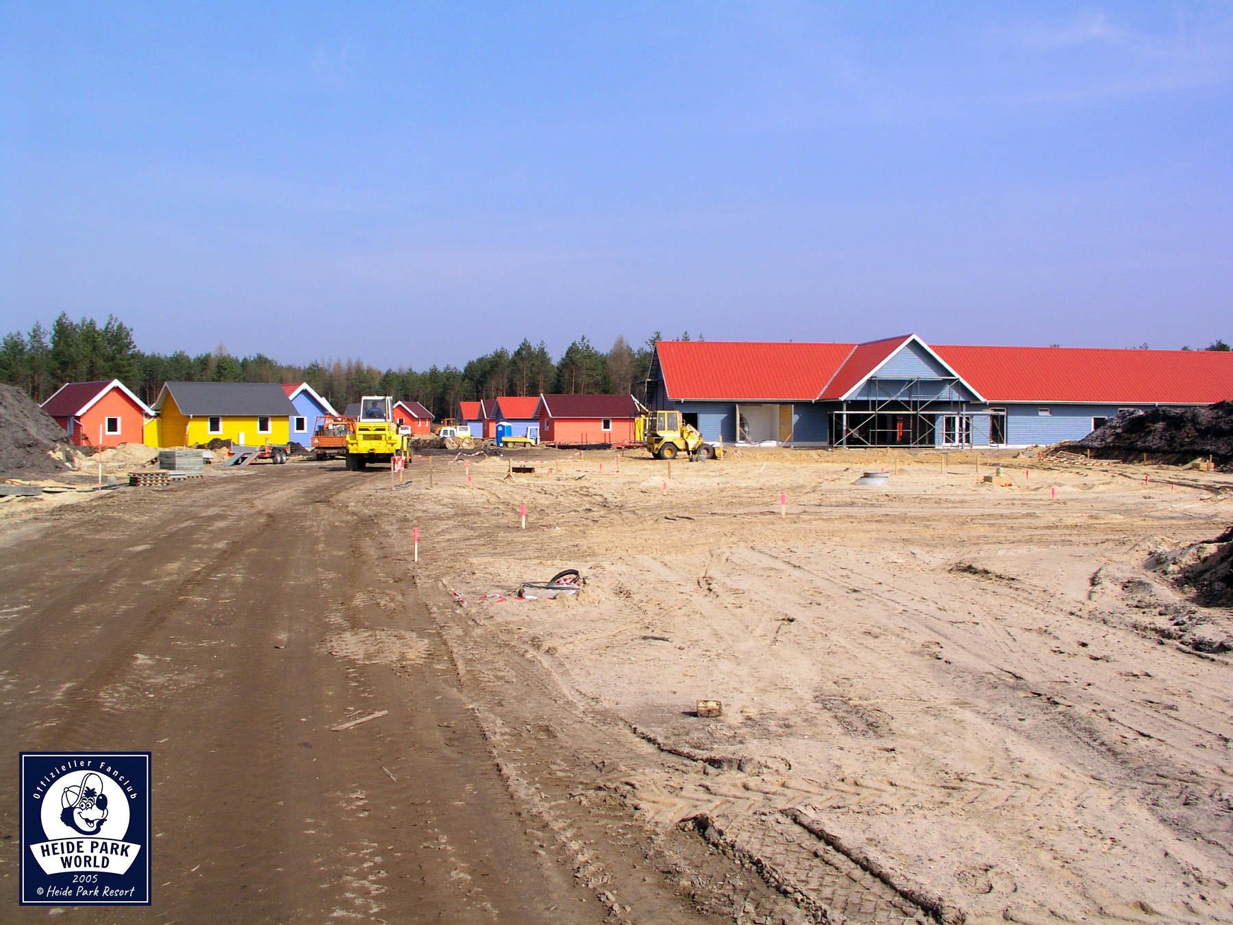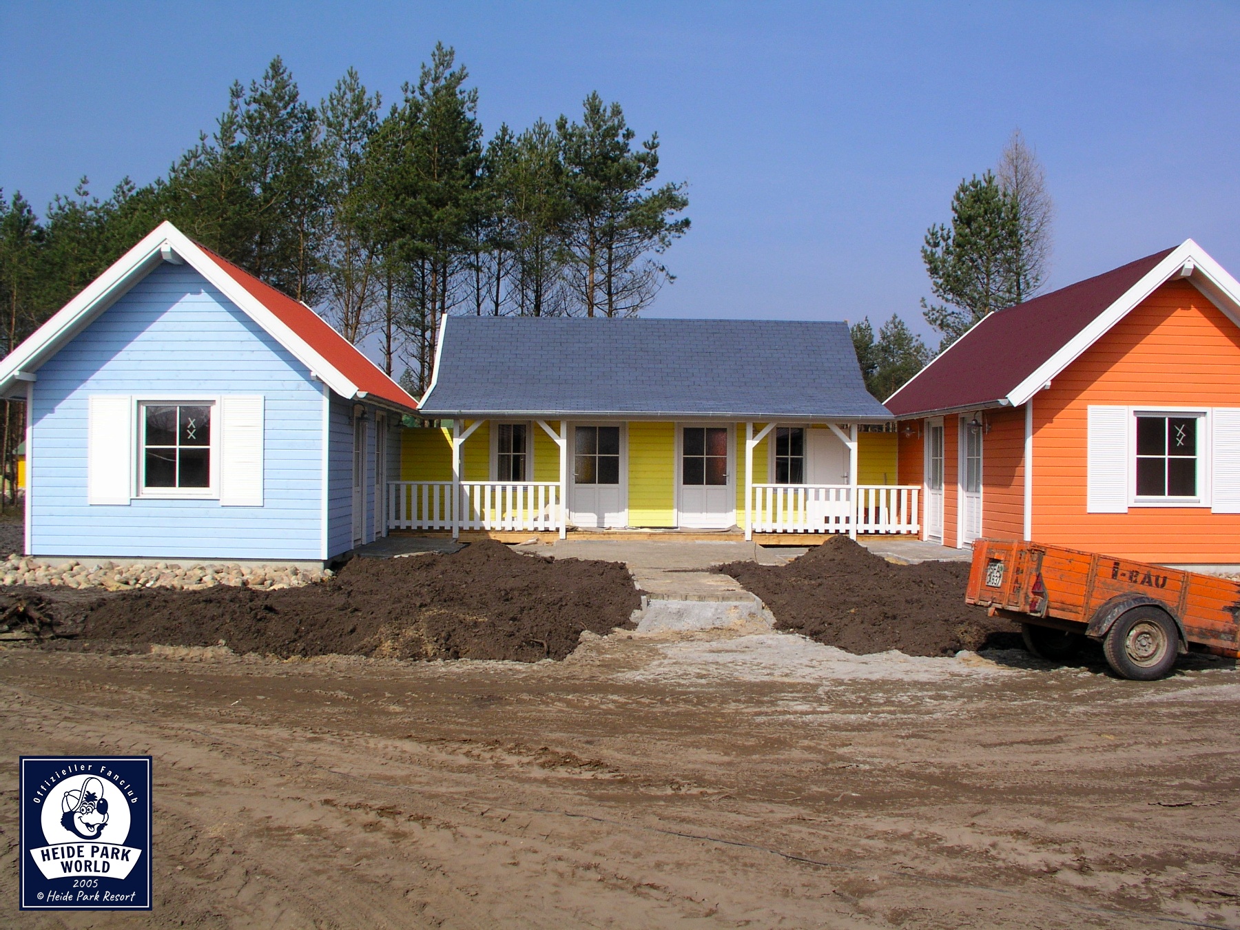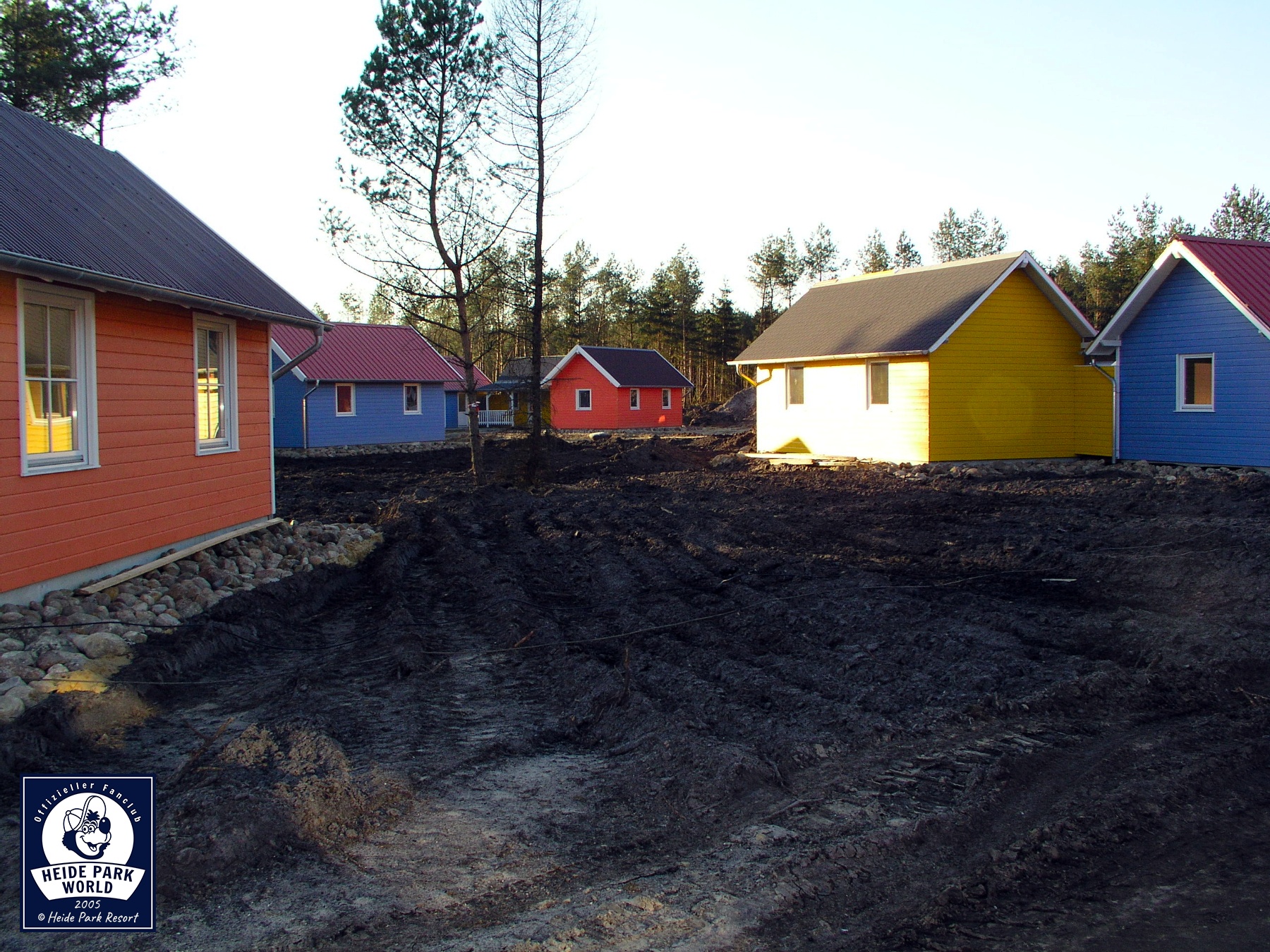 21.-30. März 2005 - Sonne über der Holiday Camp Baustelle - endlich! Die 66 bunten Holzhütten des Camps strahlen hell und versprühen schon fast einen Hauch von Urlaub.