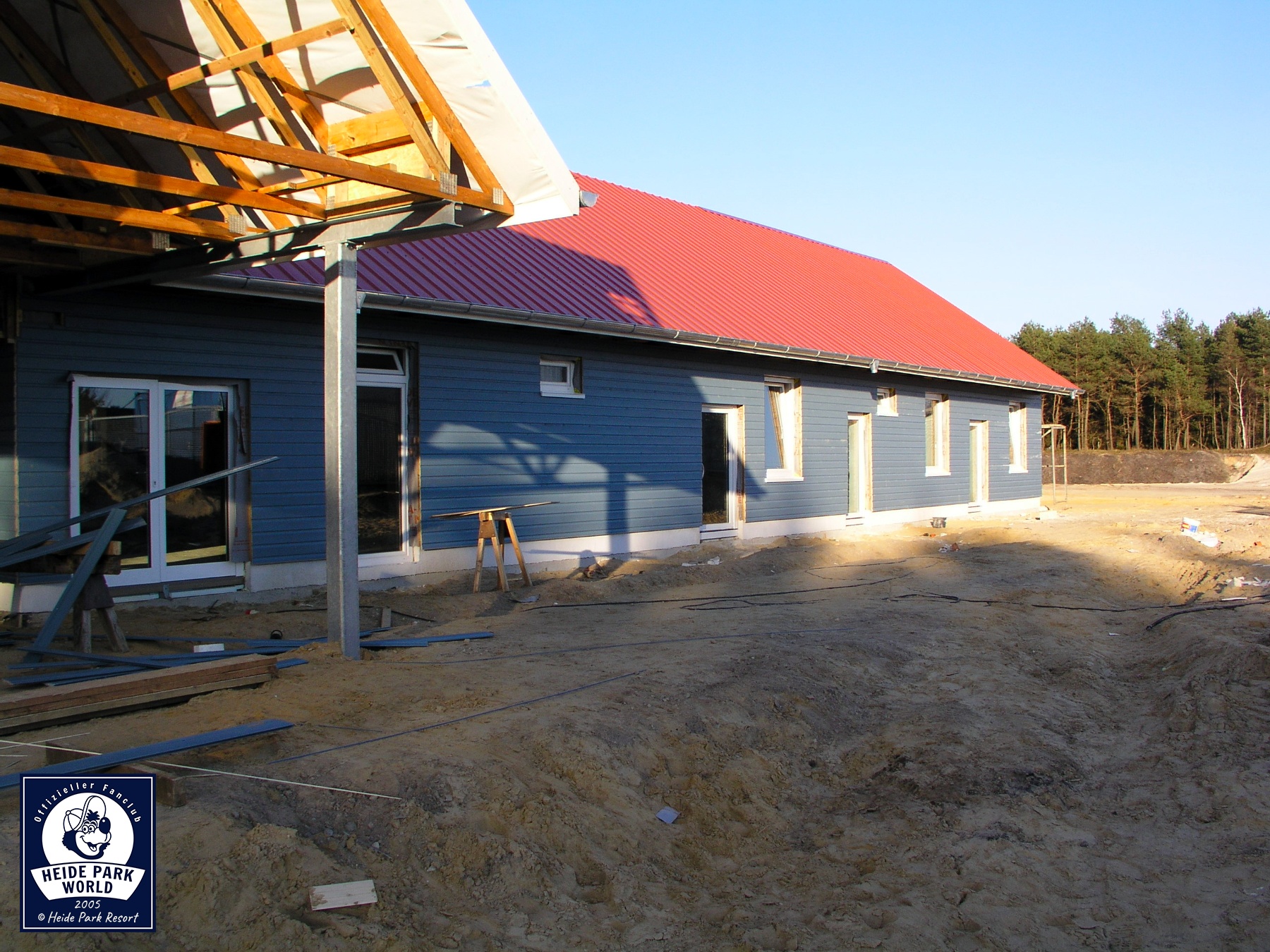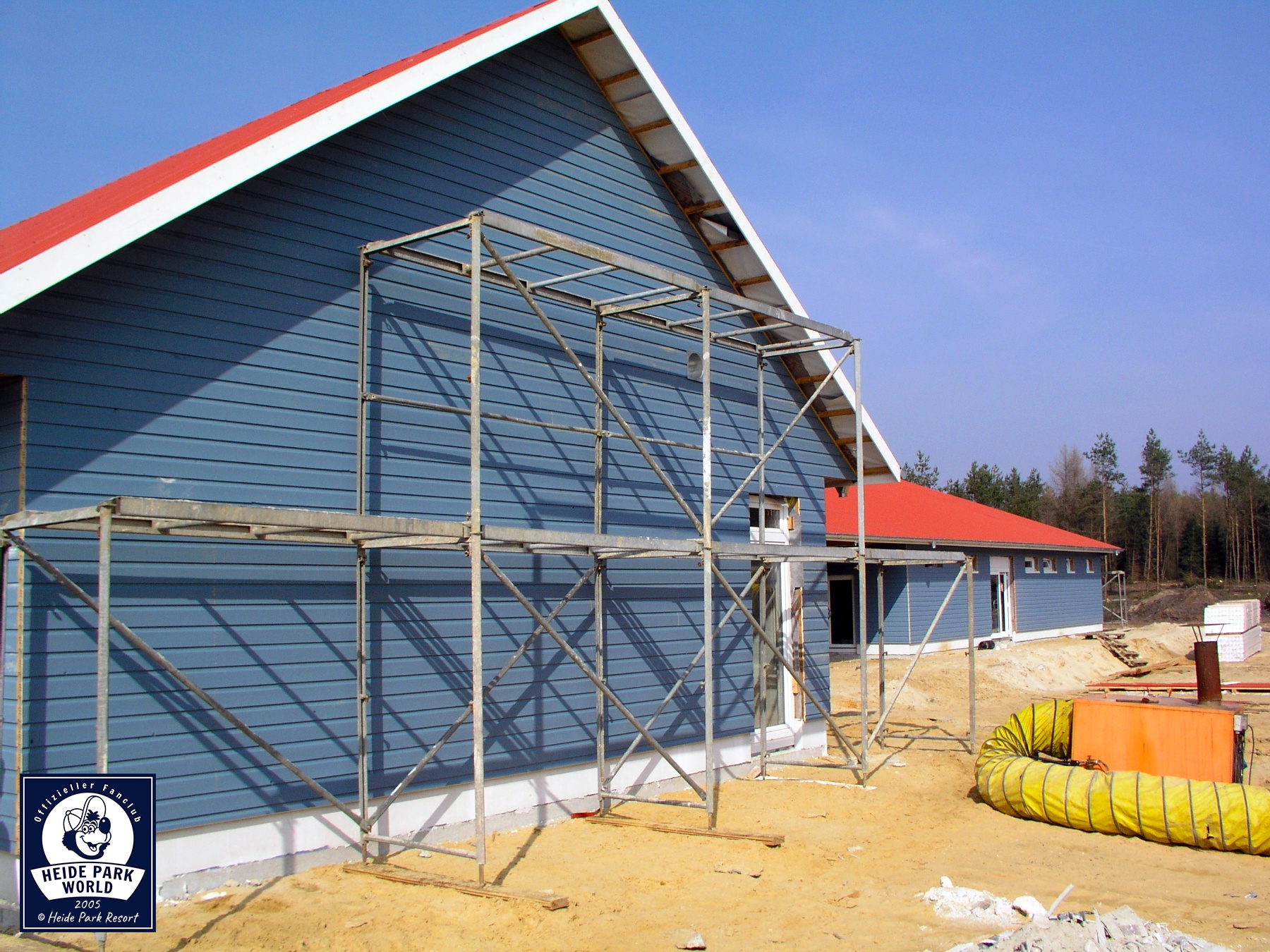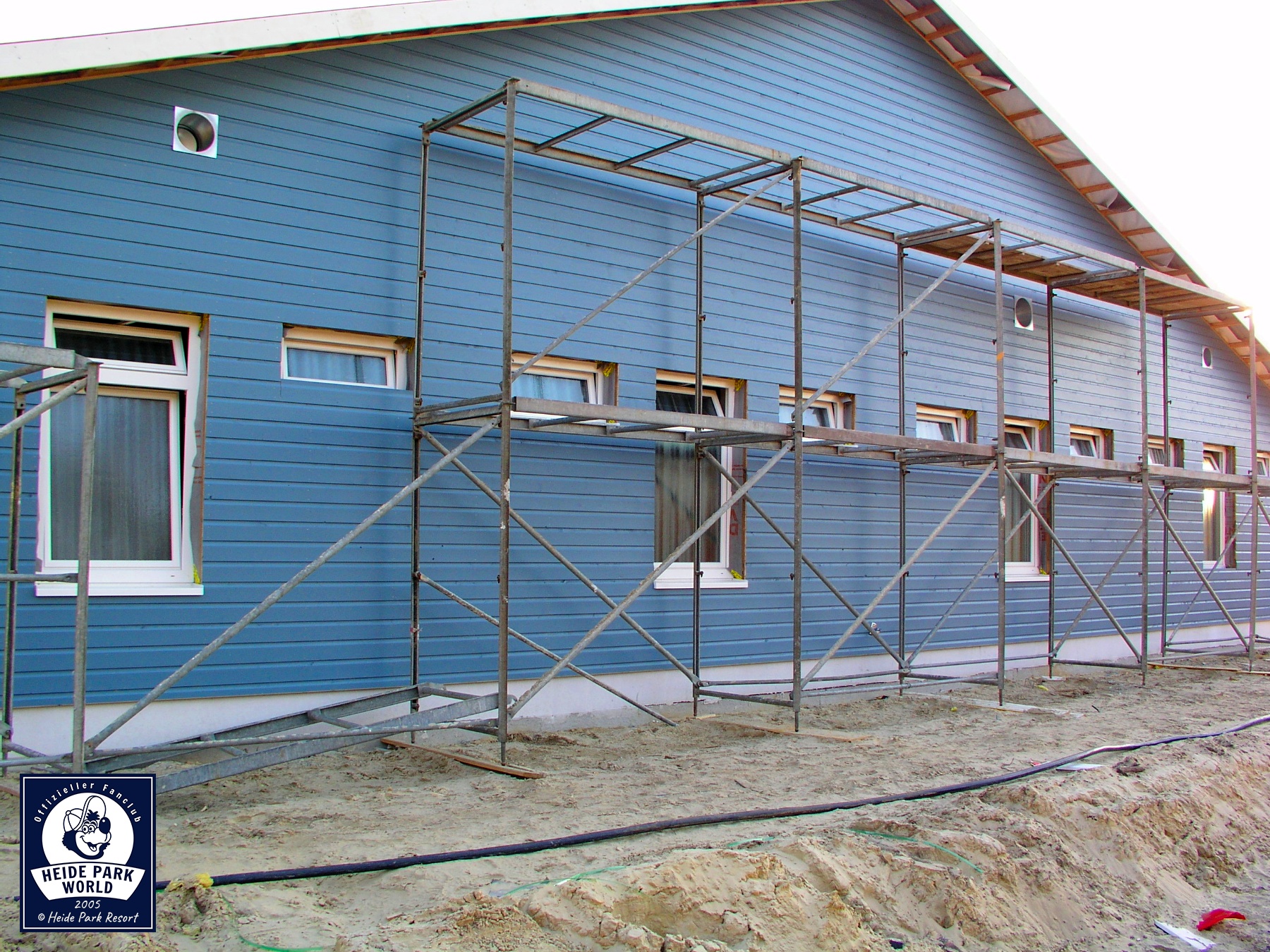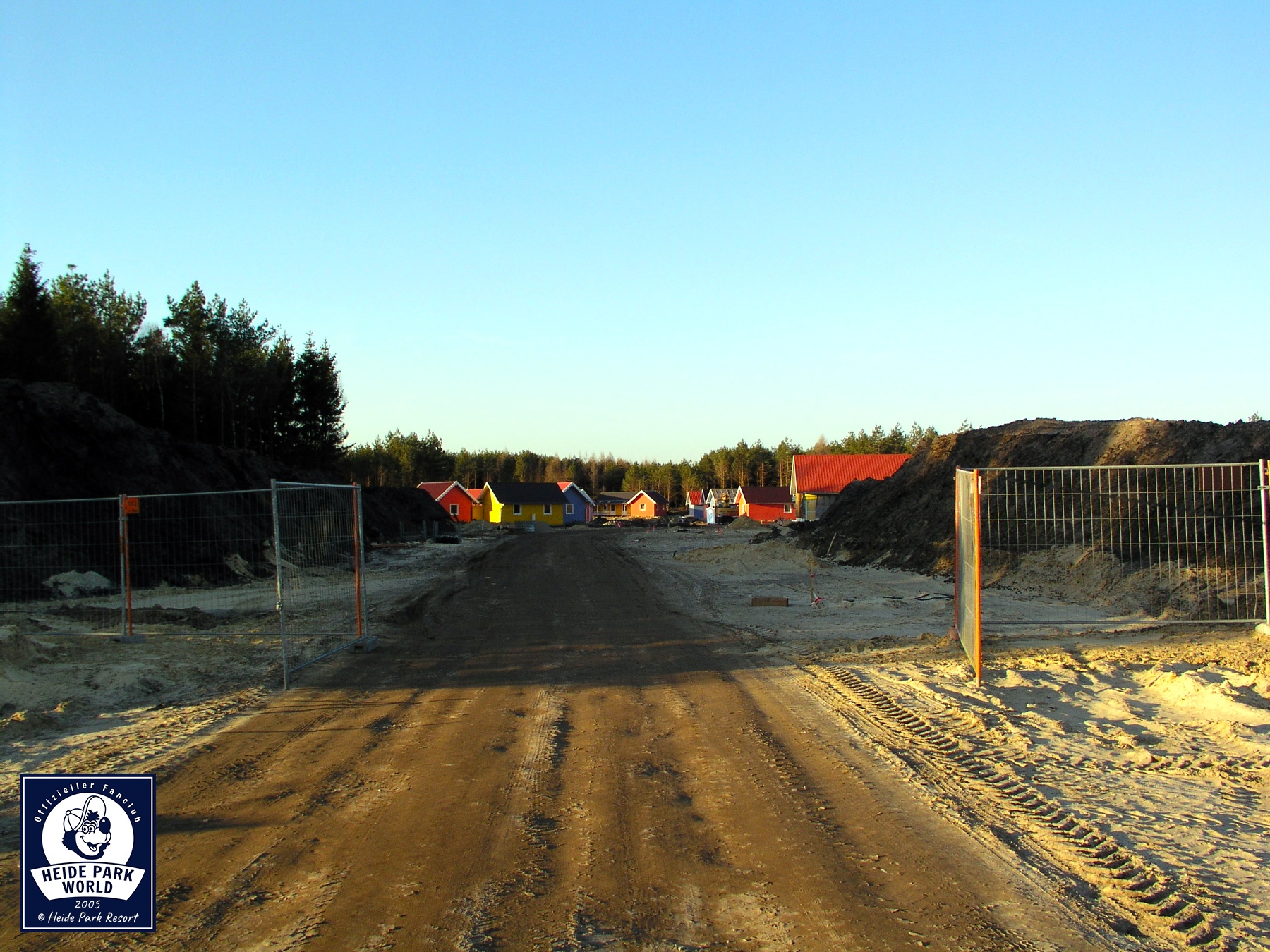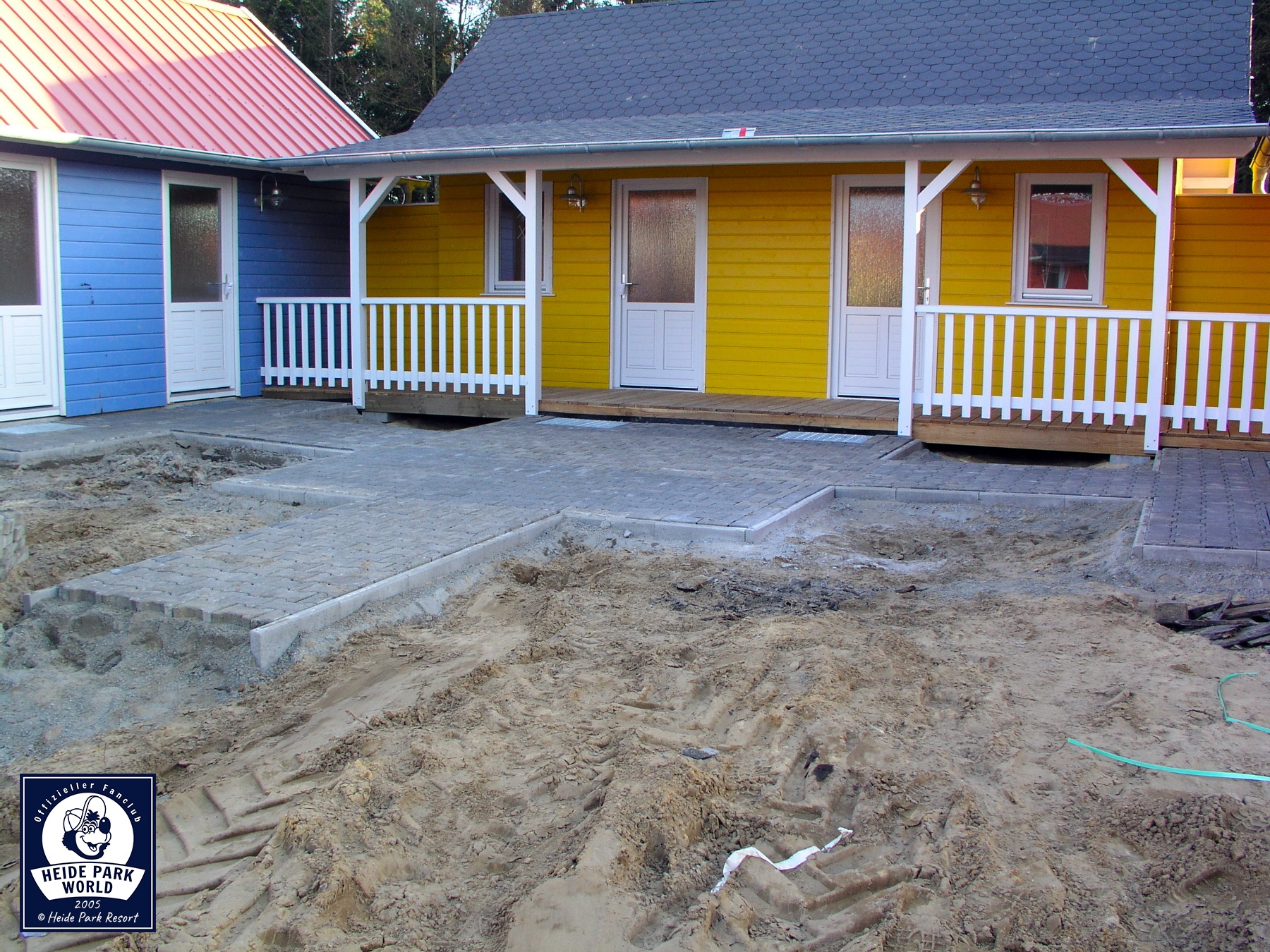 21.-30. März 2005 - Sonne über der Holiday Camp Baustelle - endlich! Die 66 bunten Holzhütten des Camps strahlen hell und versprühen schon fast einen Hauch von Urlaub.