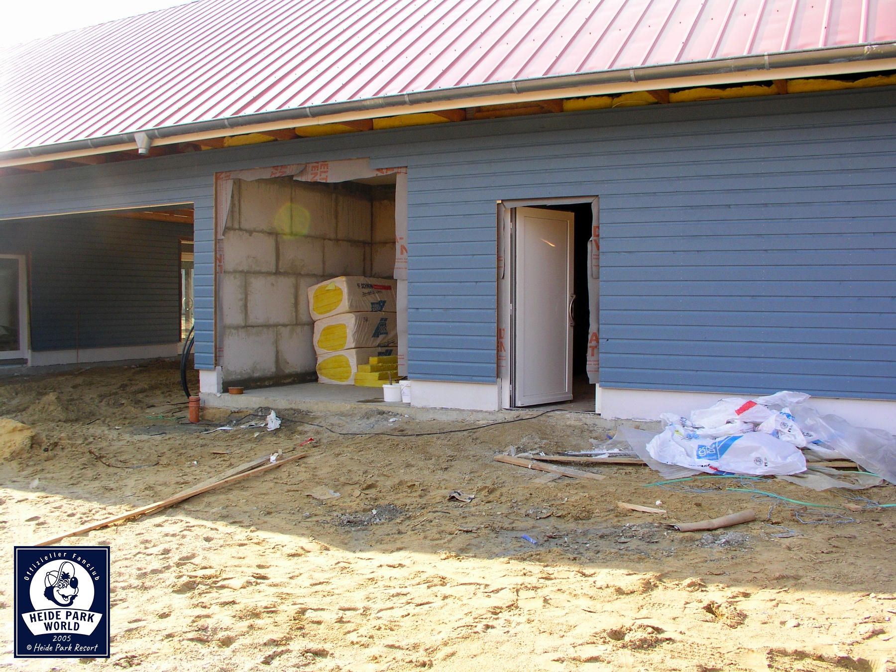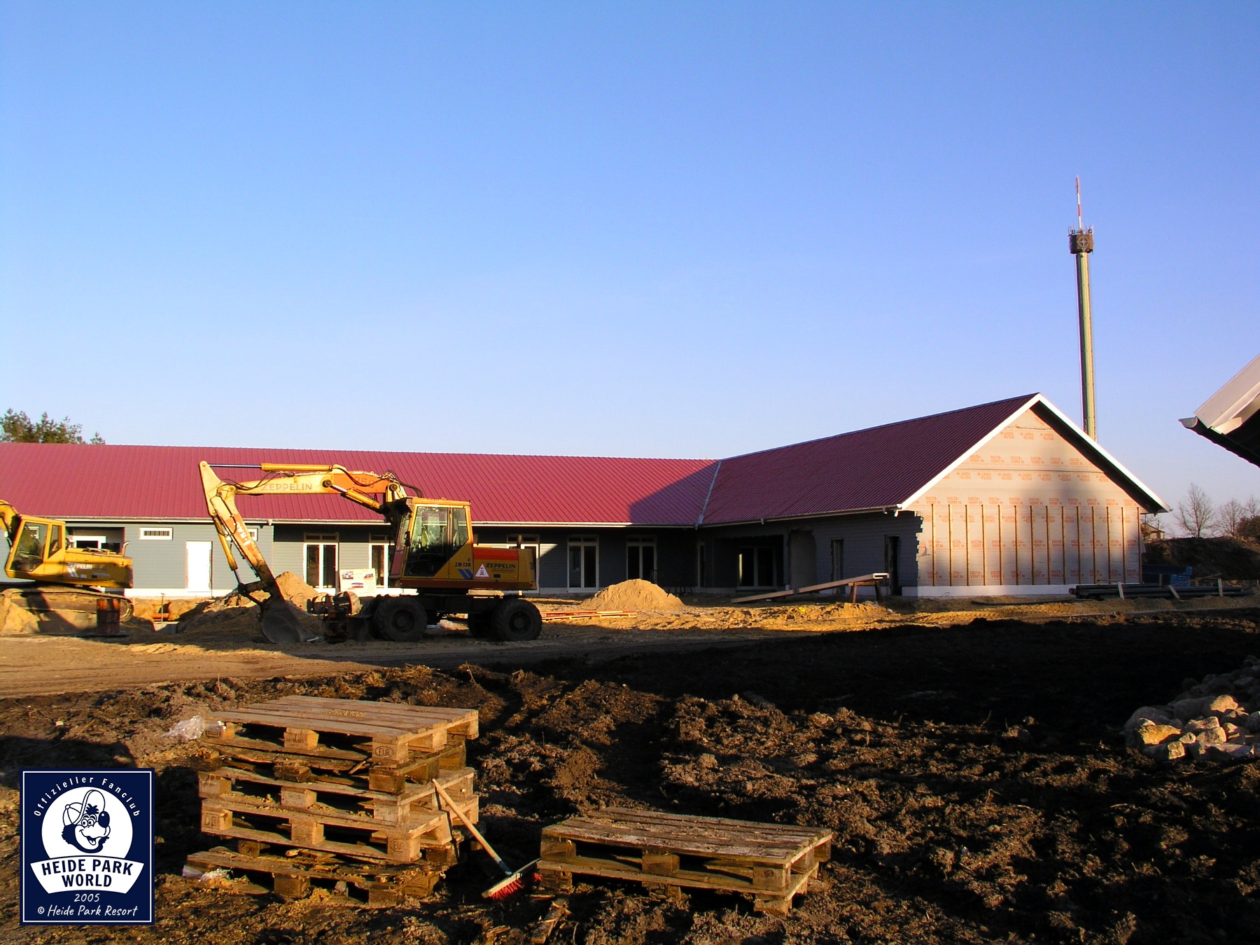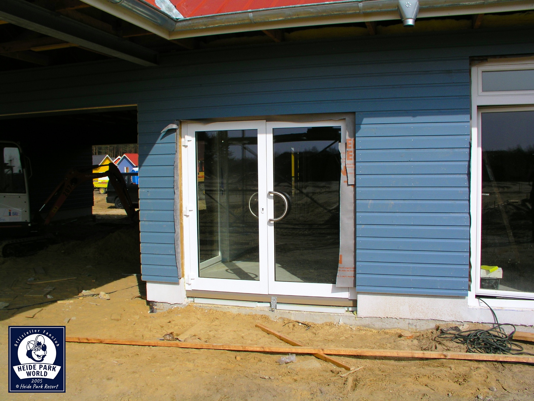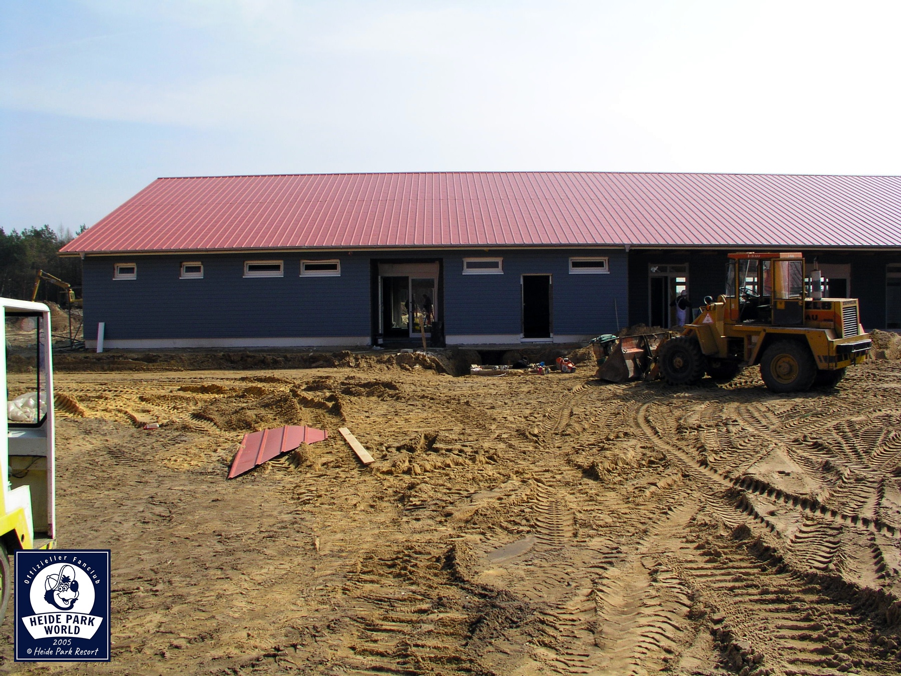 21.-30. März 2005 - Sonne über der Holiday Camp Baustelle - endlich! Die 66 bunten Holzhütten des Camps strahlen hell und versprühen schon fast einen Hauch von Urlaub.