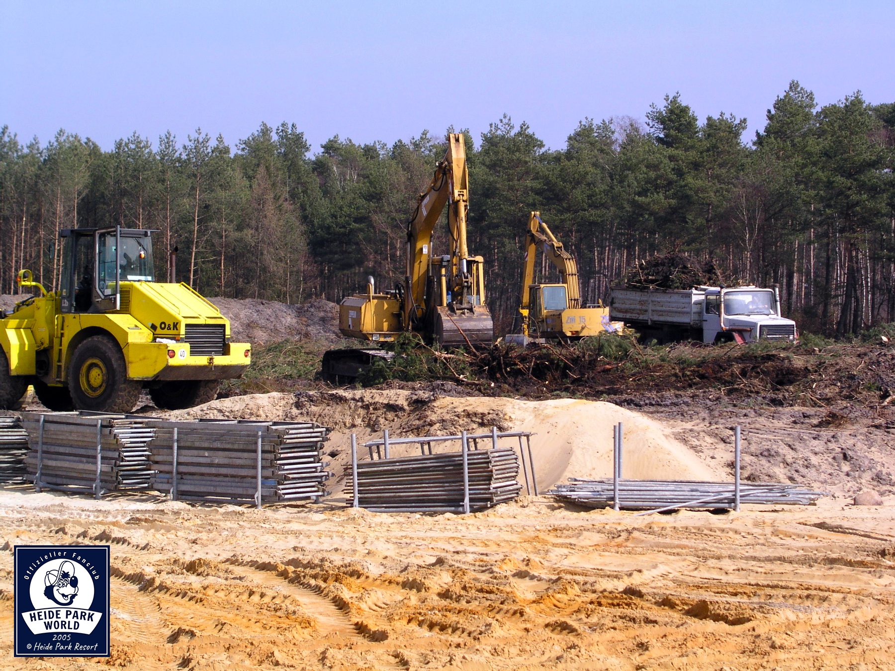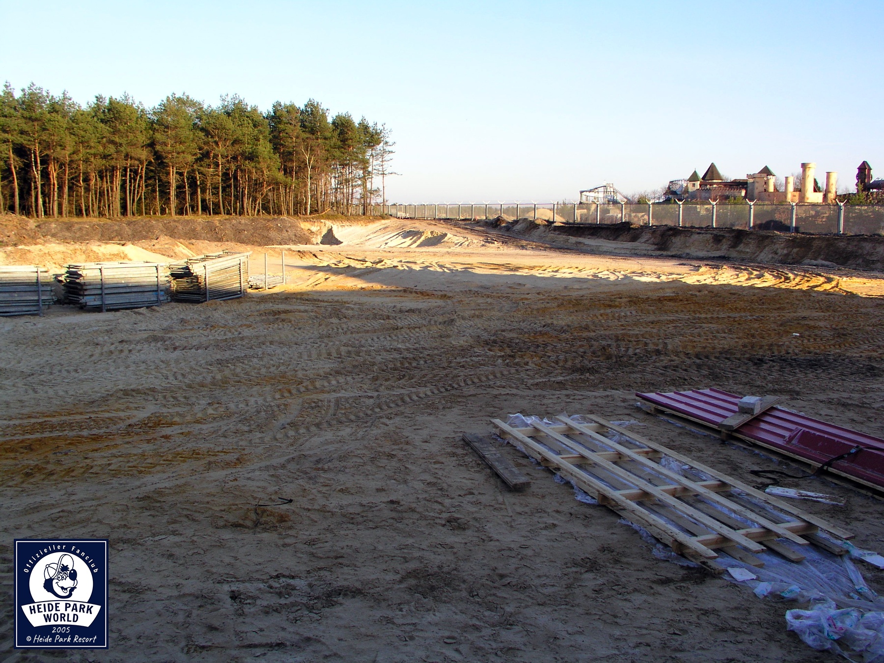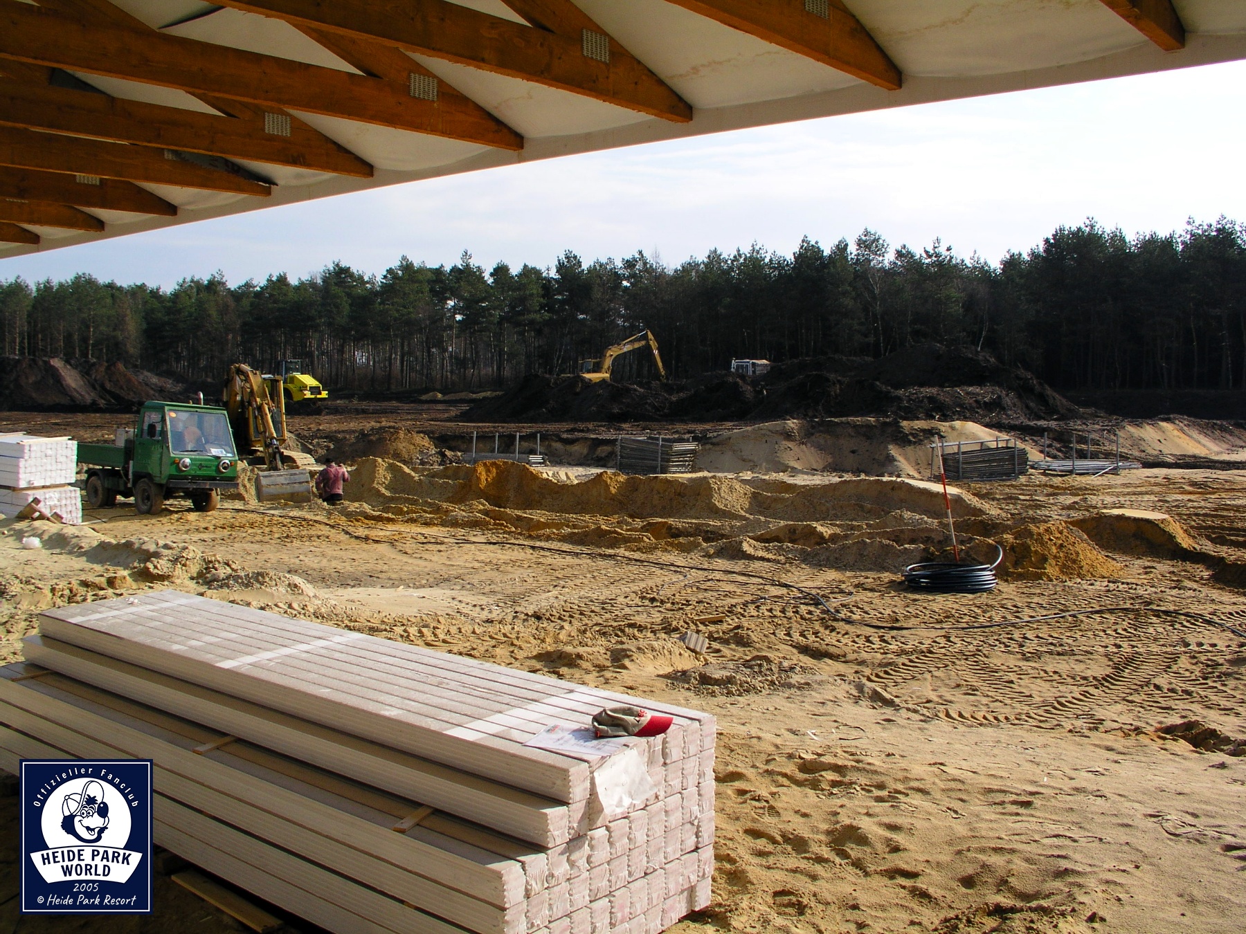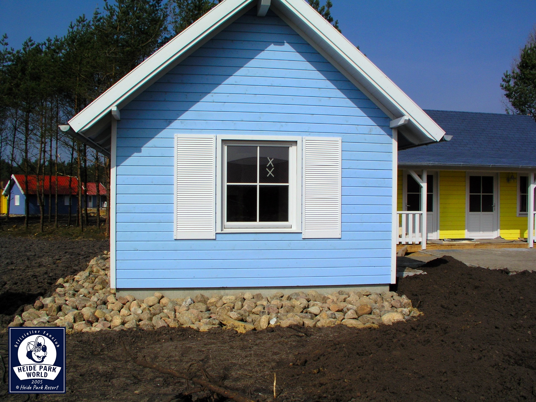 21.-30. März 2005 - Sonne über der Holiday Camp Baustelle - endlich! Die 66 bunten Holzhütten des Camps strahlen hell und versprühen schon fast einen Hauch von Urlaub.