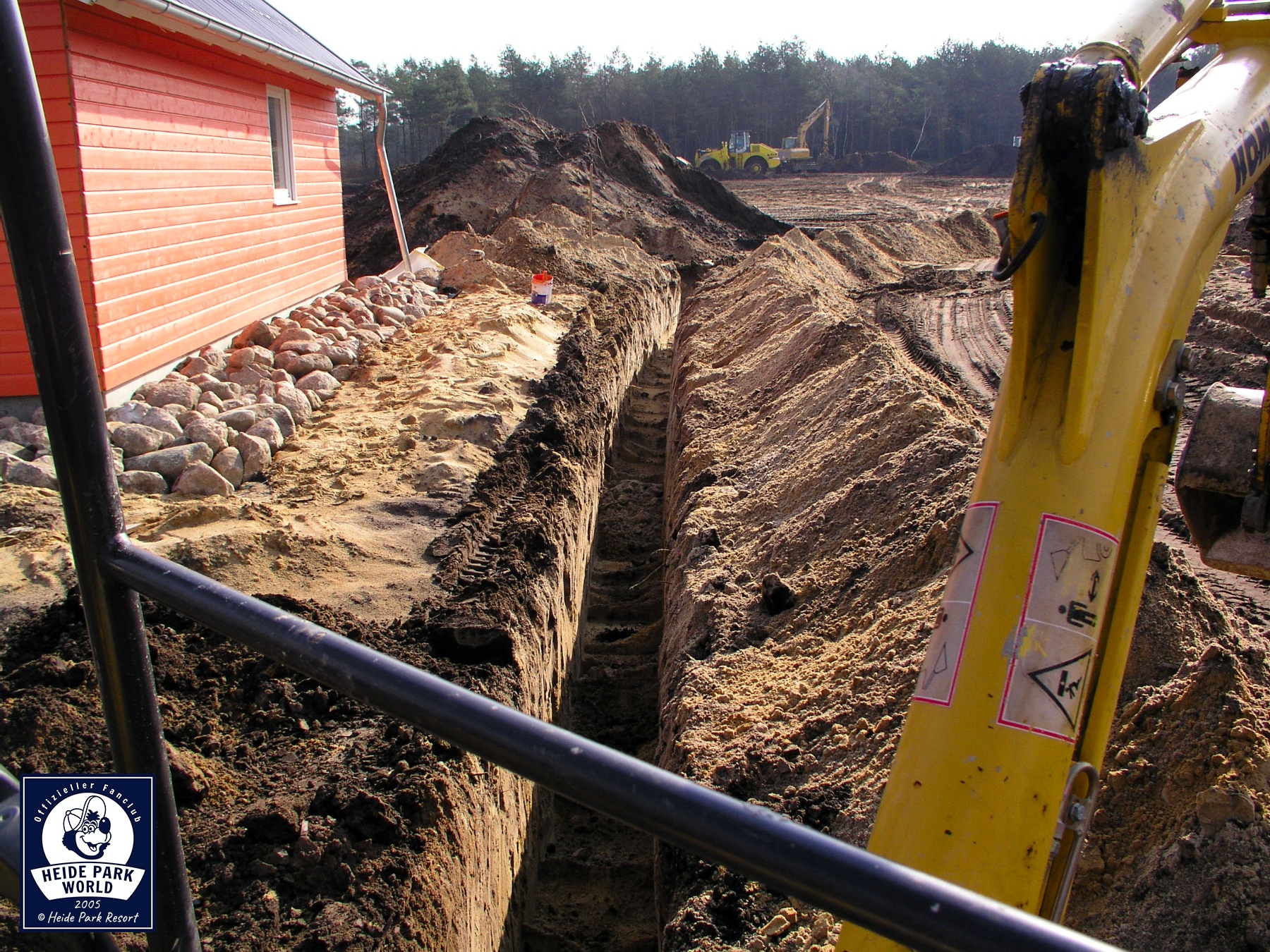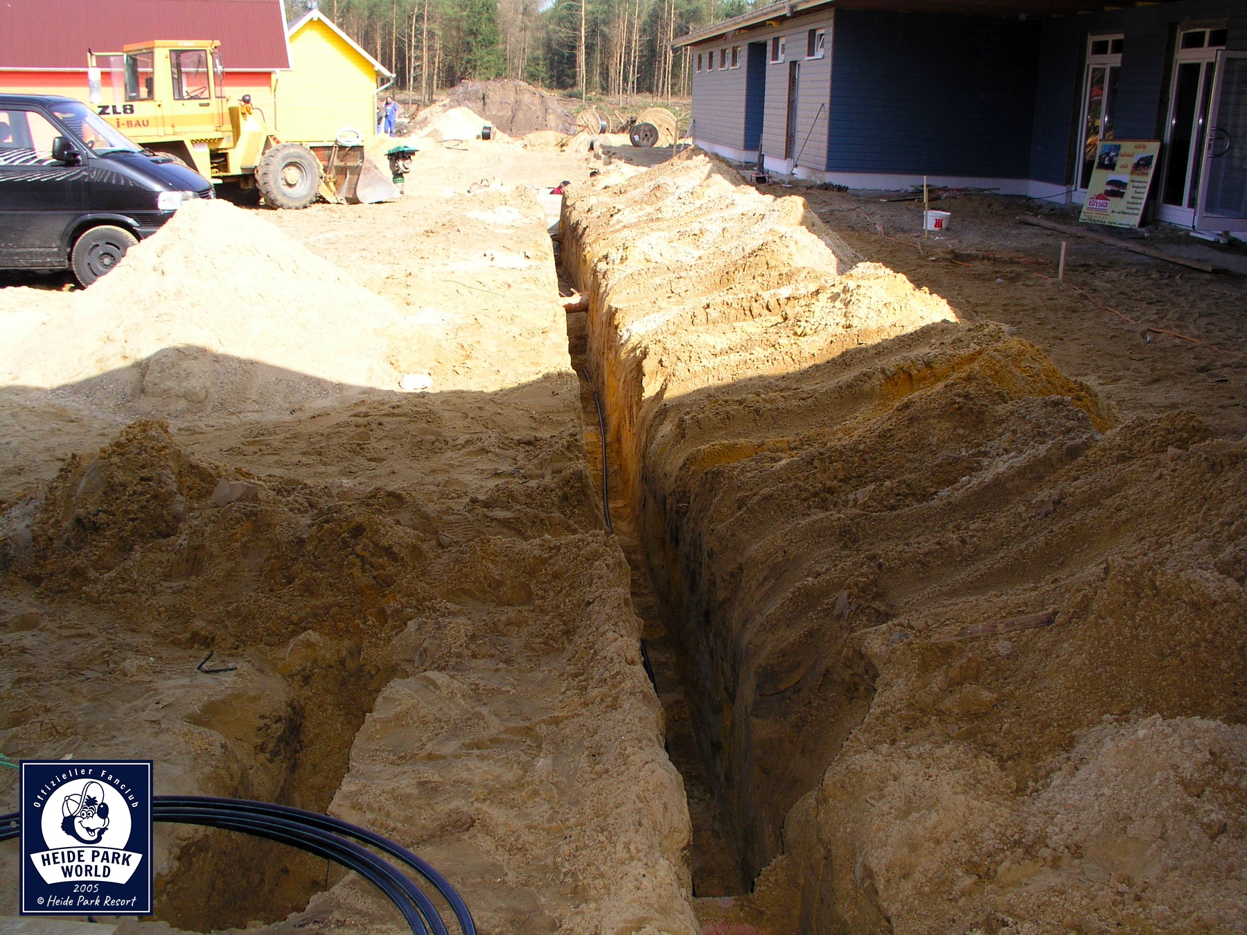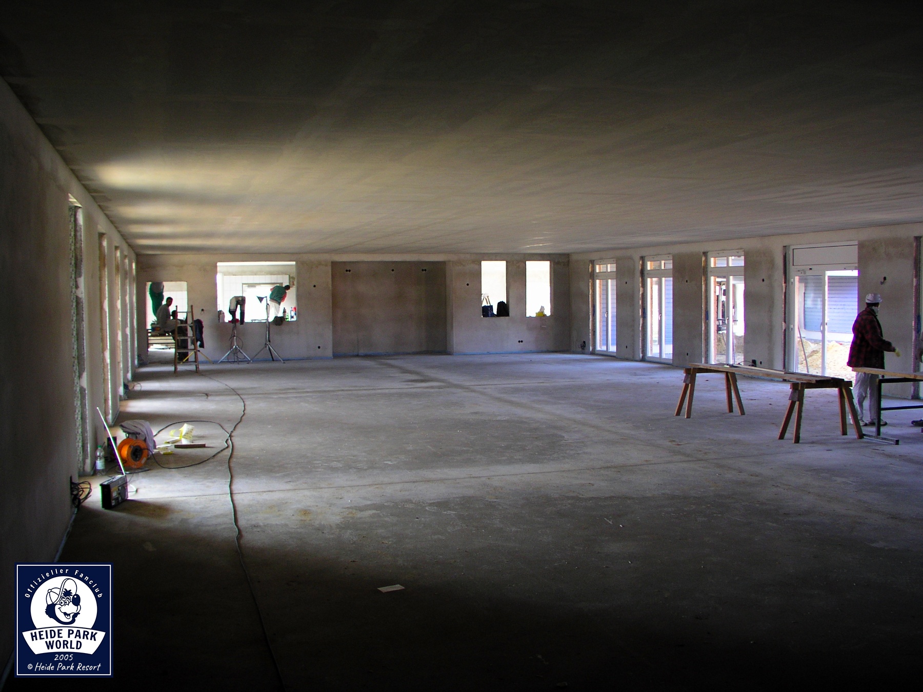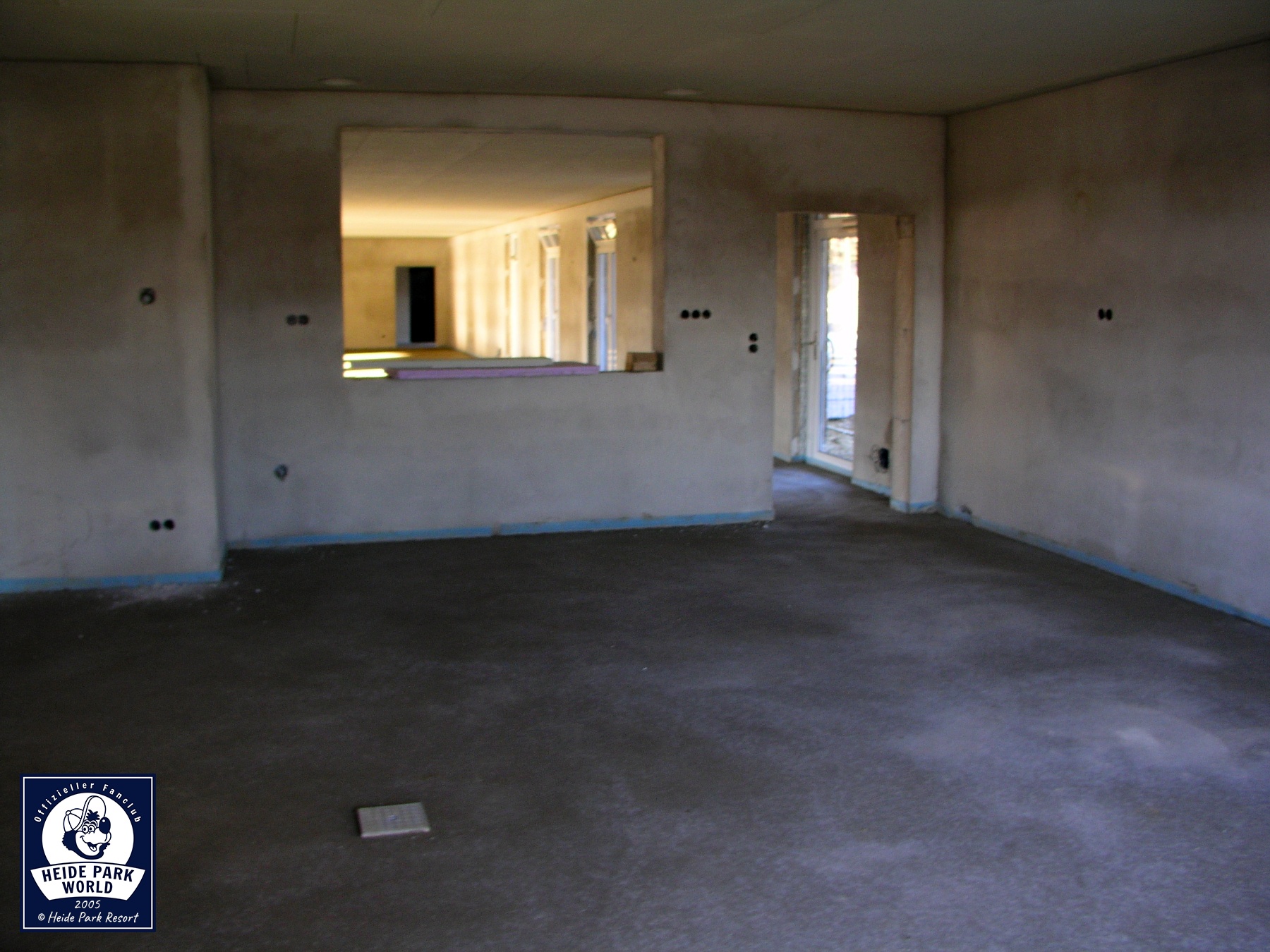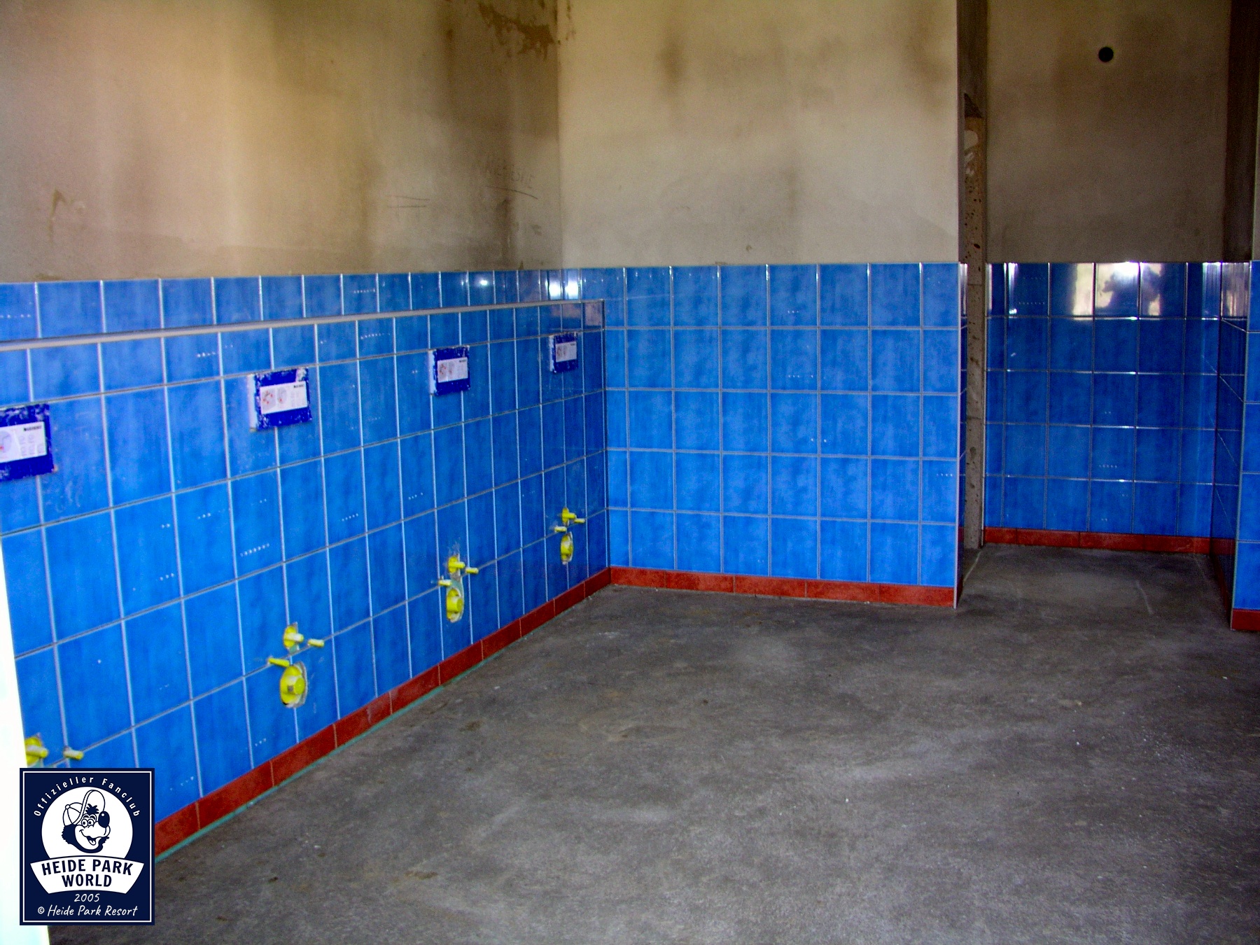 Im Inneren der Häuser wird am Urlaubsfeeling noch hart gearbeitet. Die sanitären Räume werden gefliest. Anschlüsse für Leitungen und Einrichtungen liegen bereit. Im großen Essensraum wird die Elektrik verkabelt. Im Außenbereich werden weitere Bereiche für das Volleyballfeld und den See vorbereitet.