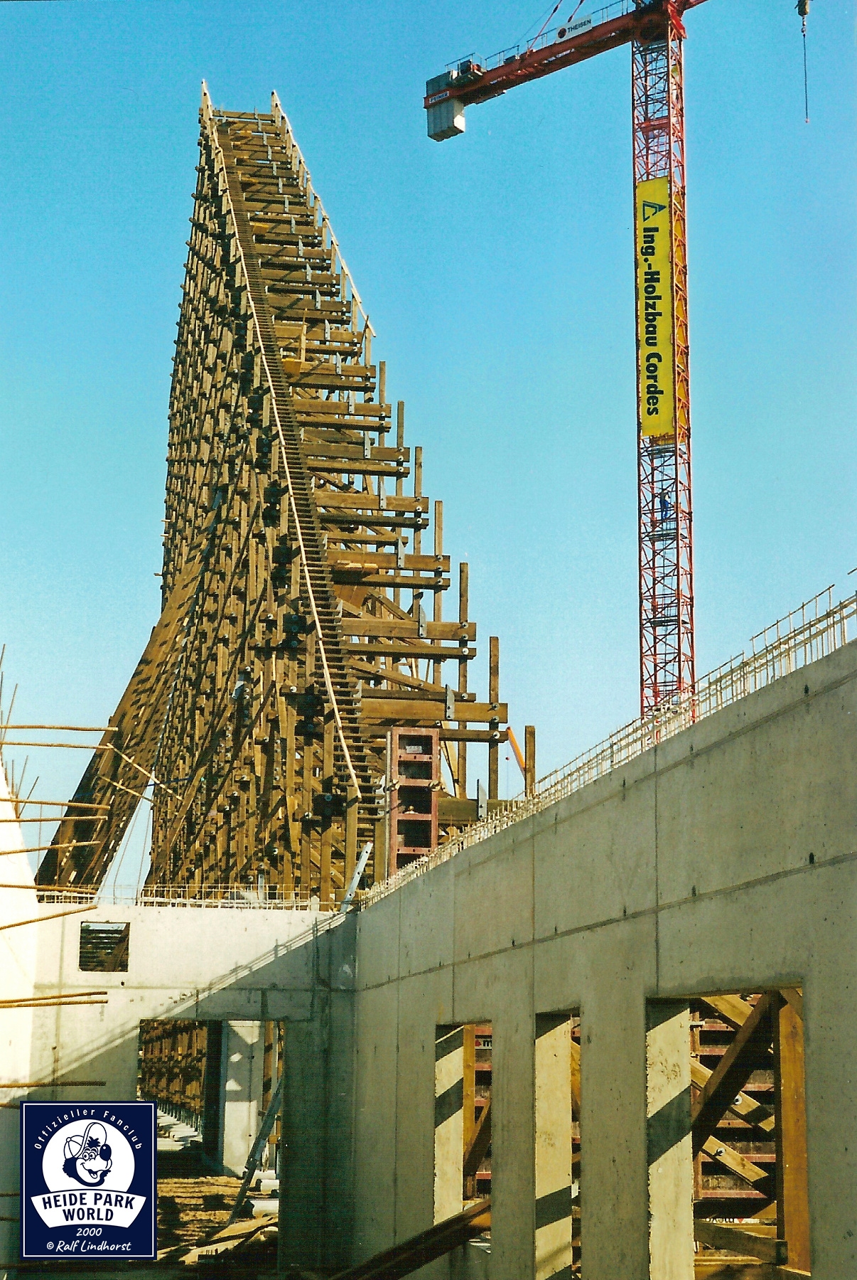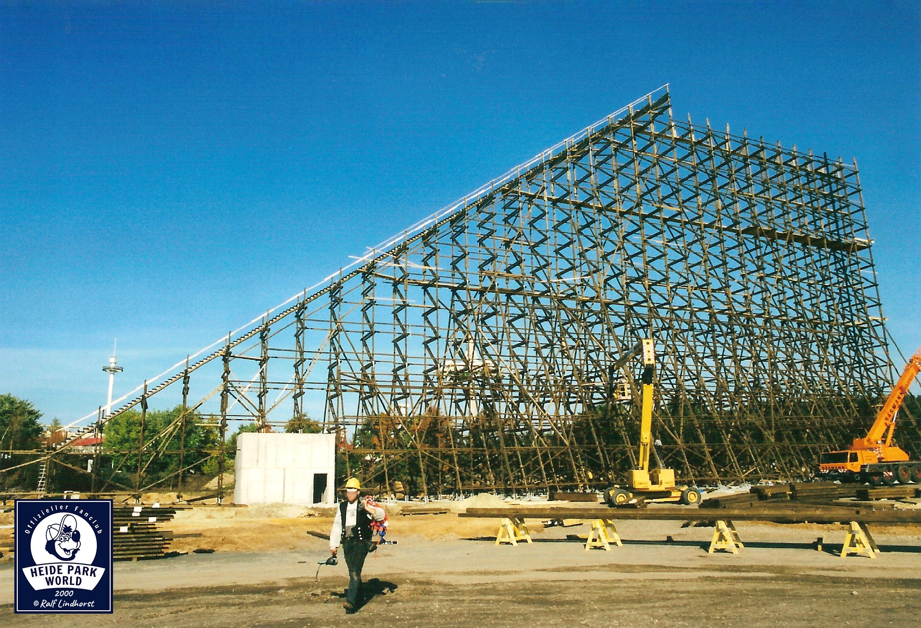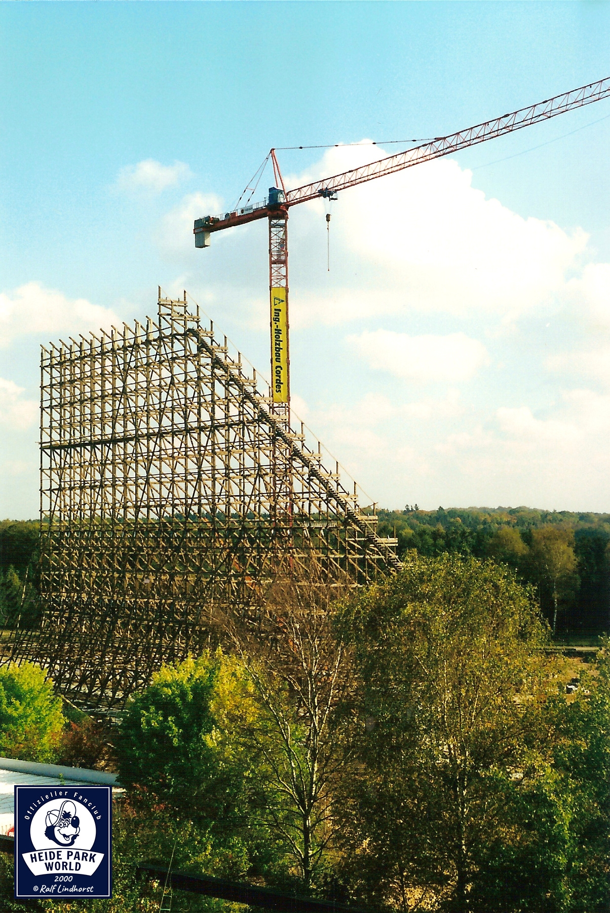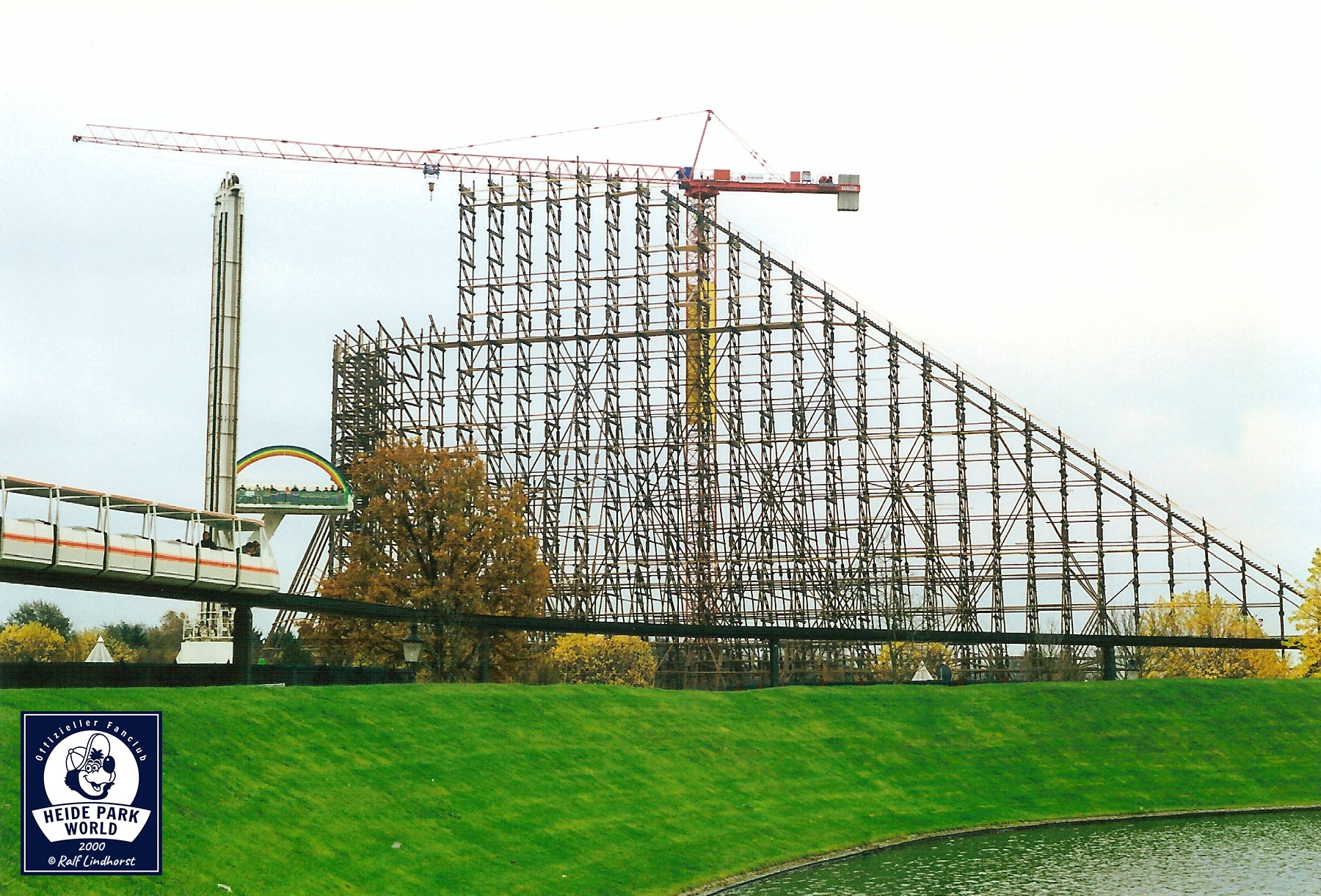 05. November 2000 - Bei bestem Herbstwetter geht's auf die Baustelle. Der Lift wächst und wächst. Bald wird er seine maximale Höhe erreicht haben. Im Park selbst bietet sich den Besuchern ein atemberaubendes Bild. Colossos wird das Erscheinungsbild des Parks nachhaltig verändern.