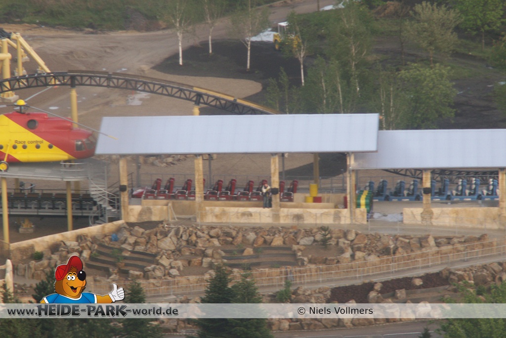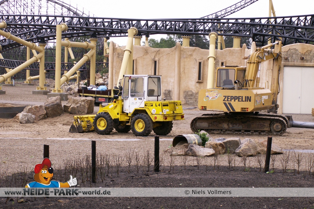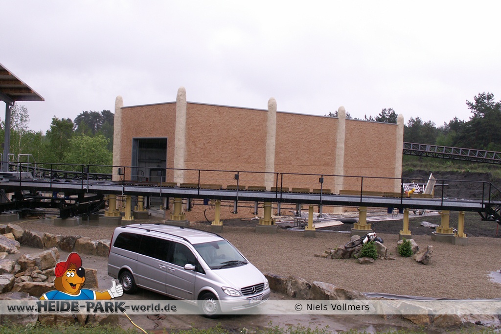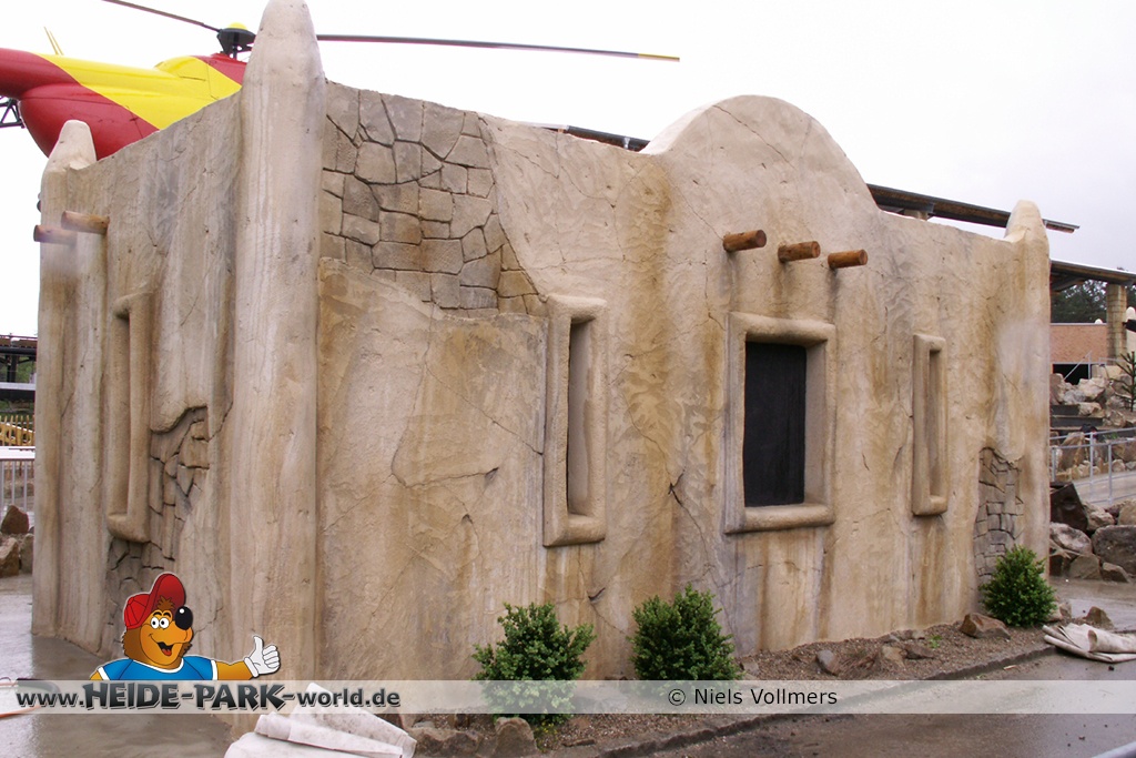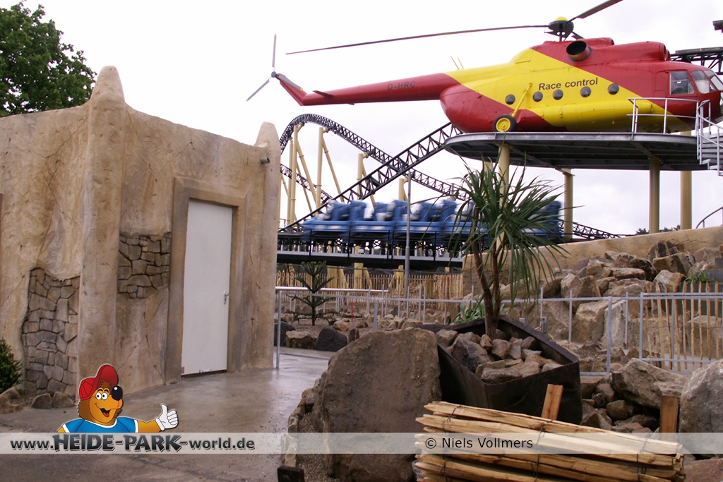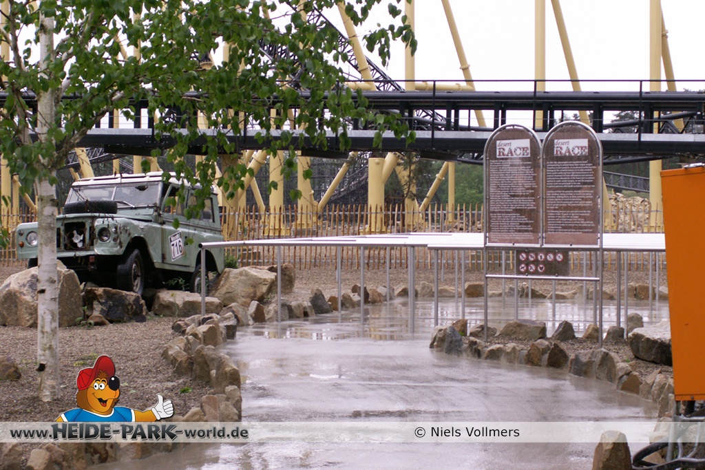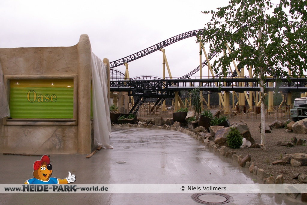 11. Mai 2007 - Nur noch wenige Tage bis zur Eröffnung von Desert Race. Heute wurden zahlreiche Testfahrten absolviert und die zukünftigen Mitarbeiter eingewiesen. Außerdem wurde noch an der Thematisierung gearbeitet.