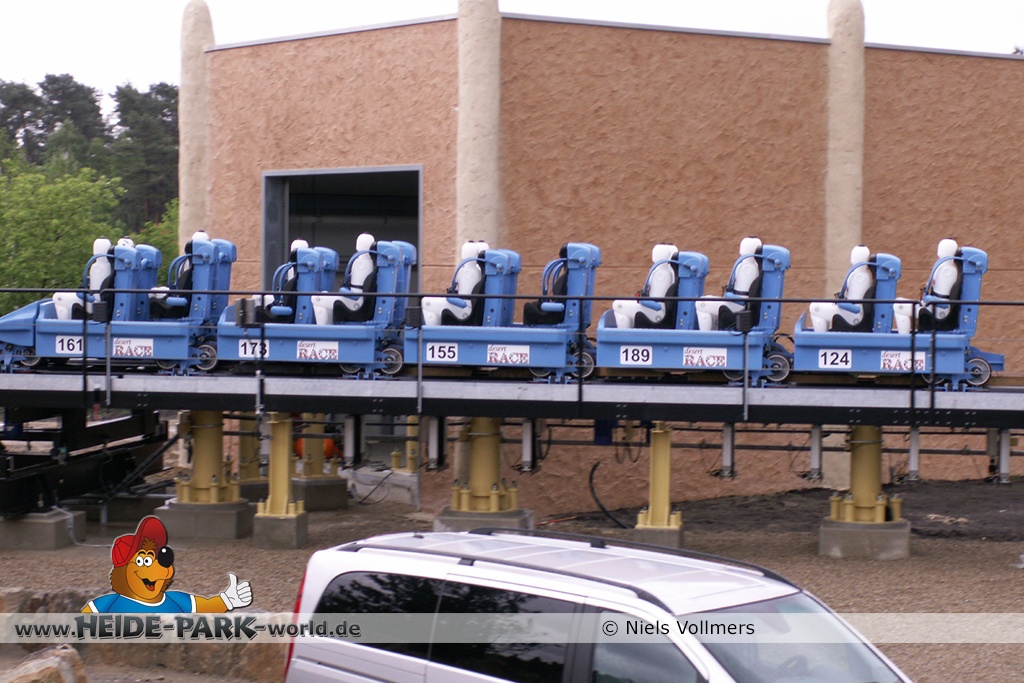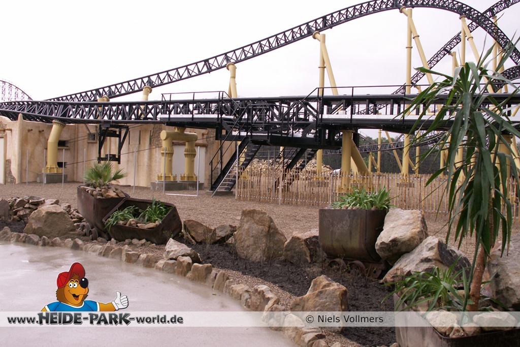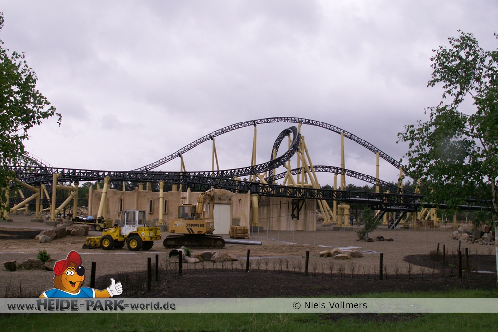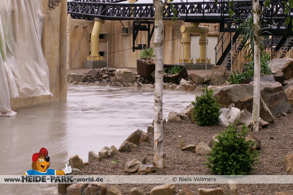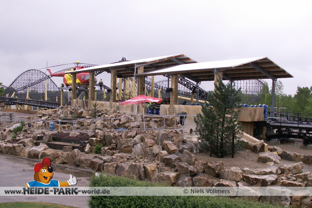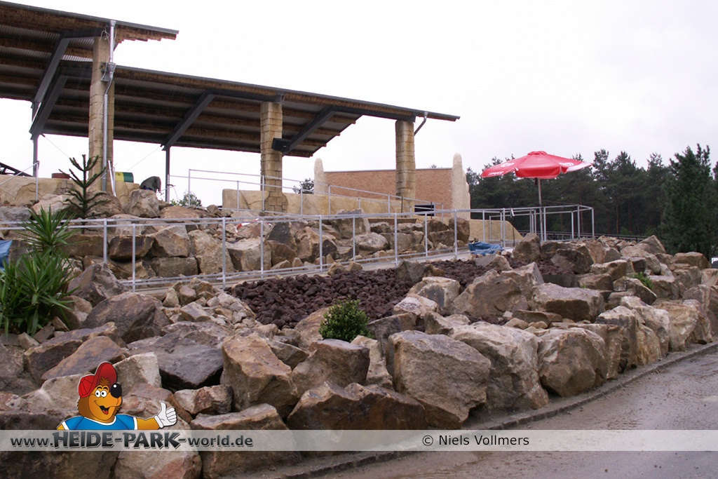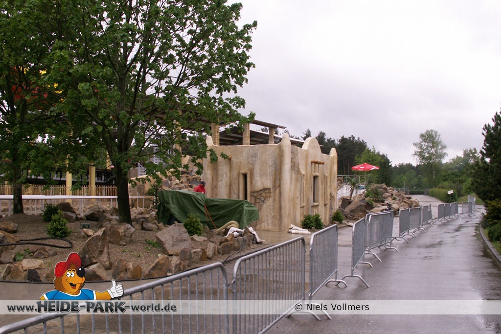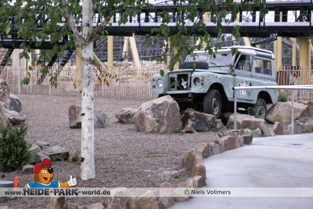 11. Mai 2007 - Nur noch wenige Tage bis zur Eröffnung von Desert Race. Heute wurden zahlreiche Testfahrten absolviert und die zukünftigen Mitarbeiter eingewiesen. Außerdem wurde noch an der Thematisierung gearbeitet.