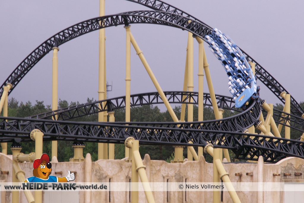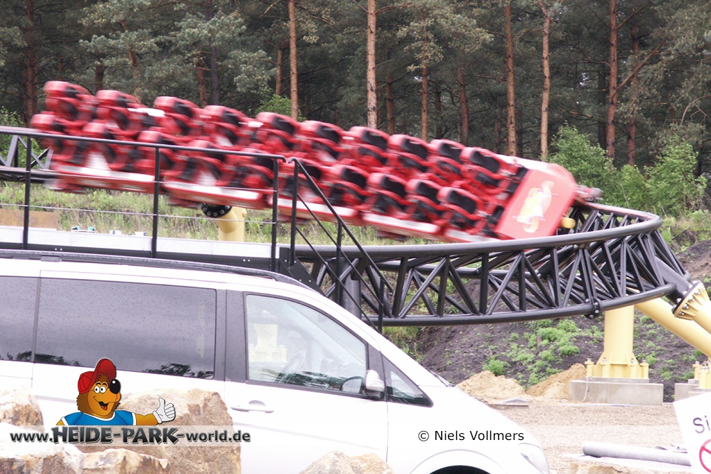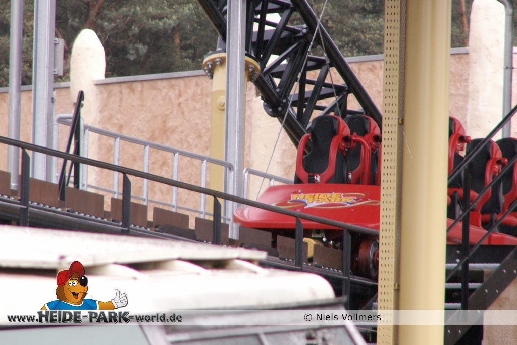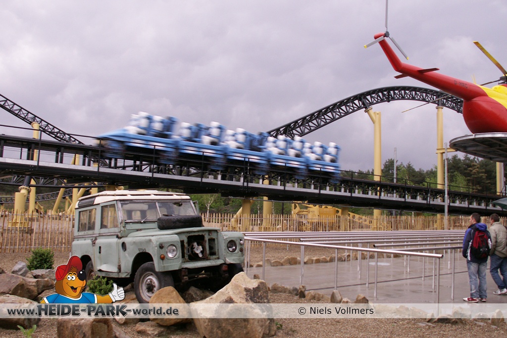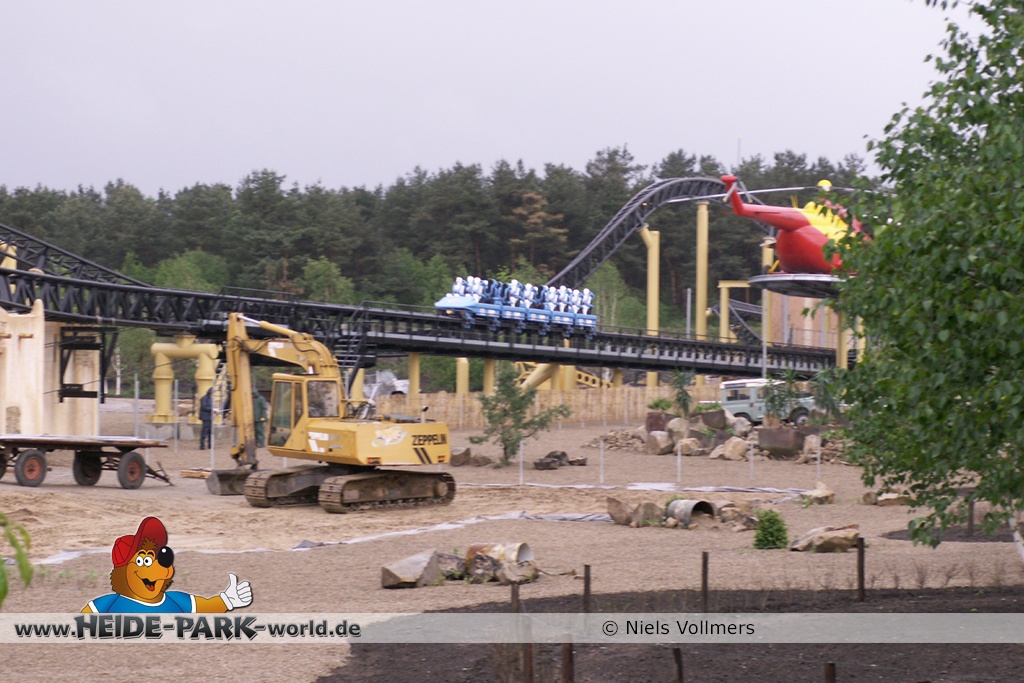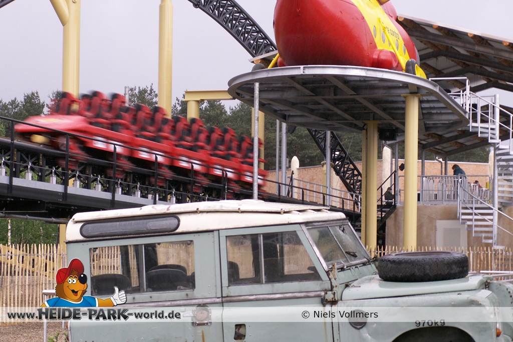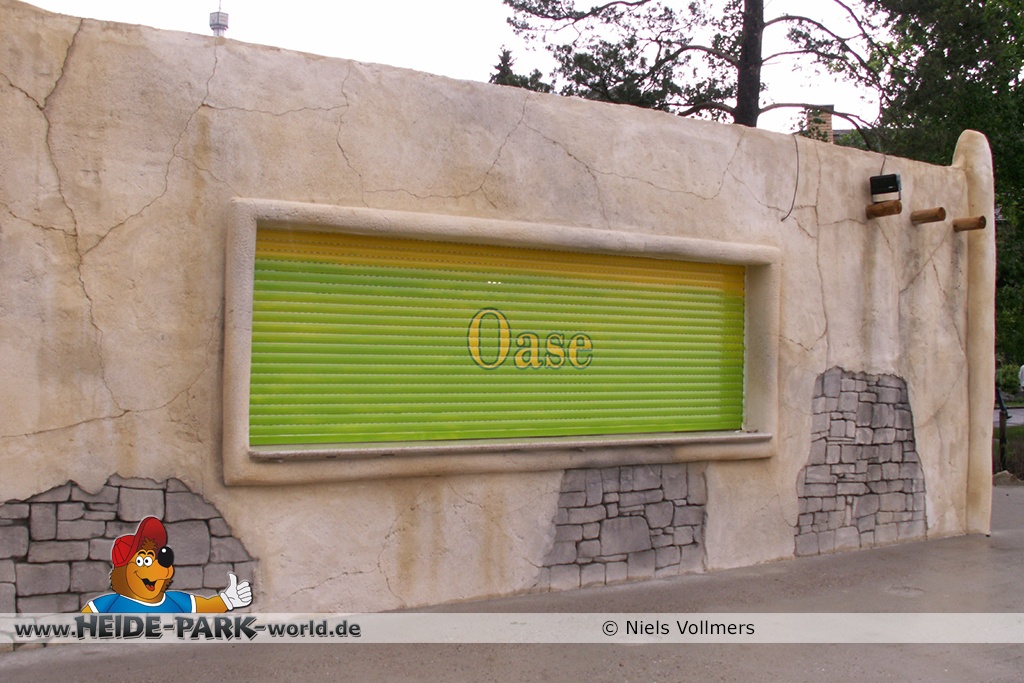 11. Mai 2007 - Nur noch wenige Tage bis zur Eröffnung von Desert Race. Heute wurden zahlreiche Testfahrten absolviert und die zukünftigen Mitarbeiter eingewiesen. Außerdem wurde noch an der Thematisierung gearbeitet.