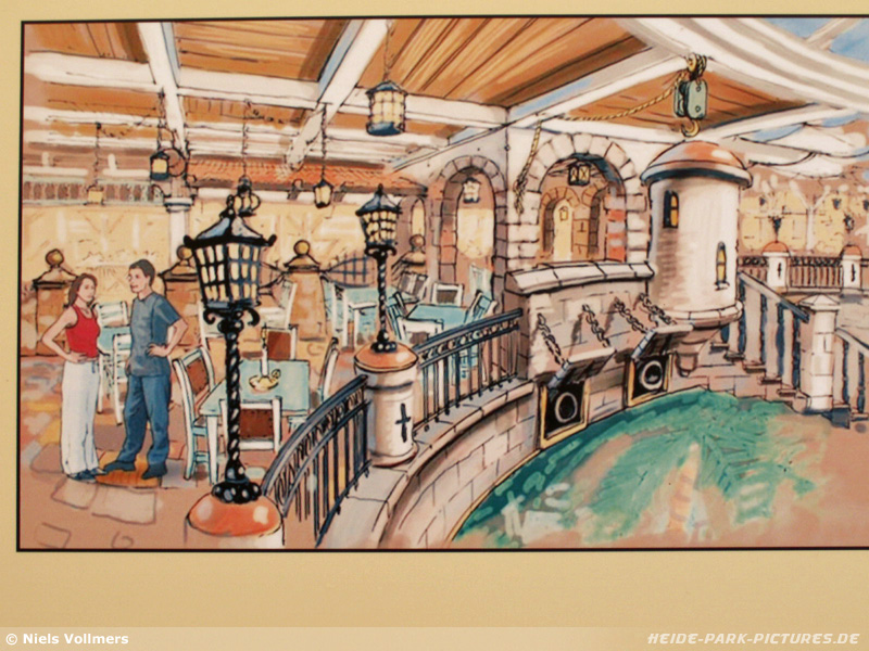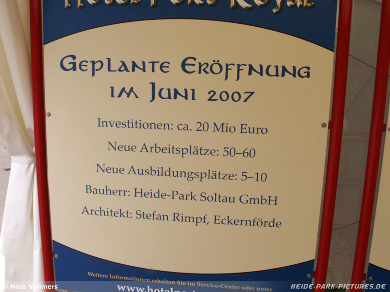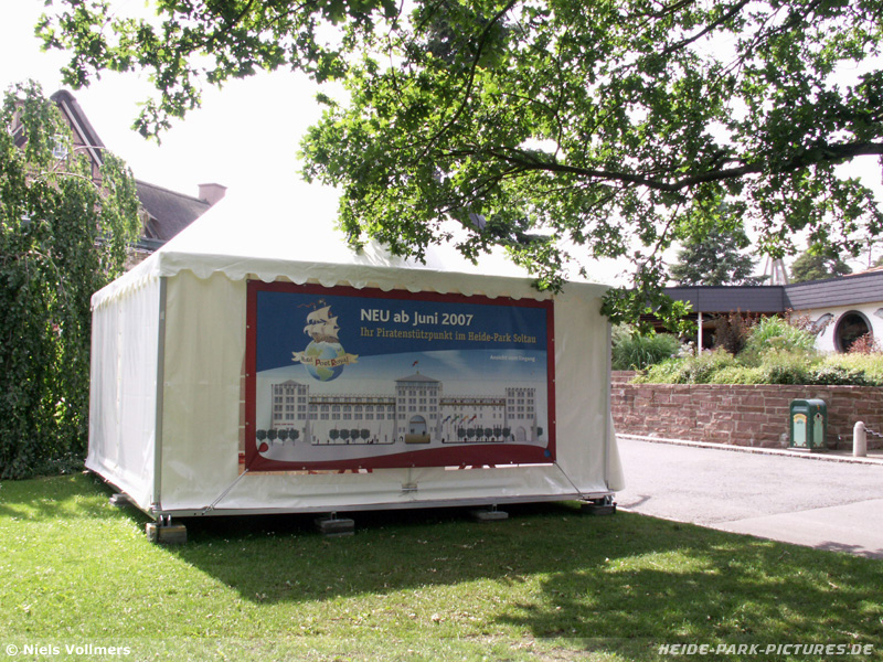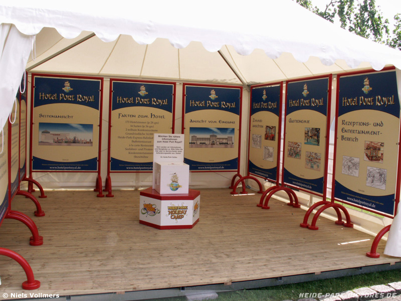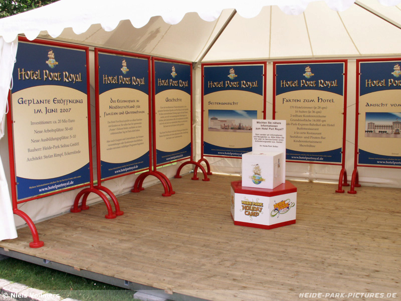 18. Juni 2006 - Nachdem sich fast zwei Monate kaum was am das Hotel getan hat, sind jetzt die ersten Artworks aufgetaucht. Für sie wurde extra ein Stand in der Nähe des Delphinariums aufgebaut.