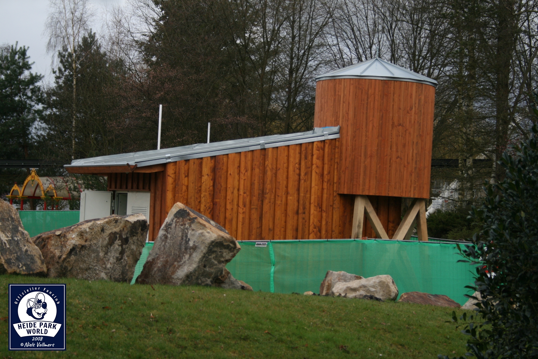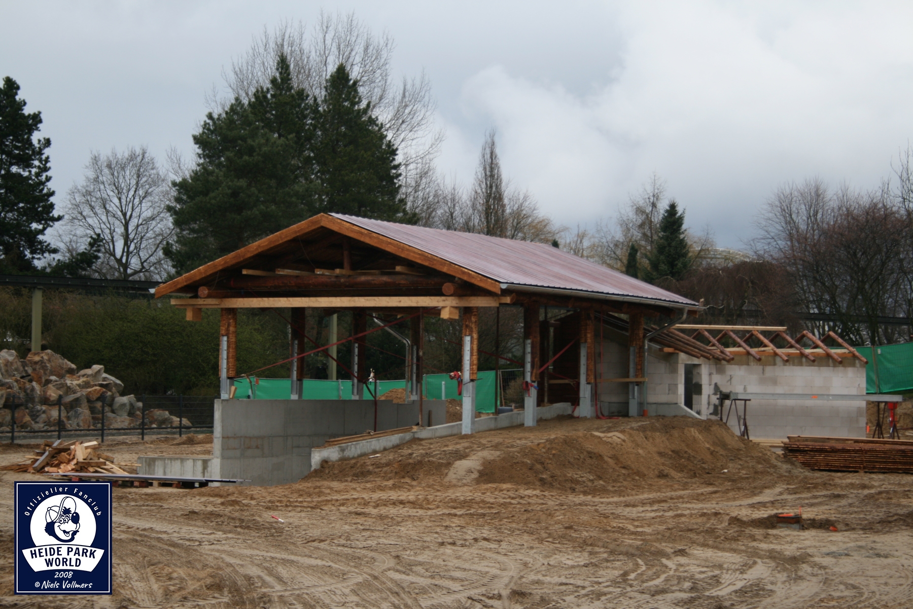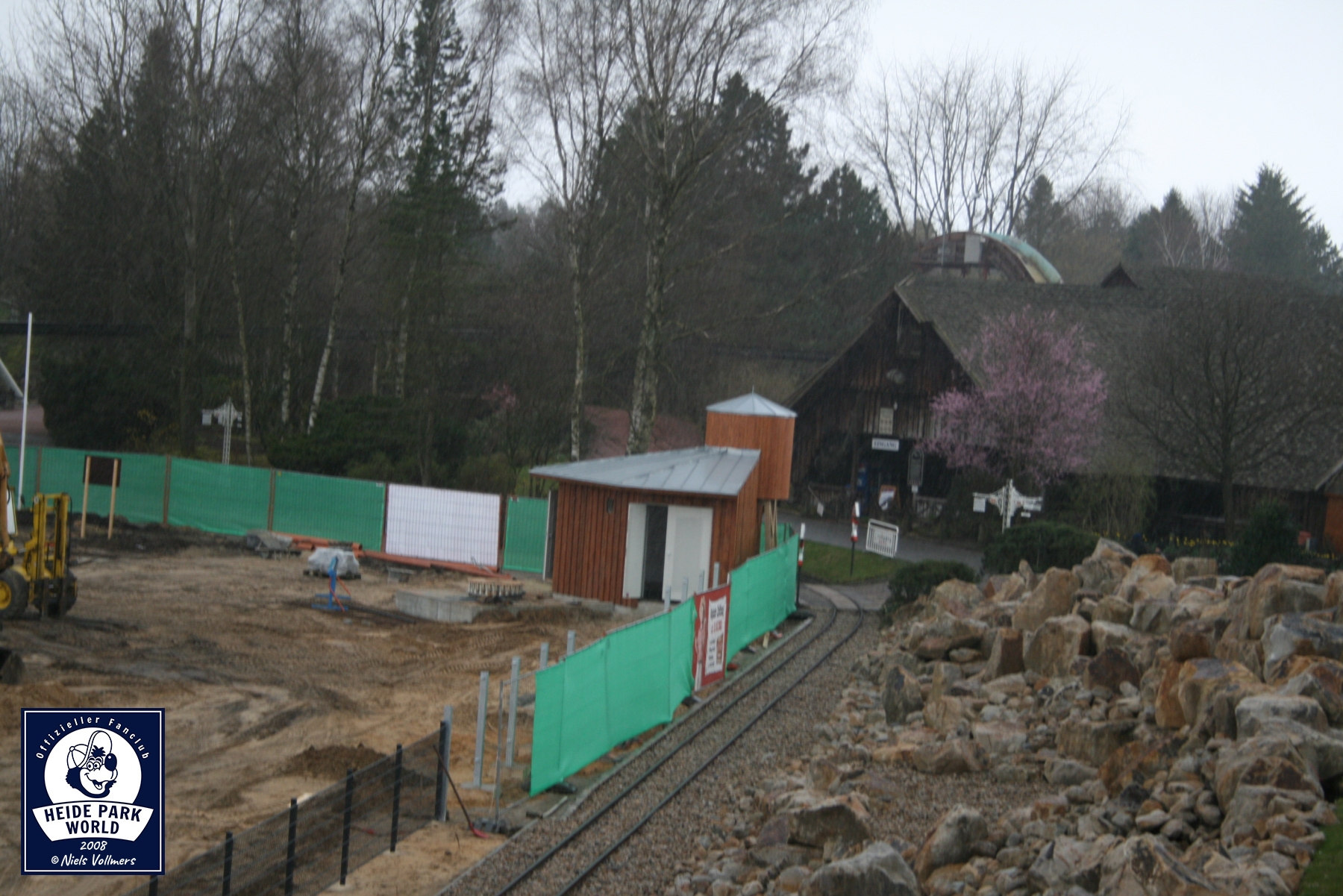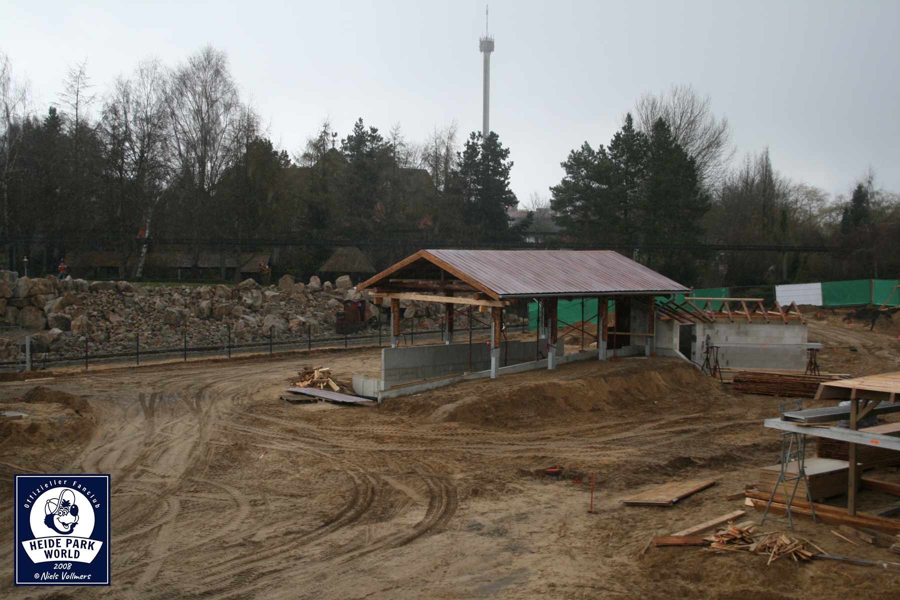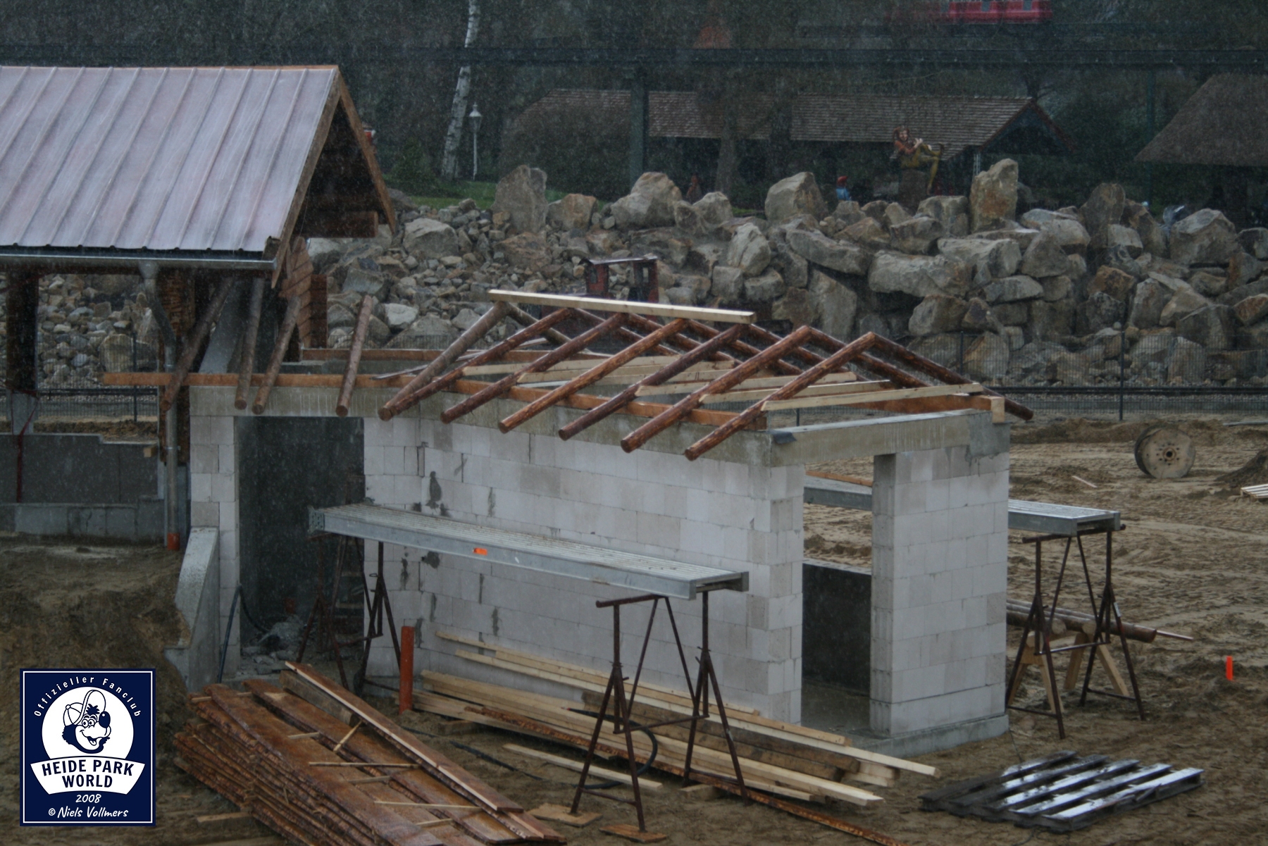 06. April 2008 - Die Gebäude im Lucky Land nehmen langsam Gestalt an. Der Western Saloon, die Shops, die Achterbahn und die Riesenrad Station sind bereits zu erkennen.
