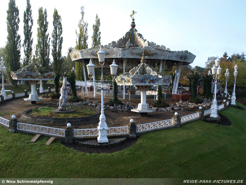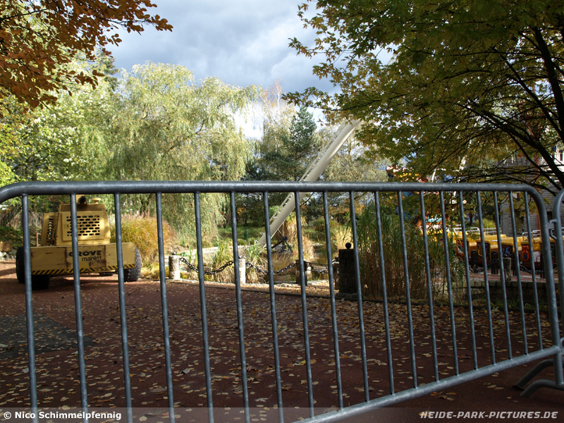 19. Oktober 2009 - Die ersten Arbeiten für die Saison 2010 haben im Park begonnen. An der Schiffschaukel Santa-Maria (Neptun) ist der Bereich nun komplett abgesperrt und am Montag wurde mit dem Abbau der Schaukel begonnen. Ob es sich um eine Renovierung handelt oder aber der Verkauf der Schaukel, dazu äußerte sich der Park auf Nachfrage noch nicht. Auf der Insel wurde nun auch begonnen die Insel zu sanieren, dazu werden gerade alle Bodenplatten entnommen. Im Bereich zwischen Floßfahrt und Holland-Dorf sind bereits die ersten Markierungen am Ufer des Sees gesetzt wurden. Dabei handelt es sich um Zugangswege zum See. Was dort entstehen soll, dazu hält sich der Park aktuell noch bedeckt.