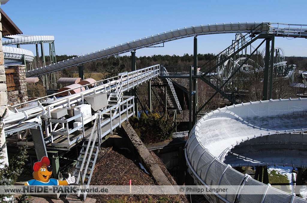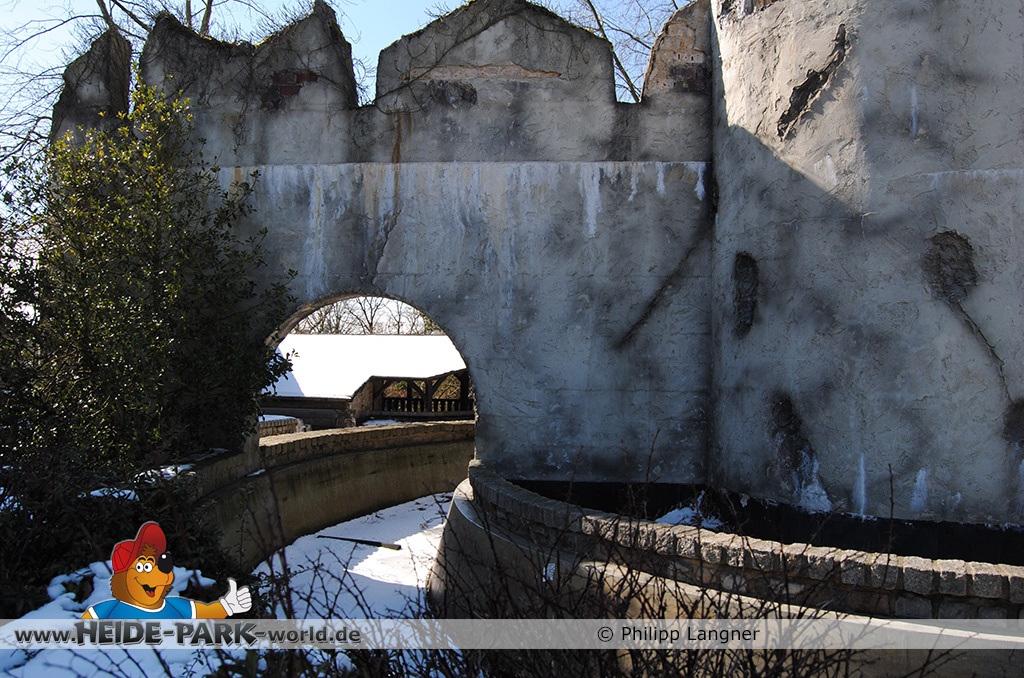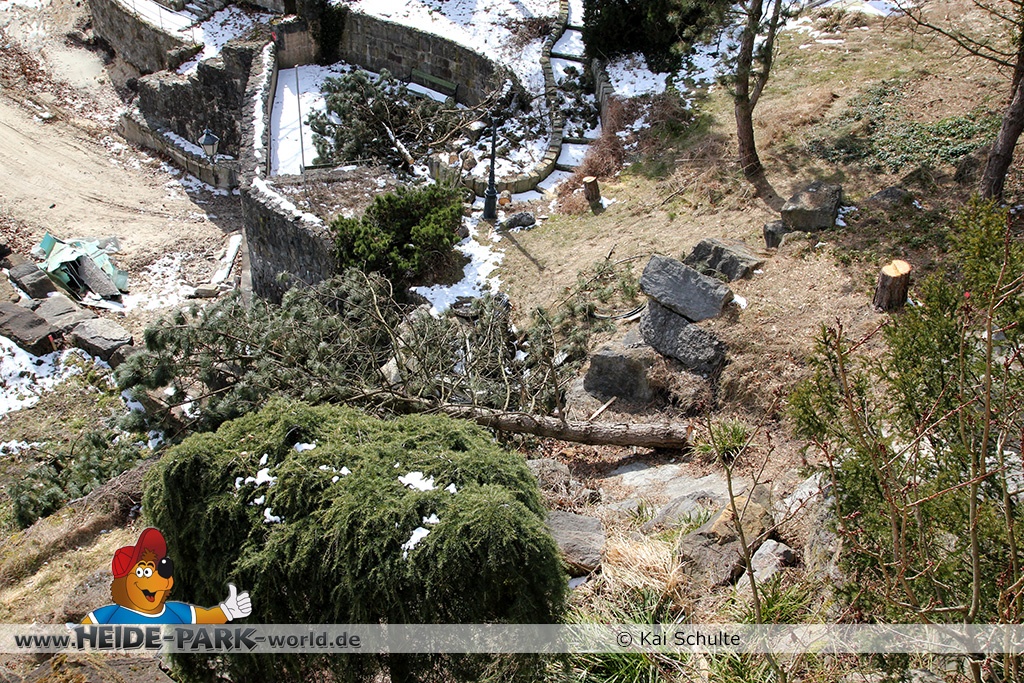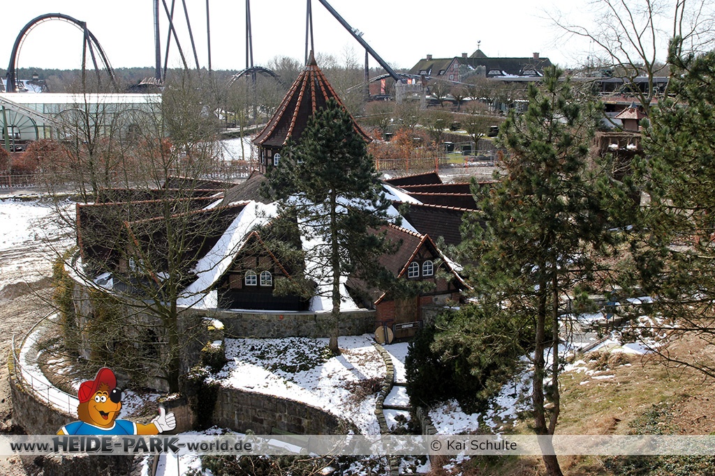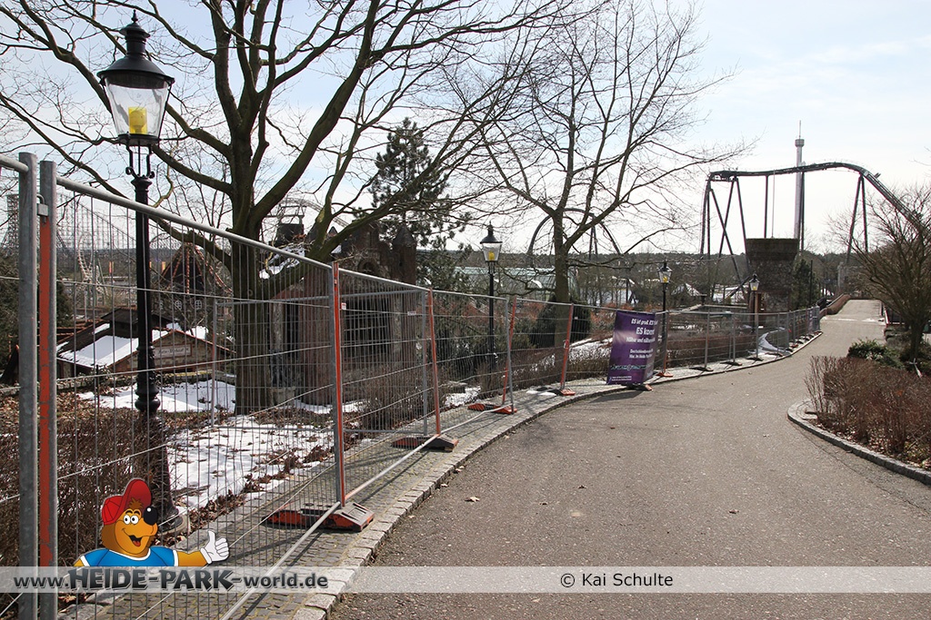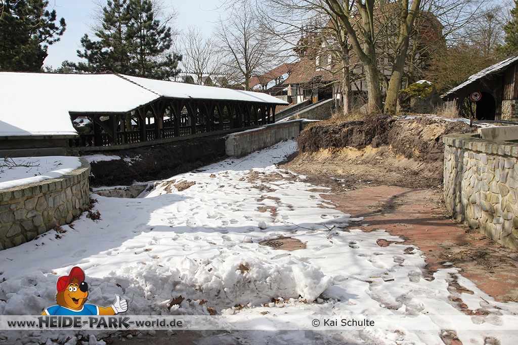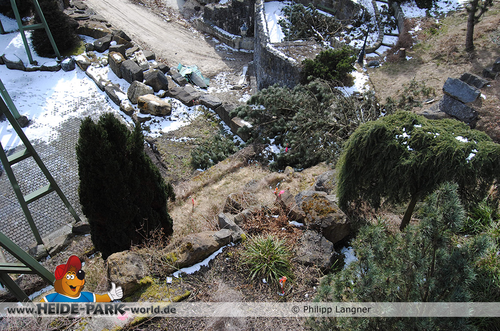 26. März 2013 - Neben den vielen Neuheiten zur Saisoneröffnung stand natürlich auch die Fläche der ehemaligen Wildwasserbahn II im Fokus der Heide Park Fans. Auch im Winter wurden Rückbauarbeiten auf der Fläche vorgenommen.