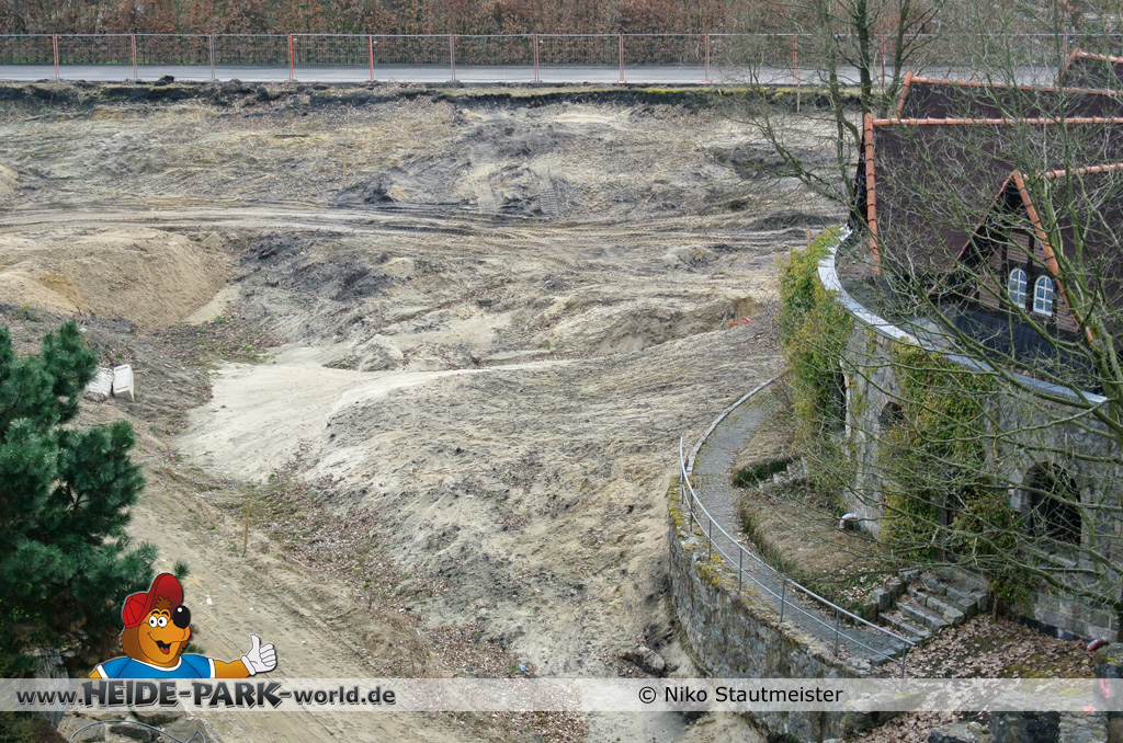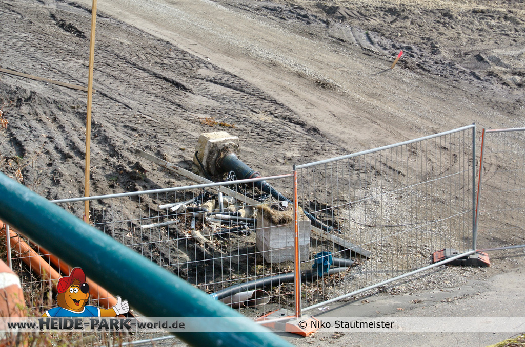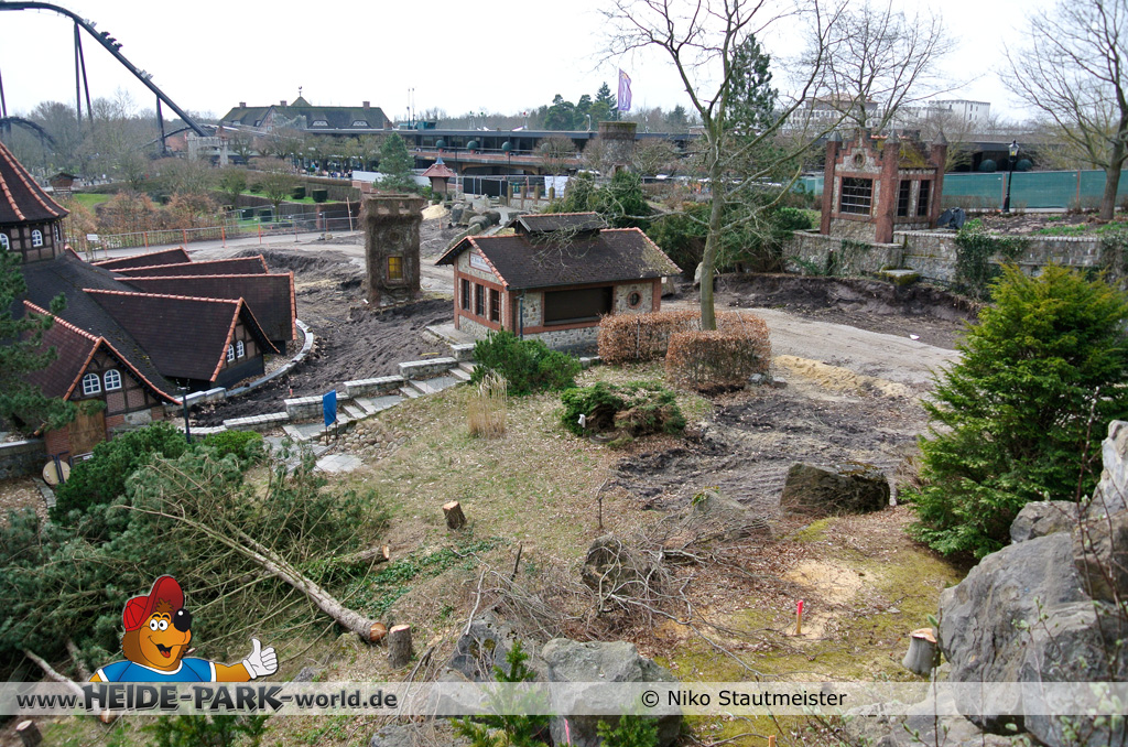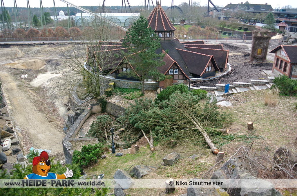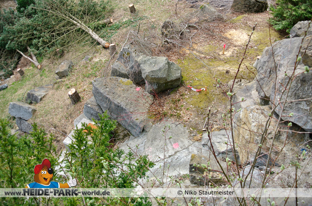 21. April 2013 - Auf der Fläche für die neue Attraktion 2014 fanden weitere Arbeiten statt. Bäume wurden wieder dafür gefällt, um für anstehende Arbeiten Platz zu schaffen.