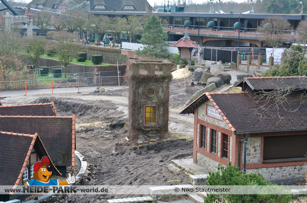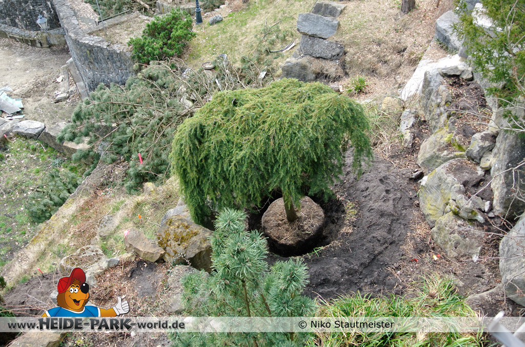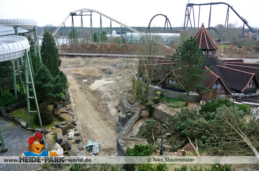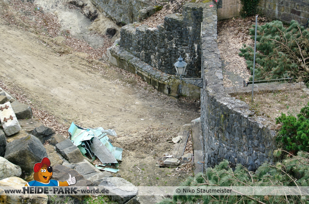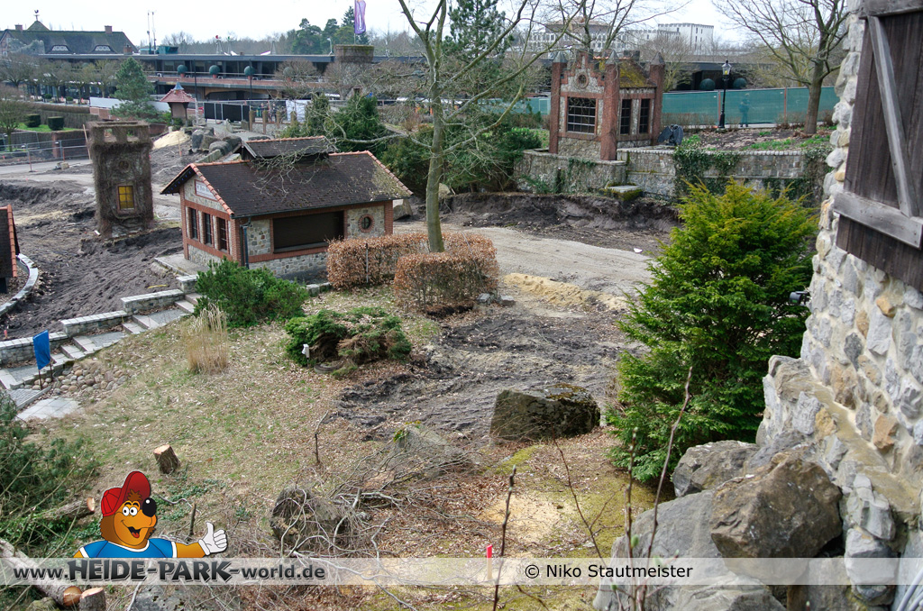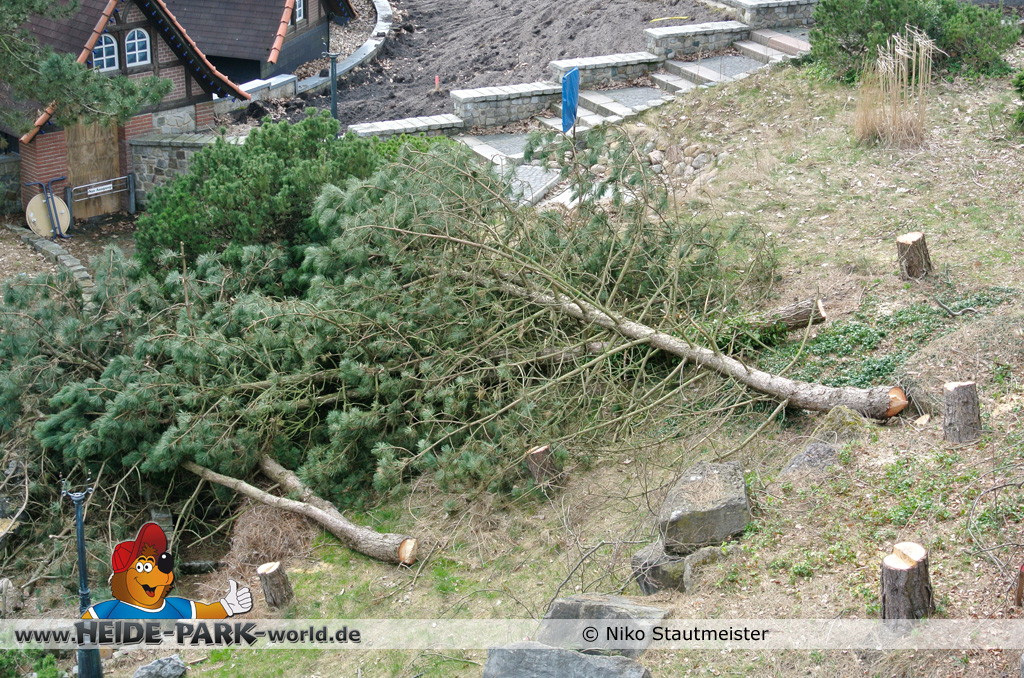 21. April 2013 - Auf der Fläche für die neue Attraktion 2014 fanden weitere Arbeiten statt. Bäume wurden wieder dafür gefällt, um für anstehende Arbeiten Platz zu schaffen.
