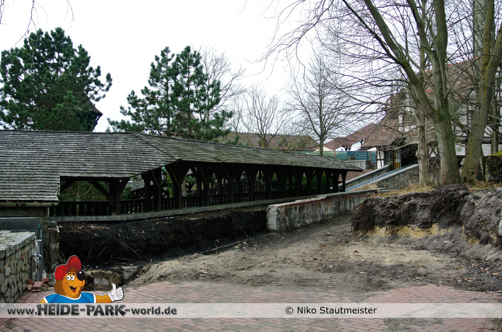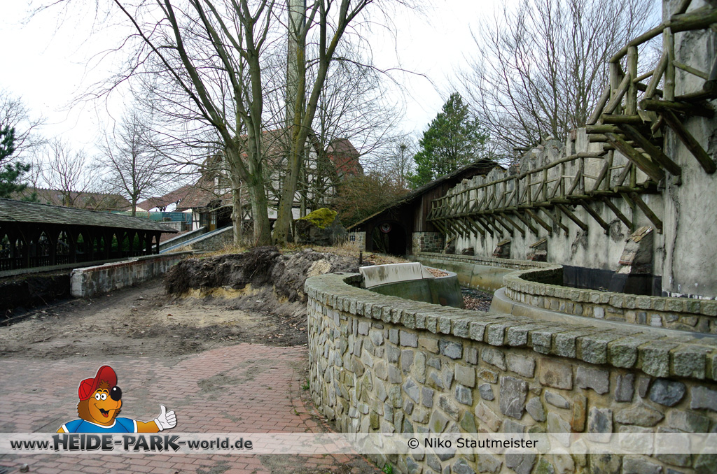 Außerdem gehen die Abrissarbeiten an der ehemaligen Wildwasserbahn weiter, der Kanal wird mehr und mehr entfernt.