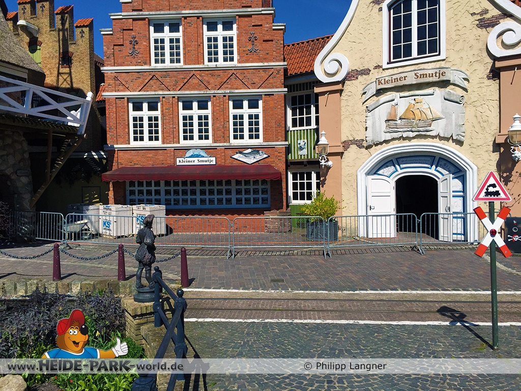 Zum Saisonstart waren wir ganz überrascht, dass die Bonbonbar im Eingangsbereich nicht mehr da war. Seit kurzem befindet sich an ihrer Stelle ein Neubau. Was dort einmal hineinkommen wird, ist noch nicht bekannt. Gebaut wird auch im Holländischen Stadtteil. Zumindest befindet sich Baumaterial vor dem ehemaligen "Kleinen Smutje". Die Toiletten in der Windmühle sind abgesperrt. Wahrscheinlich wird hier gerade renoviert!