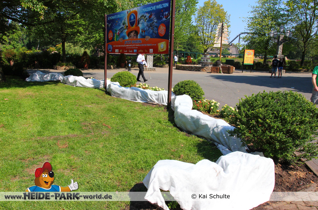 Während an der Station gearbeitet wird, haben auch die Gärtner ihre Arbeit aufgenommen zahlreiche Pflanzen aus der Attraktion haben einen neuen Standort im Park erhalten. So findet man einige Buchsbäume am Eingang und beim Flug der Dämonen. Am Ausgang der Monorail gibt es aufgrund des Bauzaunes ein leicht geänderte Wegeführung.