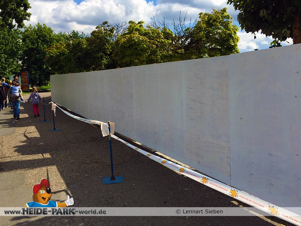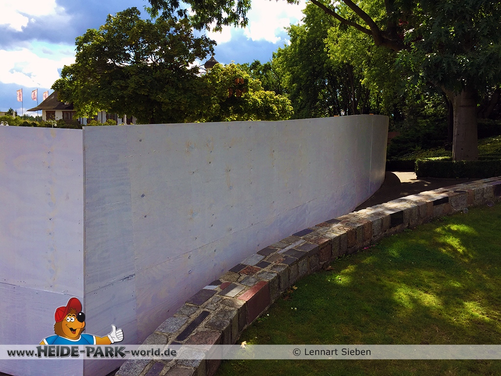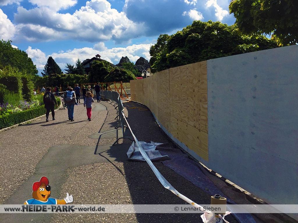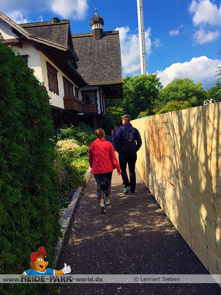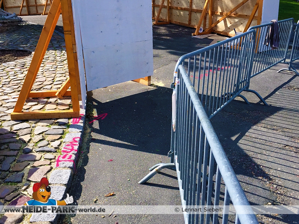 02. September 2015 - Der Rückbau der Märchenfahrt Station geht mit großen Schritten voran. Ein Kran hat heute die Dachelemente der Station entfernt. Ringsrum um den gesamten Komplex entsteht ein großer Bauzaun. Die Spannung steigt!
