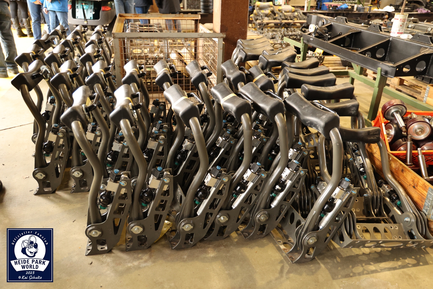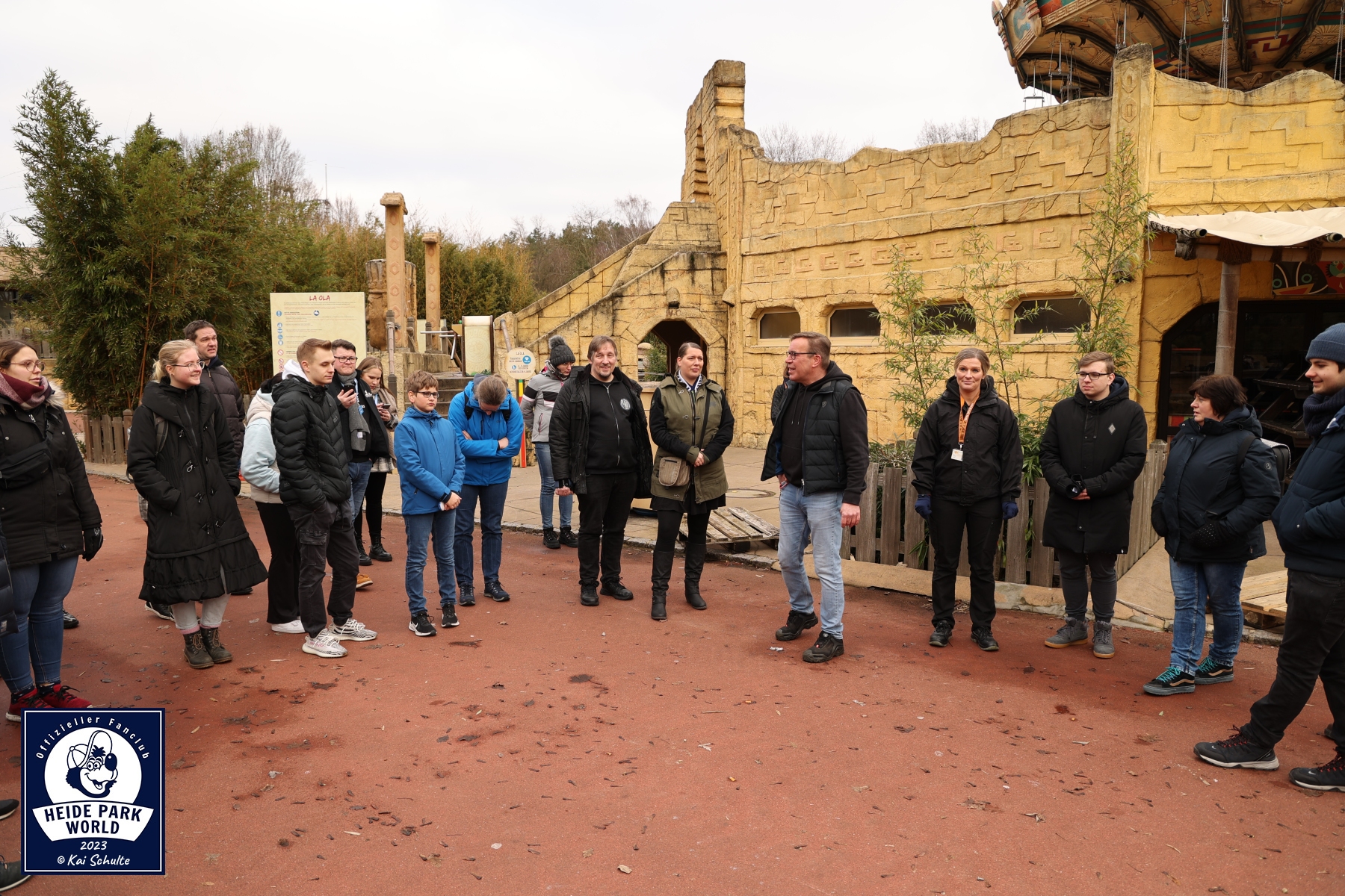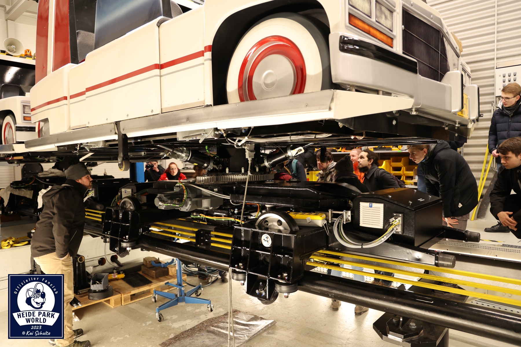 Pünktlich um 9:30 Uhr erwartete das Team von Heide Park World die Fans. Nach einem kurzen Check In und den ersten Smalltalks begrüßten Kai Schulte, Leitung von Heide Park World, und am zweiten Event Inhaber Philipp Langner, zusammen mit Pressesprecherin Svenja Heuer die Fans. In warme Kleidung eingekuschelt ging es Punkt 10:00 Uhr über den Betriebshof auf das Gelände des Parks. Erster Stop war an den parkeigenen Werkstätten. Hier begrüßte der Leiter der Mechanik, Marcel Birke, die neugierigen Teilnehmer*innen und startete die Führung im großen weitläufigen Atelier.