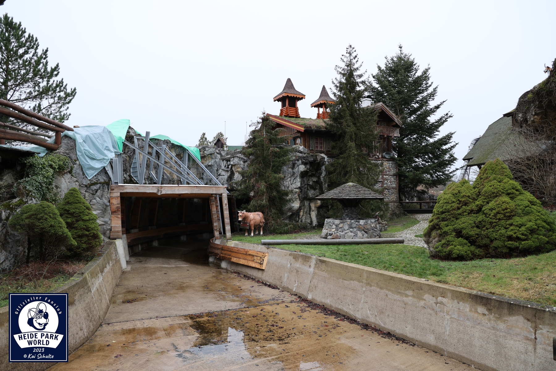 Zwischen Big Loop und Limit ging es weiter in den hinteren Heide Park Bereich. Im gefrorenen See spiegelte sich die Sonne, welche den Park in frühlingshafte Farben tauchte. Der nächste Stop war im Maya Tal. Dort konnten die Fans einen Blick auf Magic werfen, welcher aktuell noch in seine Einzelteile zerlegt ist. Bis zum Saisonstart soll dieser aber fertig und einsatzbereit sein. Marcel gab den spannenden Einblick, dass für den Zusammenbau u.a. noch ein Schwerlastkran von einer externen Firma benötigt wird. Für die komplette Sanierung von Magic wurden mehrere Tausend Euro investiert.