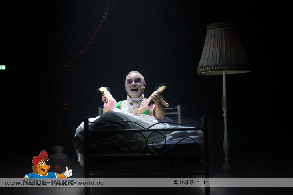 Die gruseligen Charaktere erwarten das Publikum im beliebten, überdachten Zelt direkt neben dem Maya Tal. Begleitet sie durch die Welt der tiefsten inneren Ängste, untermalt mit atemberaubender Akrobatikeinlagen und faszinierender Illussionen.