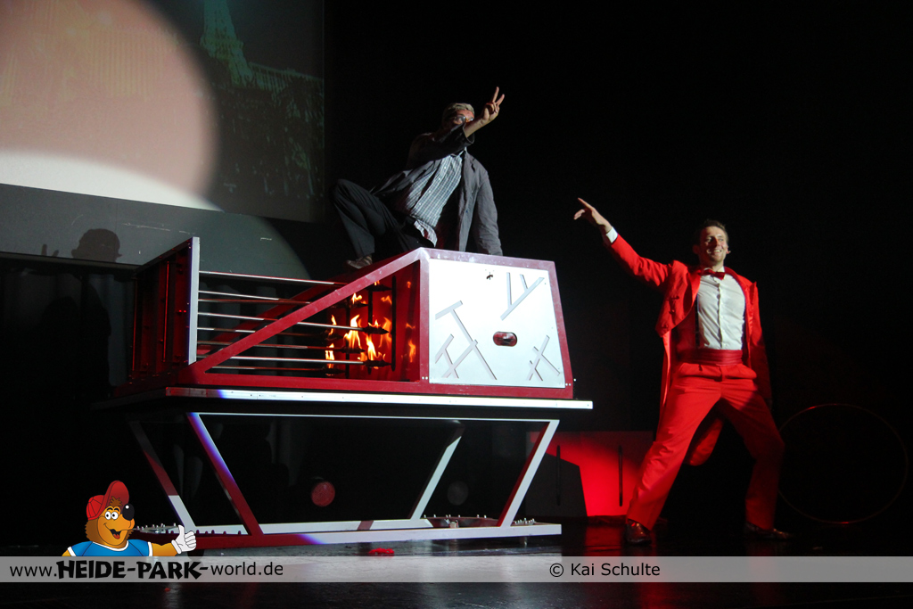 Unterstützt wurden die beiden, neben zahlreicher Bewunderung aus dem Publikum, von der liebreizenden Assistentin Gwendolin Glitter, die mit ihren Gesangseinlagen nicht nur Lars und Kalle verzauberte.