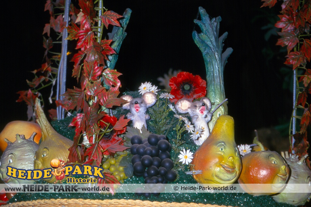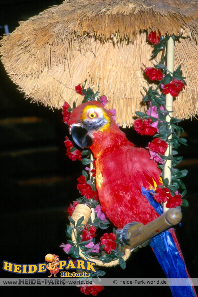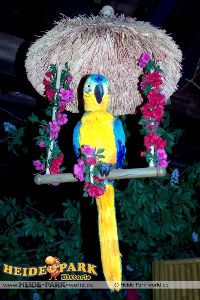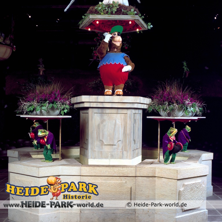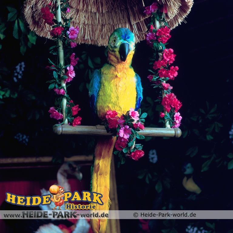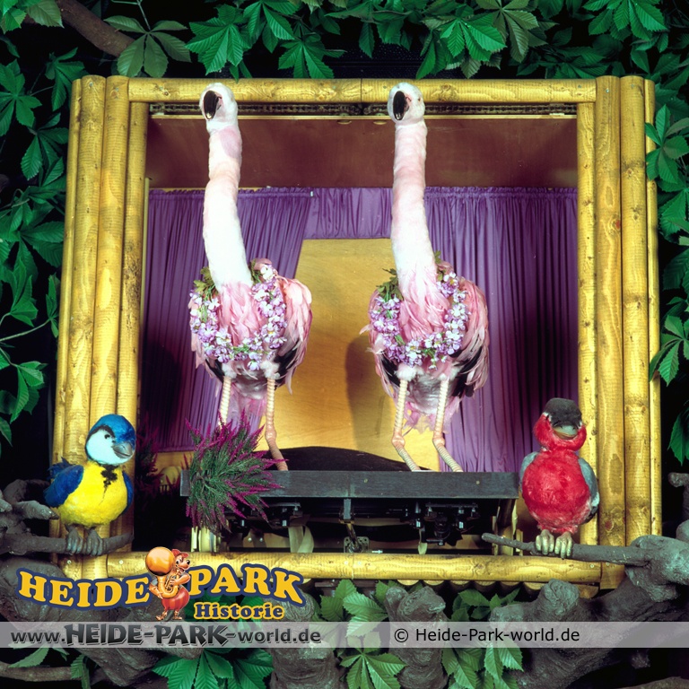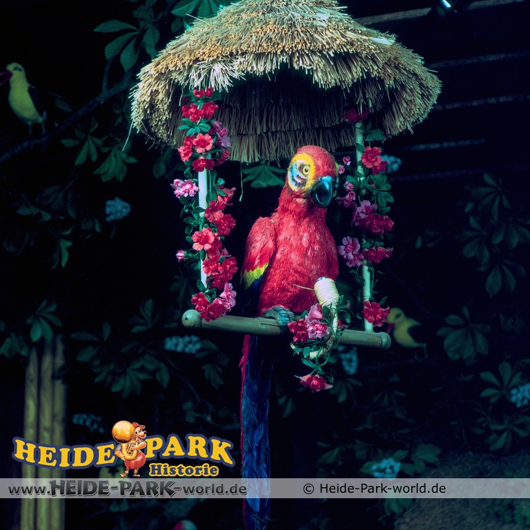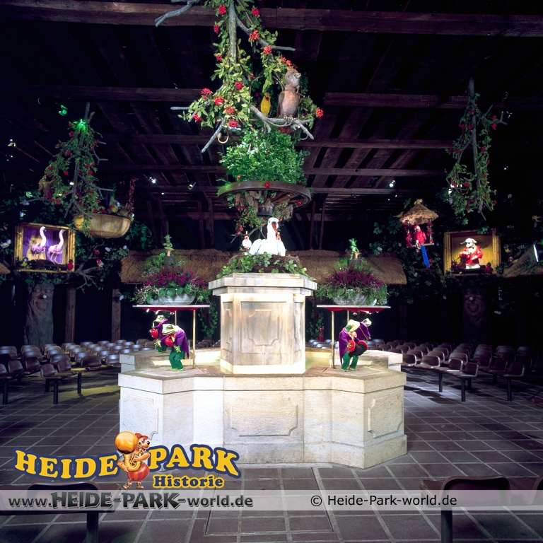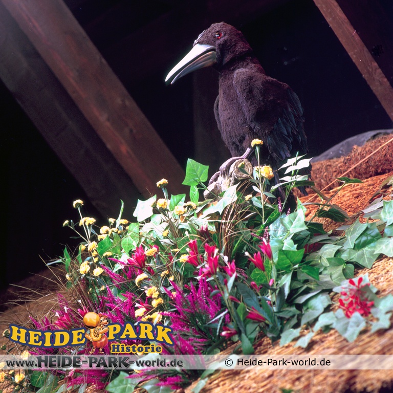 Wumbo, das lebenslustige Wappentier des Heide-Parks, war der Showmaster, seine Stars waren die Vögel. Galius-Gänsegeier zum Beispiel, ein berühmt-berüchtigter Westernheld. Rabe, Storch und Papagei konnten den Schnabel nicht halten und klopfen freche Sprüche. Hein-Schnucke schmetterte bekannte Volkslieder, Frösche spielten Instrumente und Bäume sangen. Am Ende der Saison 2009 wurde die Show im Elektronischen Vogeltheater nach über 20 Jahren Spielzeit eingestellt. Hier findet ihr einige Bilder aus dem Inneren des Vogeltheaters, welche sicherlich viele Kindheitserinnerungen wecken werden
