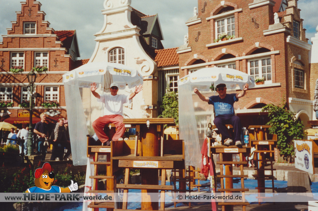 Zur Einweihung des neuen Themenbereiches veranstaltete der Heide Park 1997 erstmals das sogenannte "Pfahlhocken". Ursprünglich sollte dies nur als PR-Aktion genutzt werden. Schlussendlich entwickelte sich eine Weltmeisterschaft daraus. Jedes Jahr saßen zehn Anwärter mit einer gehörigen Portion Sitzfleisch auf einer 60 mal 50 Zentimeter breiten Plattform und kämpften um den Titel. Dabei waren sie Sonne, Wind, Regen und natürlich auch Schnee ausgesetzt. Wenn die Heide Park Saison beendet war, ging der Wettbewerb so lange weiter, bis der letzte Teilnehmer seine Plattform verließ. Der Ostfriese Hermann Kümmerlehn ist der bekannteste Teilnehmer. Insgesamt verbrachte er in sechs Jahren 580 Stunden auf dem Pfahl. Titelverteidiger ist bis heute der aus Polen stammende Daniel Baranjuk, der es auf stolze 196 Tage auf dem Pfahl brachte. Mit Ende der Saison 2004 endete auch diese Tradition im Heide Park.
