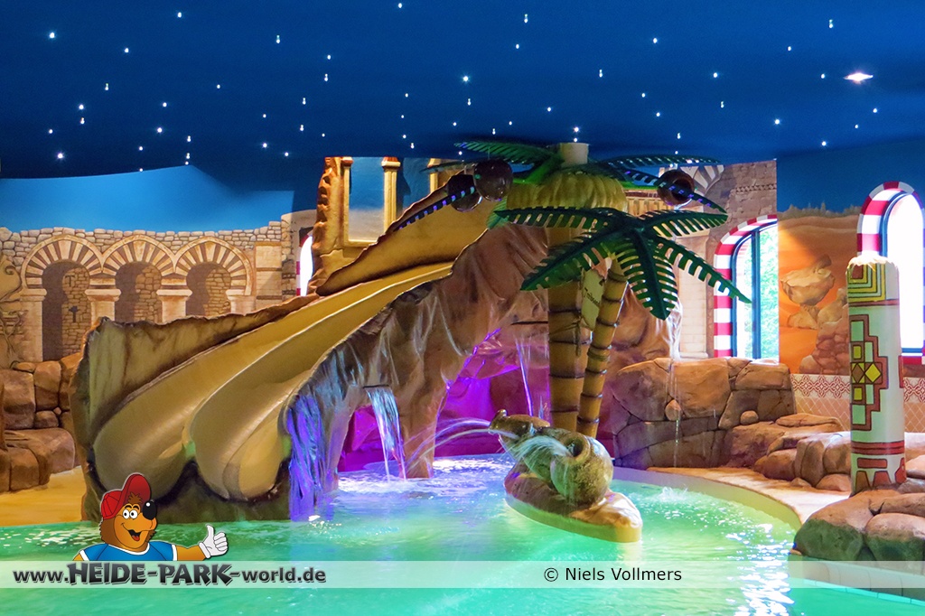 Mit Start in die Saison 2015 wehte ein frischer Wind im Resort des Heide Parks. Das altbekannte Piratenhotel "Port Royal" wurde umgestaltet. Bereits von außen ist zu erkennen, dass aus dem Hotel mit Piratenthema die Villa des Abenteurers Lord Alexander Explorus wurde. Unter dem Namen "Heide Park Abenteuerhotel" begrüßt es nun die Besucher des Parks. Doch nicht nur von außen hat es sich verändert. Im Inneren erwartet die Besucher eine komplett neue Darbietung. Beginnend bei den interaktiven Bildern in der Vorhalle, über das Spielgerät in der Lobby bis hin zur Umgestaltung der Flure und Themenzimmer. Die Besucher können nun wählen ob sie wie Cowboys, Piraten oder Dämonenbändiger nächtigen wollen. Als Ergänzung des Resort-Angebots eröffnete im Mai 2015 "Sultans Spaßbad" - ein Schwimmbad direkt im Hotel. Hier erwarten die Besucher neben Sauna und Wasserrutschen auch Schwimmbecken, Strömungskanal und eine Grotte. Für den Bau des Bad mussten einige Holland-Häuser weichen. Von außen erhielt das Bad einen oritalischen Stil.