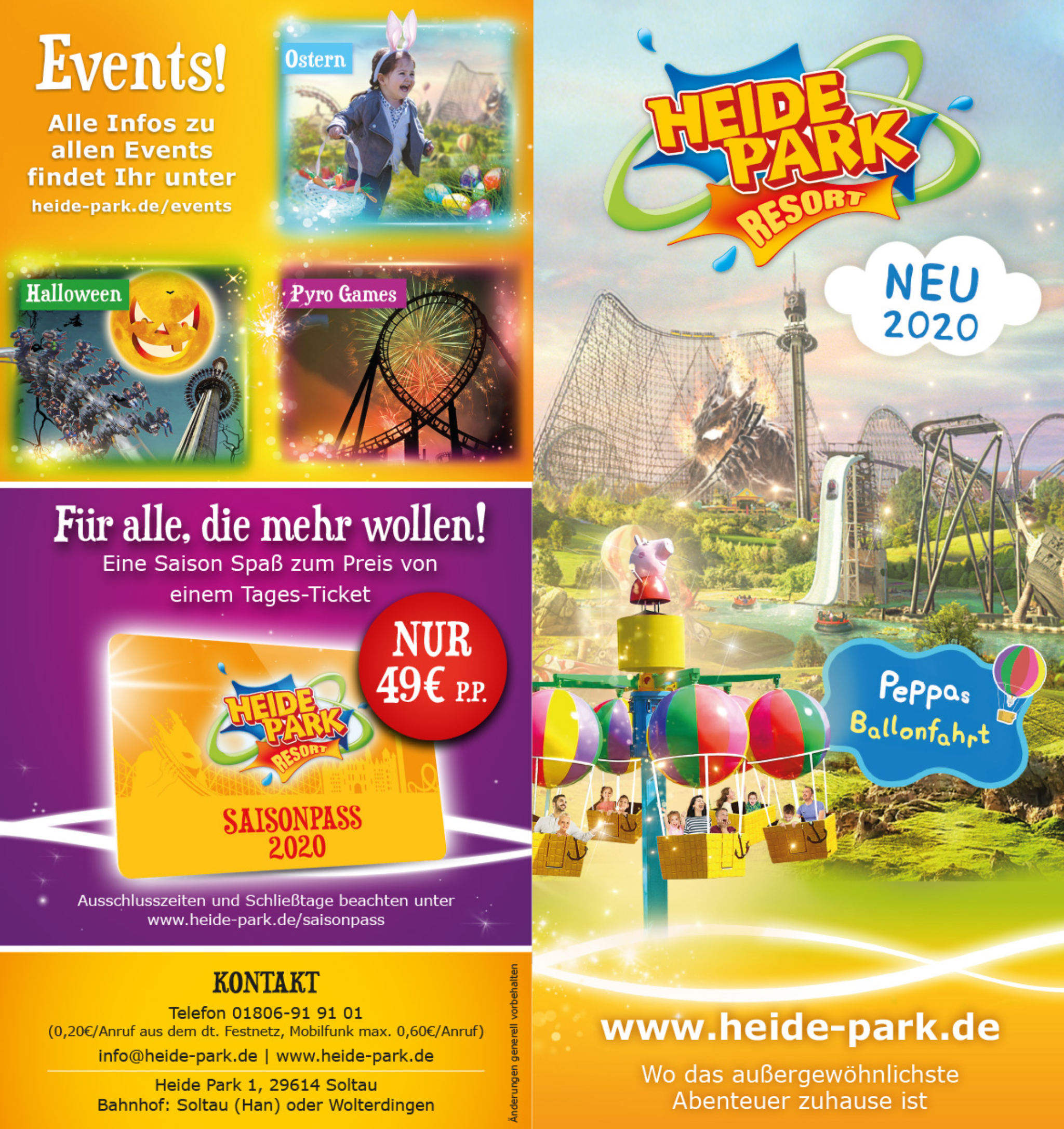 Neu in diesem Jahr ist ein Event zu Ostern, auf das sich kleine und große Heide Park Fans freuen dürfen. Der Saisonpass für die Saison 2020* wird auch in diesem Jahr wieder für 49,- Euro erhältlich sein.